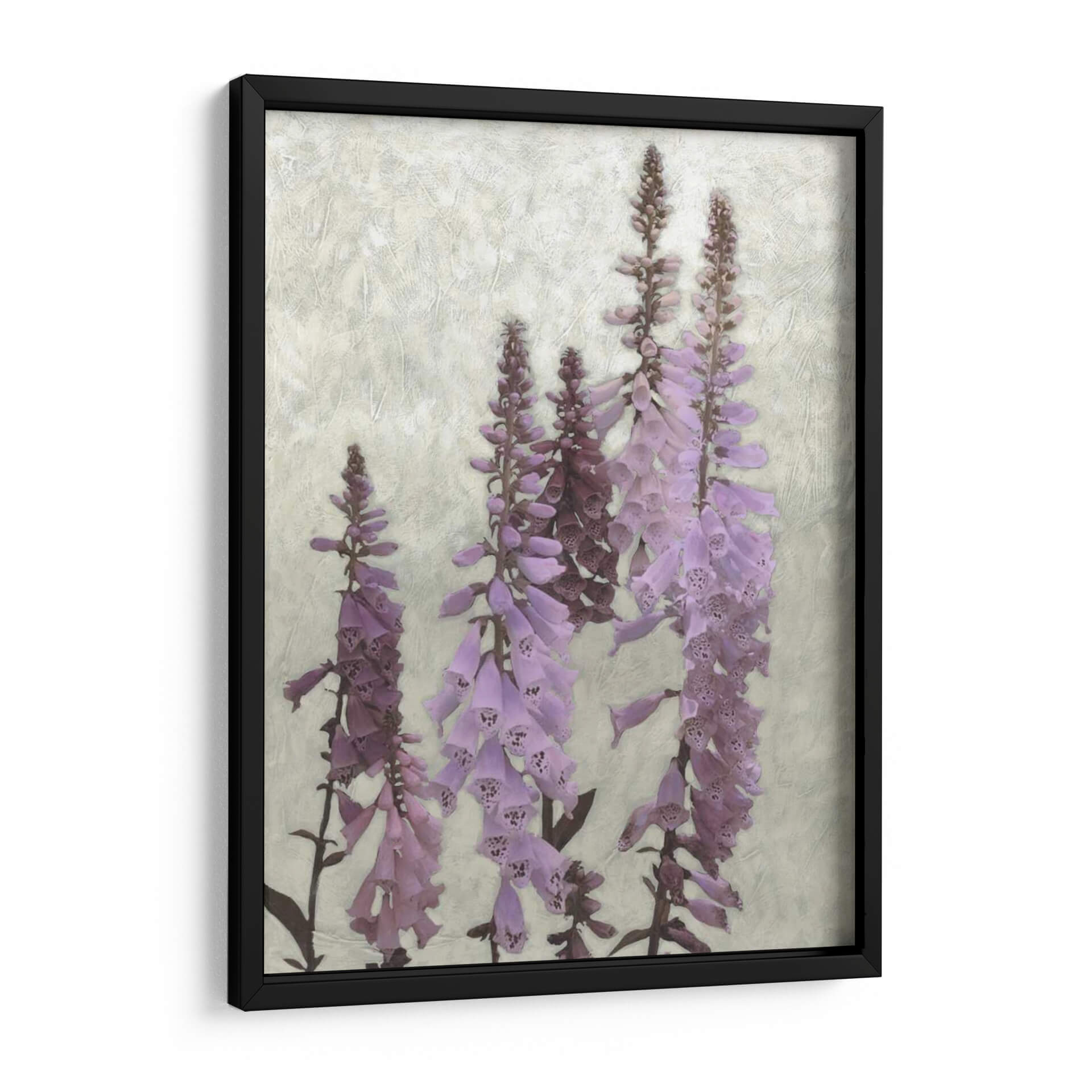 Embellezca su espacio con el encantador cuadro decorativo 'Foxgloves No Adornados I' de Chariklia Zarris. Esta obra captura la delicada belleza de las digitales en flor, presentando sus icónicas espigas de campanas en tonos lavanda y púrpura suave, contrastando elegantemente con un fondo texturizado en tonos neutros y apagados. La composición vertical resalta la gracia natural de las flores, invitando a la contemplación y a una sensación de calma serena. El estilo detallado pero sutil, con una ejecución que recuerda a técnicas botánicas clásicas pero con un toque contemporáneo, convierte a esta pieza en un acento visual sofisticado. Es ideal para añadir un toque de naturaleza y elegancia a cualquier habitación, desde un sereno dormitorio hasta una sala de estar o un estudio que busque una atmósfera de tranquilidad y refinamiento. La paleta de colores suaves y terrosos permite que este cuadro decorativo se integre armoniosamente en diversas paletas de decoración, aportando un aire de frescura y sofisticación orgánica. Un toque de naturaleza atemporal para su hogar u oficina.