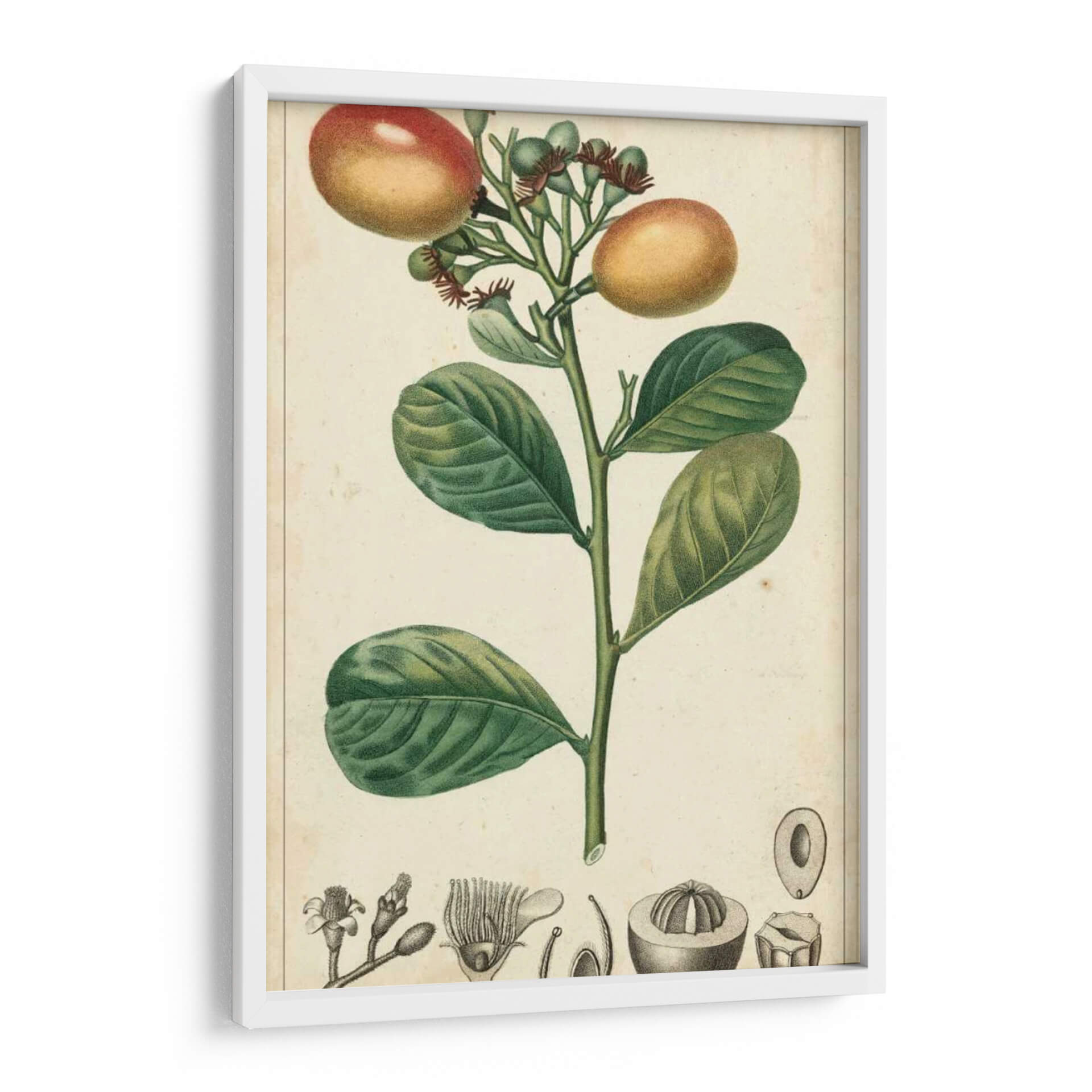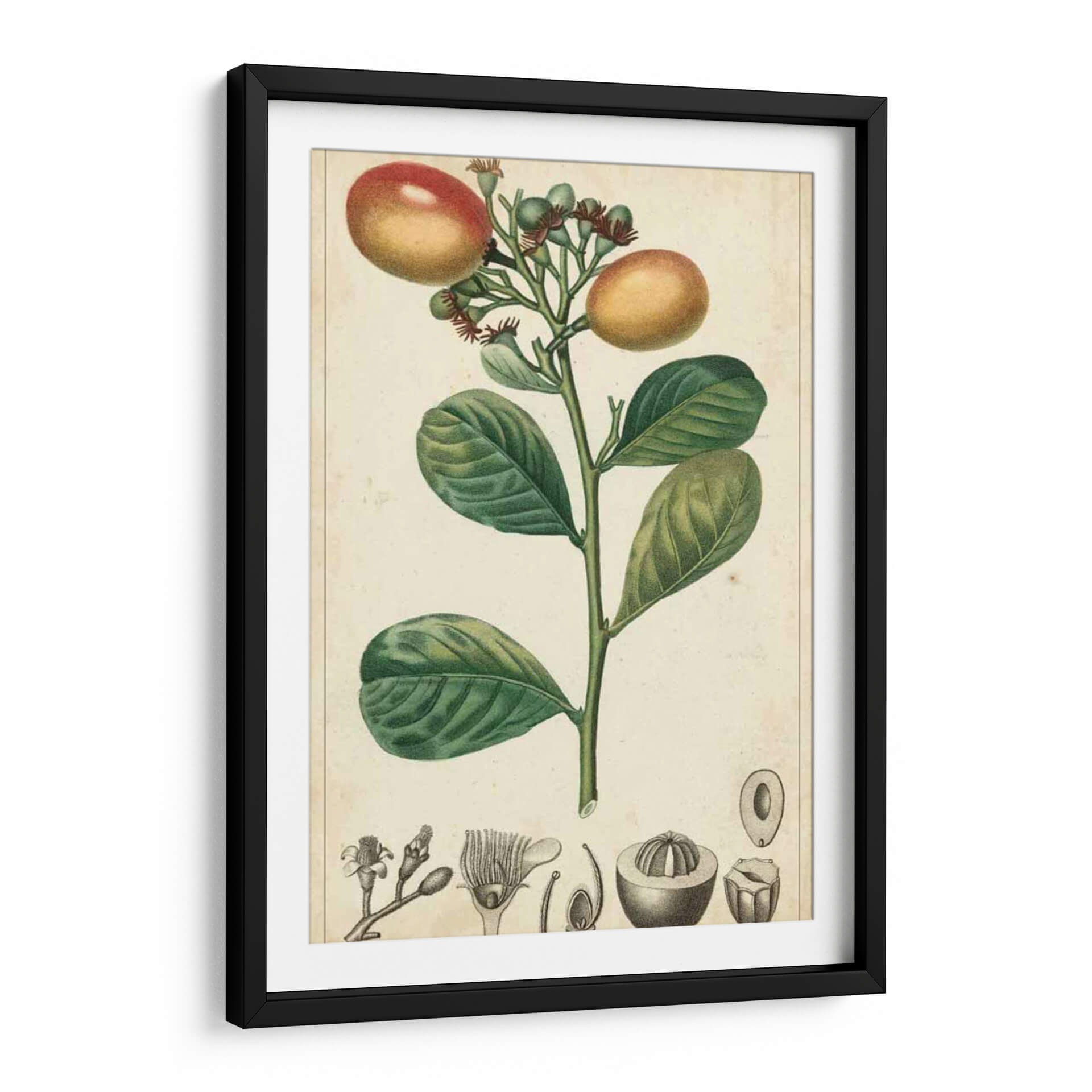 Embellezca su hogar con el cautivador cuadro decorativo 'Frutas Exóticas II' del artista Turpin. Esta obra maestra botánica presenta una detallada ilustración de una rama frutal, con sus hojas verdes vibrantes y exóticas frutas en tonos cálidos de naranja y rojo, junto a brotes delicados. El estilo, que evoca grabados botánicos clásicos, aporta un aire de elegancia atemporal y un toque de naturaleza a cualquier espacio. La paleta de colores, dominada por verdes profundos y toques de ocre y carmesí, crea una atmósfera serena y a la vez rica en detalles. La composición se centra en el tallo principal, rodeado de elementos anatómicos de la planta, lo que sugiere un estudio científico y artístico. Ideal para añadir un punto de interés naturalista a su sala de estar, comedor o estudio, este cuadro decorativo es perfecto para quienes aprecian la belleza de la flora y buscan una pieza que combine sofisticación y conexión con la naturaleza. Su diseño detallado y sus colores armónicos lo convierten en una adición versátil a decoraciones clásicas, modernas o eclécticas, aportando un toque de frescura y refinamiento.
