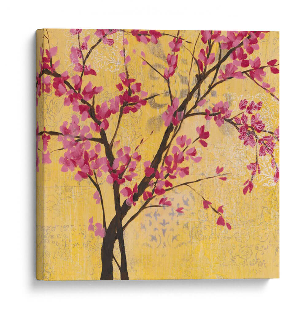 Añada un toque de vibrante elegancia a su hogar con el cuadro decorativo "Fucsia Flores II" de Jennifer Goldberger. Esta cautivadora obra de arte presenta un árbol floreciente en pleno esplendor, con delicadas flores fucsias que contrastan maravillosamente sobre un fondo texturizado en tonos dorados y amarillos. La composición se centra en la belleza efímera de la naturaleza, capturando la esencia de la primavera con pinceladas expresivas que sugieren movimiento y vida. El estilo artístico combina elementos de pintura impresionista y arte contemporáneo, creando una pieza que es a la vez familiar y sorprendentemente moderna. Los intrincados patrones de damasco en el fondo añaden una capa de sofisticación y profundidad, haciendo de este cuadro una adición lujosa a cualquier espacio. Ideal para salones, dormitorios o entradas, "Fucsia Flores II" infunde una sensación de alegría y optimismo, transformando cualquier pared en un punto focal de belleza natural y estilo refinado. Descubra la sinergia perfecta entre el arte floral y la decoración contemporánea, y deje que esta pieza inspire serenidad y vitalidad en su entorno.