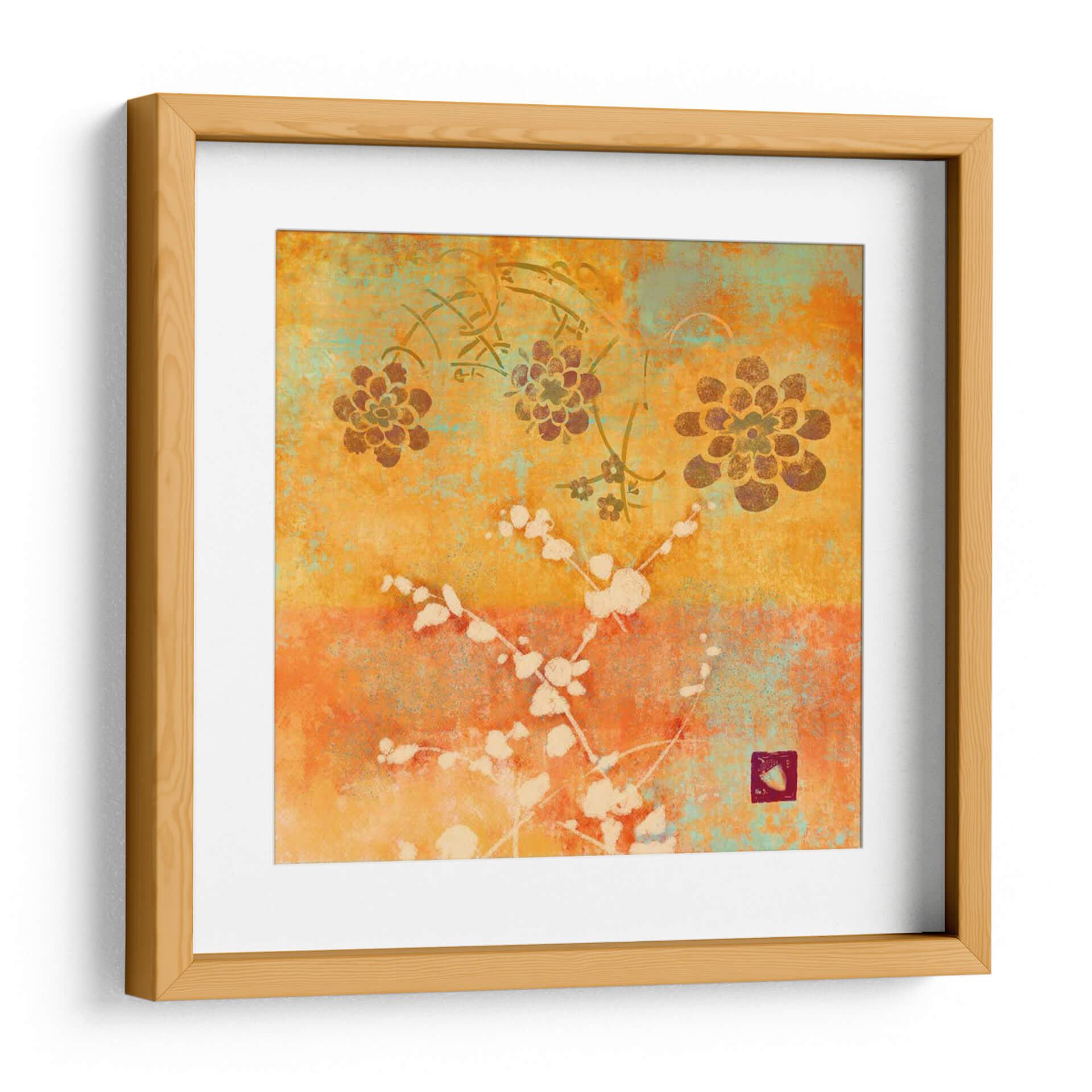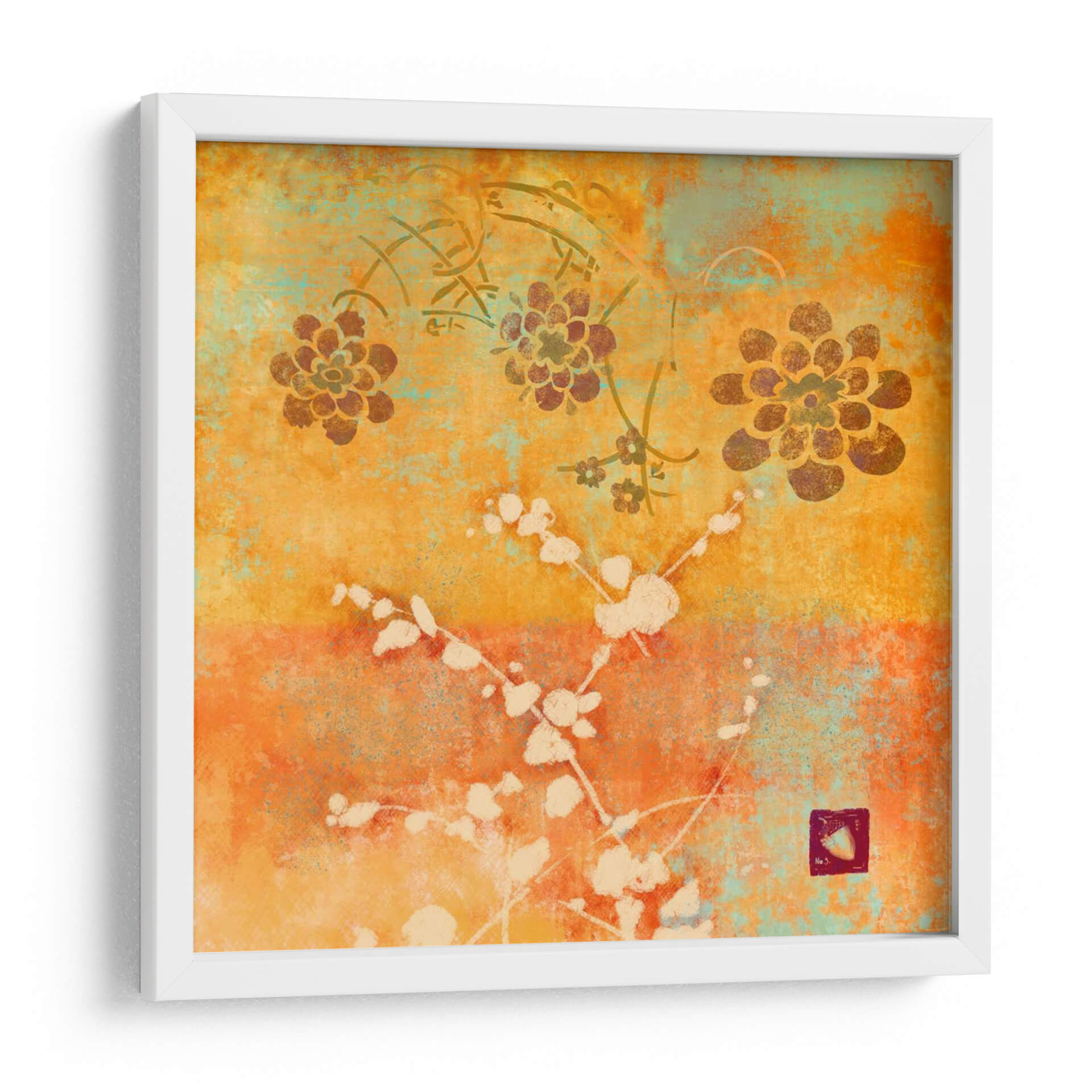 Sumérgete en la serenidad y la vibrante energía de "Ginger Cae I", una obra de arte contemporáneo que captura la belleza efímera de la naturaleza con un toque moderno y evocador. Este cuadro decorativo presenta una composición cautivadora donde delicadas ramas con flores blancas en flor se entrelazan sobre un fondo texturizado en tonos cálidos de naranja y amarillo, salpicado con sutiles toques de verde azulado. El estilo, que fusiona elementos orgánicos con una abstracción sutil, evoca una sensación de calma y renovación, ideal para infundir paz en cualquier espacio. Las flores estilizadas, con sus pétalos detallados en tonos terrosos, contrastan maravillosamente con el vibrante telón de fondo, creando una profundidad visual fascinante. El uso de texturas y capas sugiere una técnica cuidada, aportando una riqueza táctil a la pieza. "Ginger Cae I" es perfecta para añadir un punto de interés sofisticado a tu sala de estar, un toque de serenidad a tu dormitorio, o una inspiración artística a tu espacio de oficina. Transforma tu hogar con este hermoso cuadro decorativo que celebra la delicadeza de la flora y la calidez de los colores de la tierra, invitando a la contemplación y al disfrute estético.