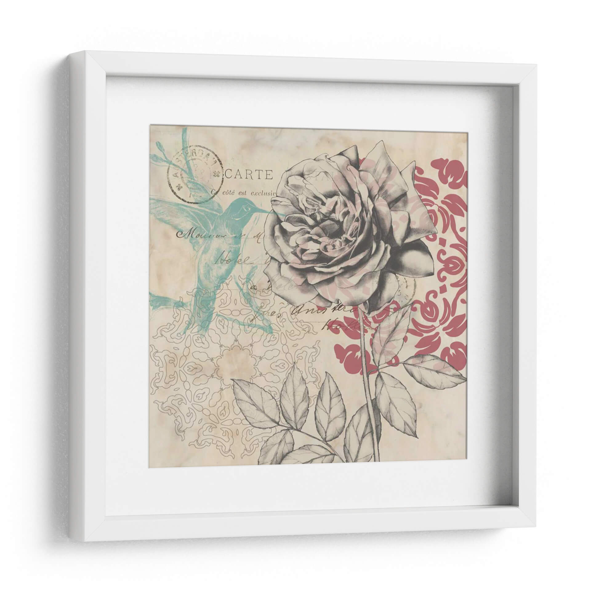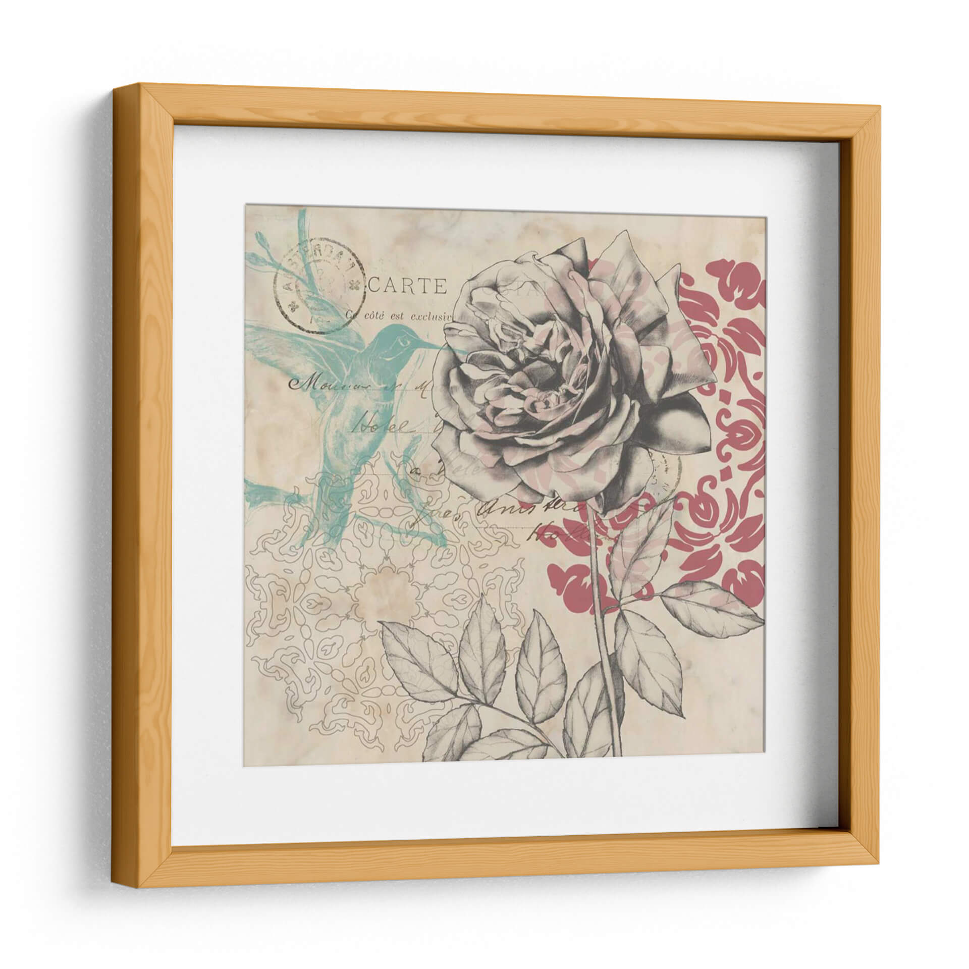 Embellece tu hogar con "Hermosa Bounty II", una obra de arte cautivadora de Jennifer Goldberger. Este cuadro decorativo captura la delicadeza de una rosa en plena floración, representada con trazos detallados en blanco y negro, que contrastan elegantemente con un colibrí etéreo en tonos turquesa y patrones ornamentales en rosa fucsia. La composición se enriquece con elementos de diseño vintage, como sellos postales y caligrafía desvanecida, evocando una atmósfera nostálgica y romántica. La paleta de colores, centrada en tonos tierra suaves y acentos vibrantes, aporta calidez y un toque de sofisticación a cualquier espacio. "Hermosa Bounty II" es perfecta para quienes buscan añadir un toque de naturaleza y elegancia atemporal a su decoración. Imagina este cuadro en tu sala de estar, dormitorio o estudio, creando un punto focal que inspire tranquilidad y admiración. Su estilo ecléctico lo hace ideal para interiores clásicos, vintage o incluso modernos que buscan un contraste único. Deja que esta pieza llene tu vida de belleza y encanto.