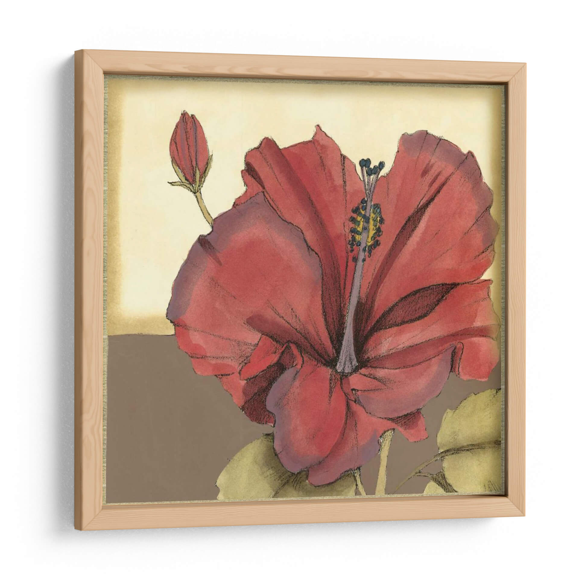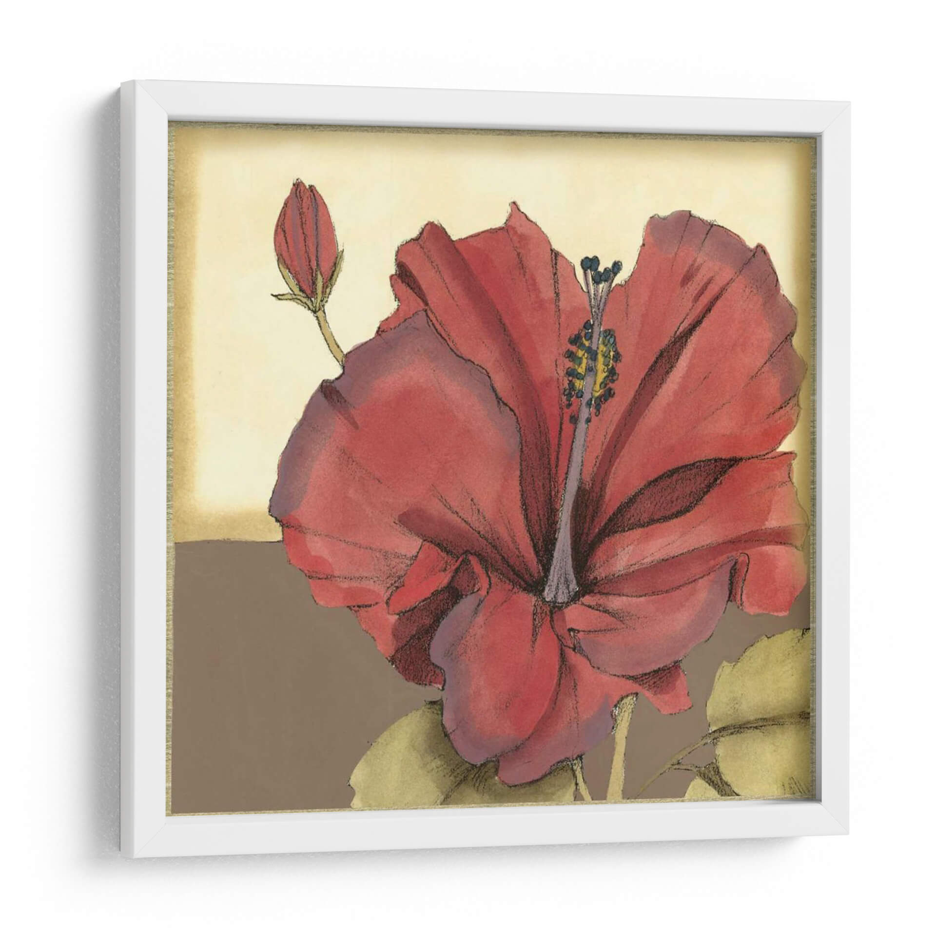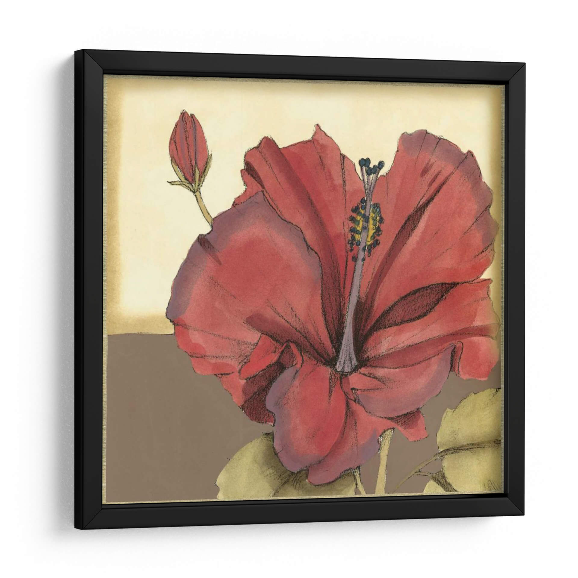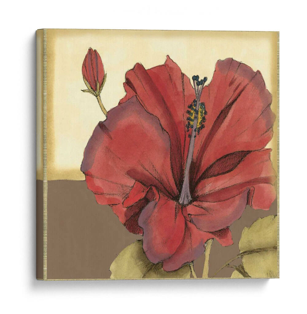 Embellece tu hogar con el cautivador cuadro decorativo 'Hibisco Sofisticado Recortado IV'. Esta obra de arte captura la exuberante belleza de una flor de hibisco en plena floración, con pétalos rojos vibrantes que contrastan elegantemente con el suave fondo beige y marrón. La delicada técnica de acuarela y los trazos de lápiz evocan una sensación de sofisticación natural y tranquilidad. Un capullo emergente en la esquina superior izquierda sugiere crecimiento y potencial, añadiendo una capa de significado simbólico a la pieza. Ideal para aquellos que buscan infundir sus espacios con un toque de color tropical y elegancia botánica, este cuadro decorativo es perfecto para salas de estar, dormitorios o incluso como un acento inspirador en una oficina. Su composición equilibrada y su paleta de colores cálidos lo convierten en una adición versátil a cualquier esquema de decoración, desde lo moderno hasta lo tradicional, aportando una atmósfera de calma y belleza natural a tu entorno. Transforma tus paredes en una galería personal con esta exquisita representación floral.