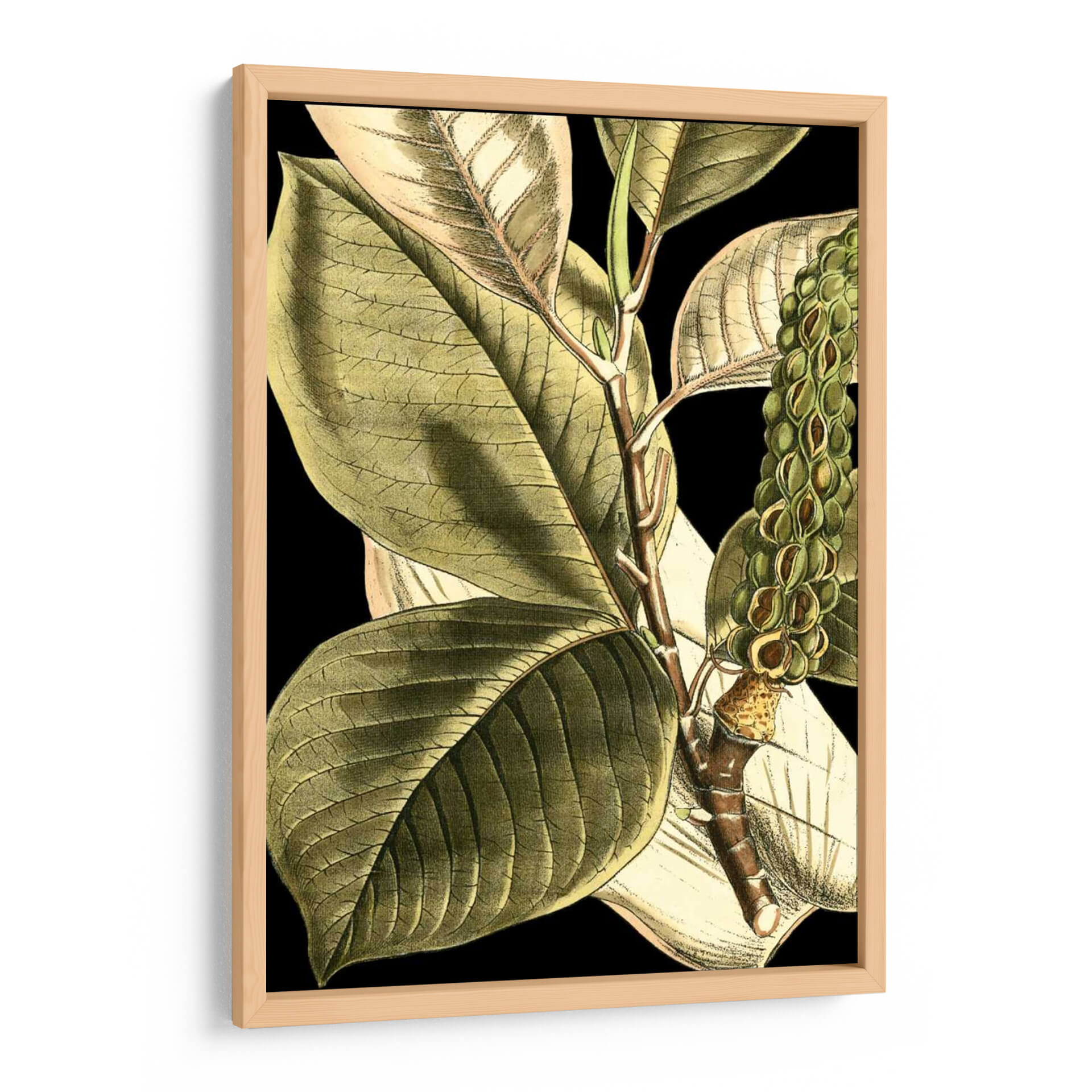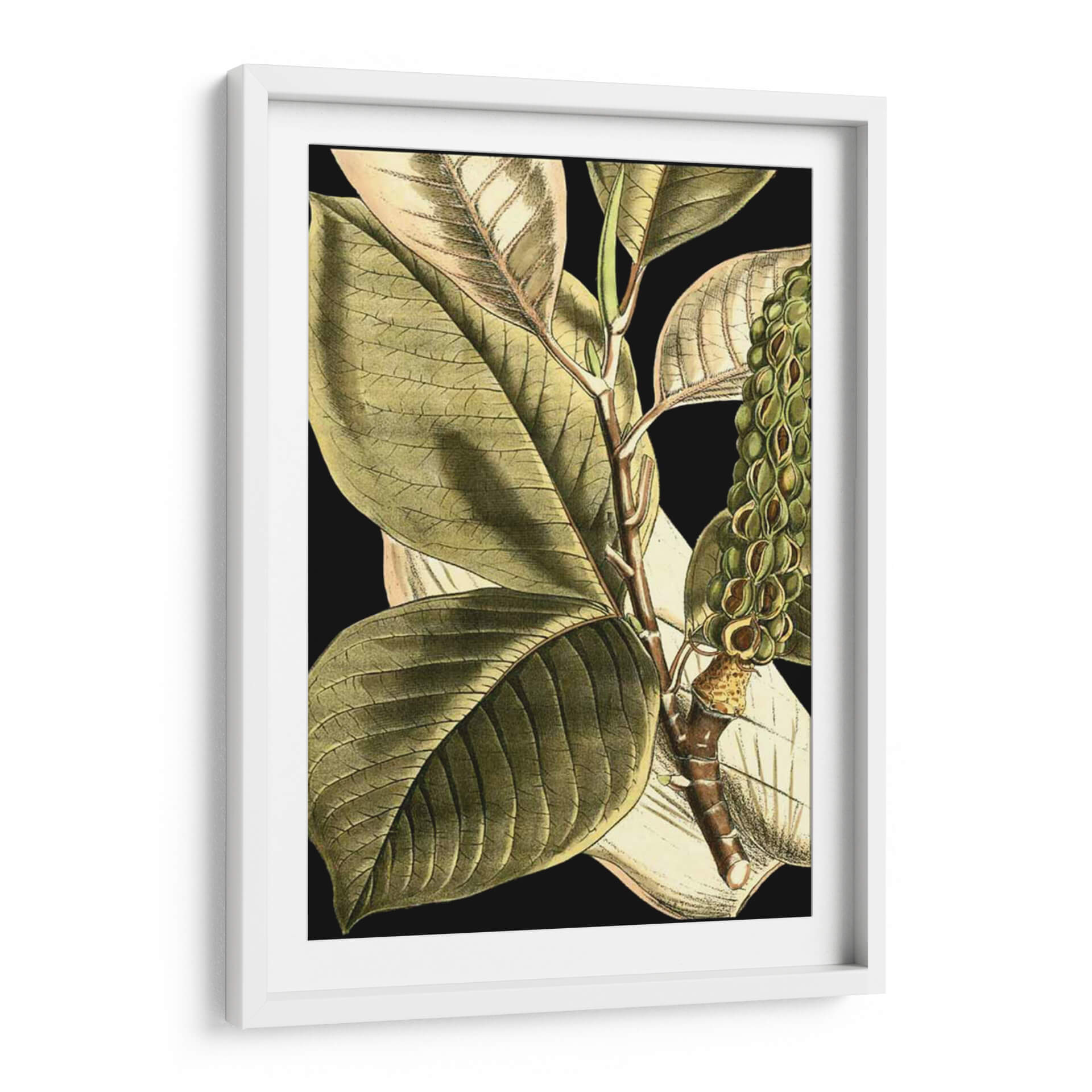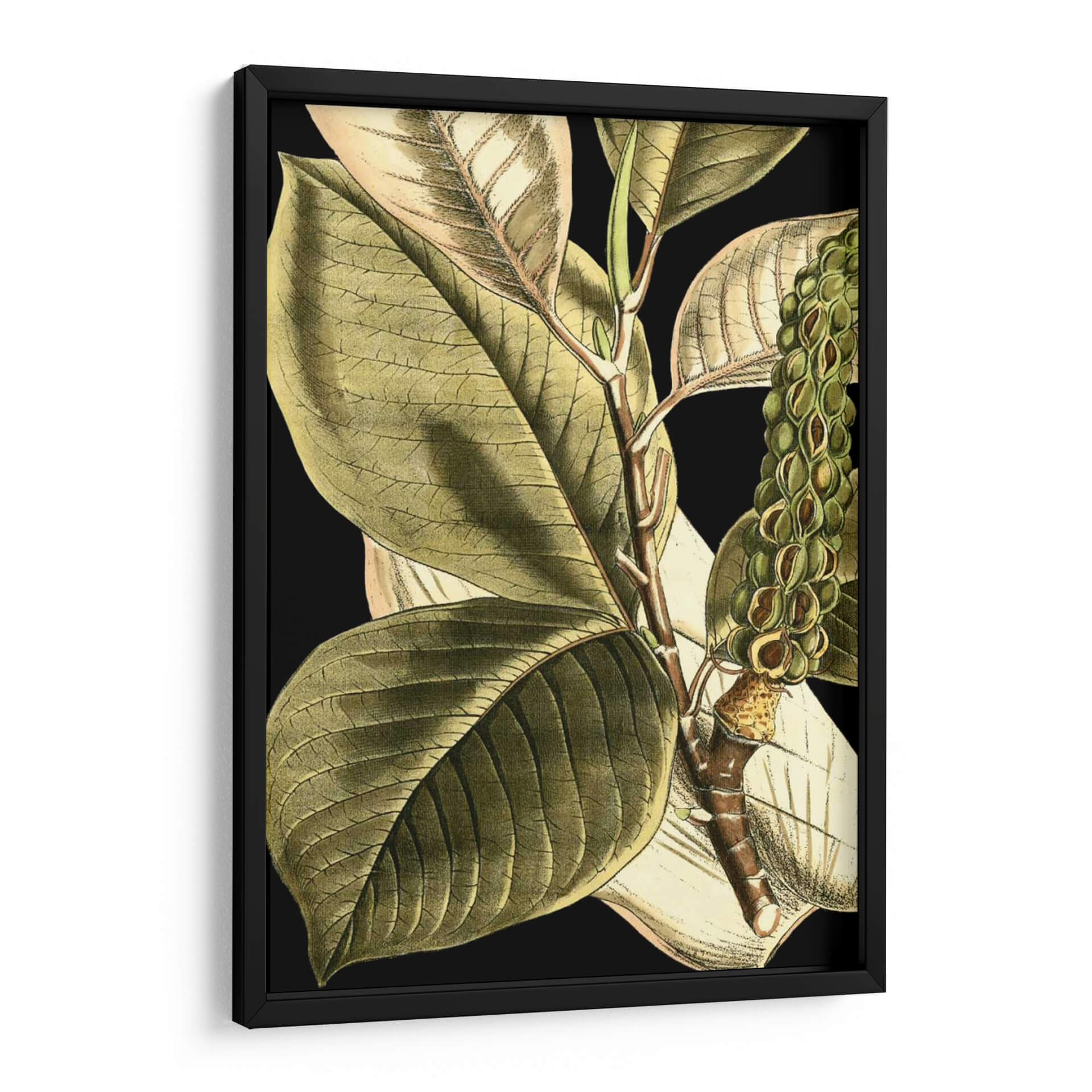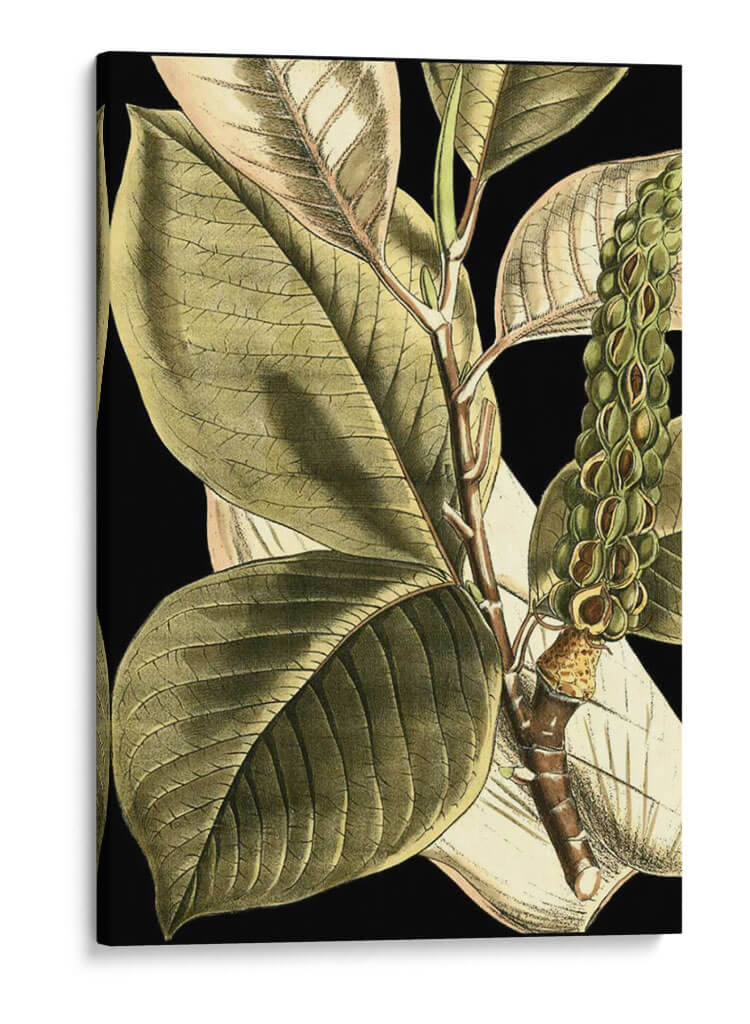 Sumérgete en la serenidad natural con "Hojas Tropicales Tranquilas II", una obra de arte que captura la esencia botánica con un detalle exquisito. Este cuadro decorativo presenta un primer plano de hojas tropicales de gran tamaño, renderizadas con un estilo que evoca las ilustraciones científicas clásicas, pero con una sensibilidad contemporánea. La paleta de colores se centra en tonos verdes profundos y terrosos, realzados por sutiles toques de beige y el contraste impactante de un fondo negro, creando una atmósfera de calma y elegancia sofisticada. La composición detallada, con venas marcadas en las hojas y la textura de la rama, invita a la contemplación, aportando una sensación de tranquilidad y conexión con la naturaleza a cualquier espacio. Ideal para salones, dormitorios o estudios que busquen un toque de sofisticación botánica y un remanso de paz visual. Este cuadro decorativo es una invitación a la introspección y a la apreciación de la belleza detallada del mundo natural, transformando tu hogar en un oasis de calma y estilo.