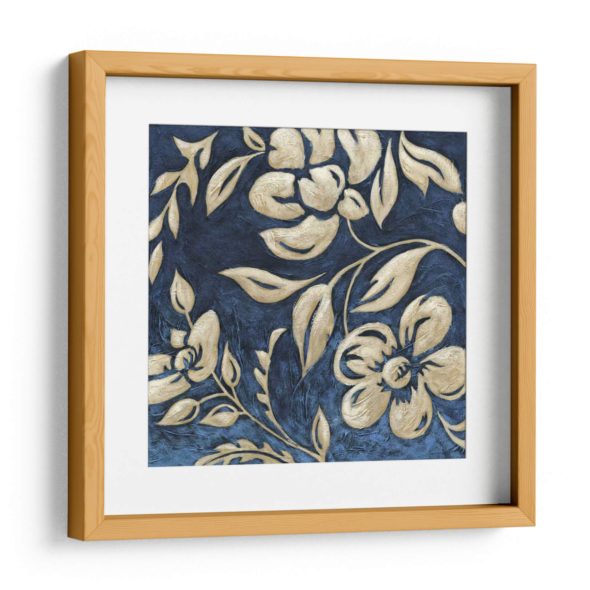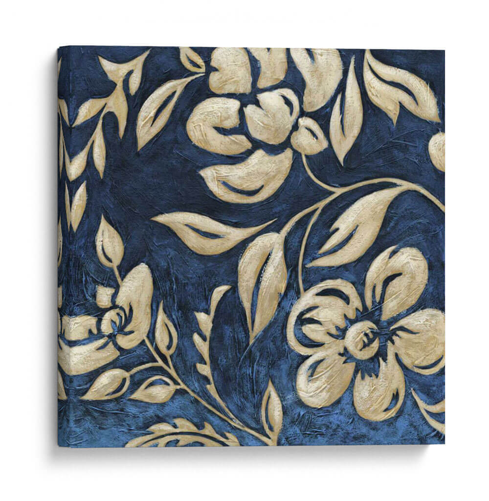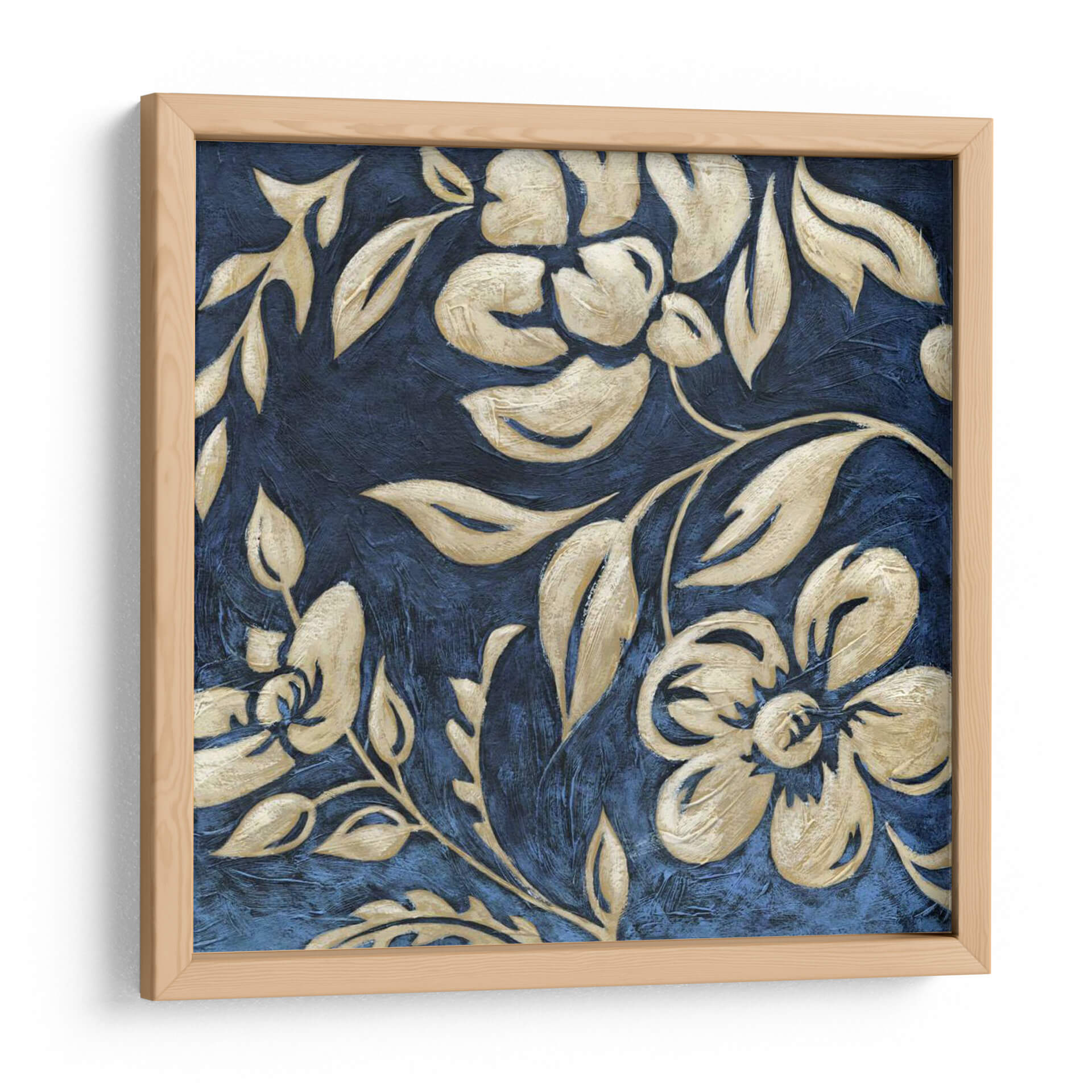 Sumérgete en la elegancia atemporal de 'Índigo Y Crema Brocado I', una obra de arte que redefine la sofisticación floral. Este cuadro decorativo captura la esencia de un brocado suntuoso con sus intrincados motivos florales y hojas que se despliegan sobre un fondo profundo de índigo. La técnica empleada, con sus texturas ricas y un contraste llamativo entre los tonos dorados y el azul marino, evoca una sensación de lujo y profundidad, invitando a la contemplación. Cada pincelada parece esculpir la forma, creando un relieve visual que añade una dimensión táctil a la pieza. Ideal para quienes buscan añadir un toque de distinción y calidez a su hogar u oficina, este lienzo abstracto floral es perfecto para salas de estar, comedores o estudios que deseen un punto focal con carácter. Su diseño versátil se adapta a interiores clásicos y modernos, aportando una atmósfera de serenidad y refinamiento. Descubre cómo este exquisito cuadro decorativo puede transformar tu espacio, infundiendo elegancia y un estilo artístico inconfundible. Una pieza que combina la delicadeza de la naturaleza con la audacia del diseño contemporáneo, asegurando admiración y conversación.