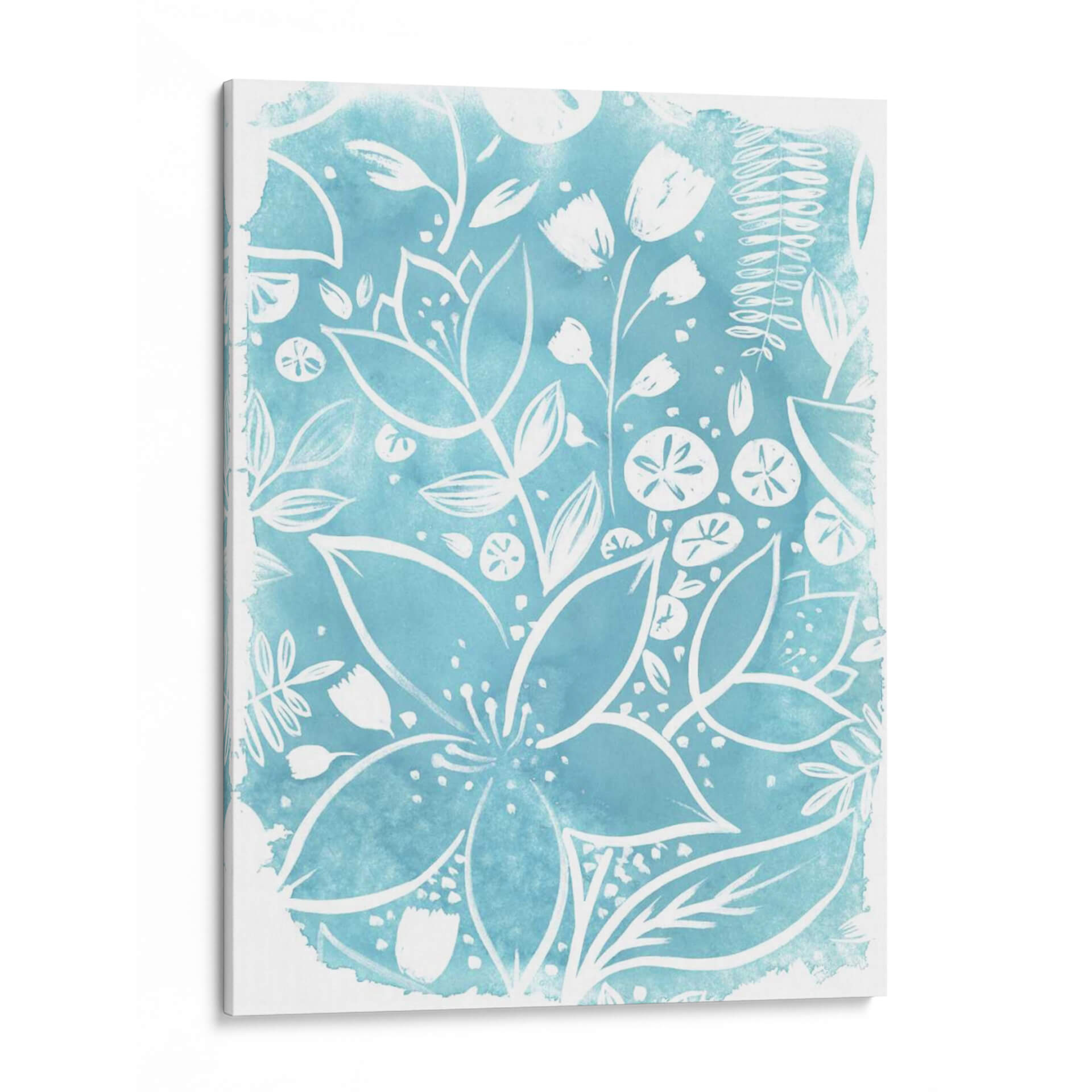 Sumérgete en la serenidad del "Jardín Batik VIII", una obra de arte contemporáneo que captura la delicadeza de la naturaleza con un toque etéreo. Este cuadro decorativo presenta un intrincado patrón de flores y hojas en tonos blancos y azules aguamarina, evocando la frescura del mar y la calma de un jardín botánico. La técnica, que recuerda a un batik o una impresión, otorga a la pieza una textura sutil y un aire artesanal, a pesar de su estética moderna. Los contornos blancos nítidos contrastan armoniosamente con el fondo de acuarela azul, creando un efecto visual cautivador y relajante. El diseño floral, con una flor central prominente rodeada de elementos botánicos más pequeños, se distribuye de manera orgánica, invitando a la contemplación. Ideal para añadir un toque de paz y sofisticación a tu sala de estar, dormitorio o incluso un espacio de oficina, este cuadro decorativo es una ventana a un oasis de tranquilidad. Su paleta de colores versátil lo convierte en un complemento perfecto para decoraciones costeras, escandinavas o minimalistas, aportando luz y serenidad a cualquier rincón. Deja que "Jardín Batik VIII" transforme tu hogar en un santuario de calma y belleza natural.