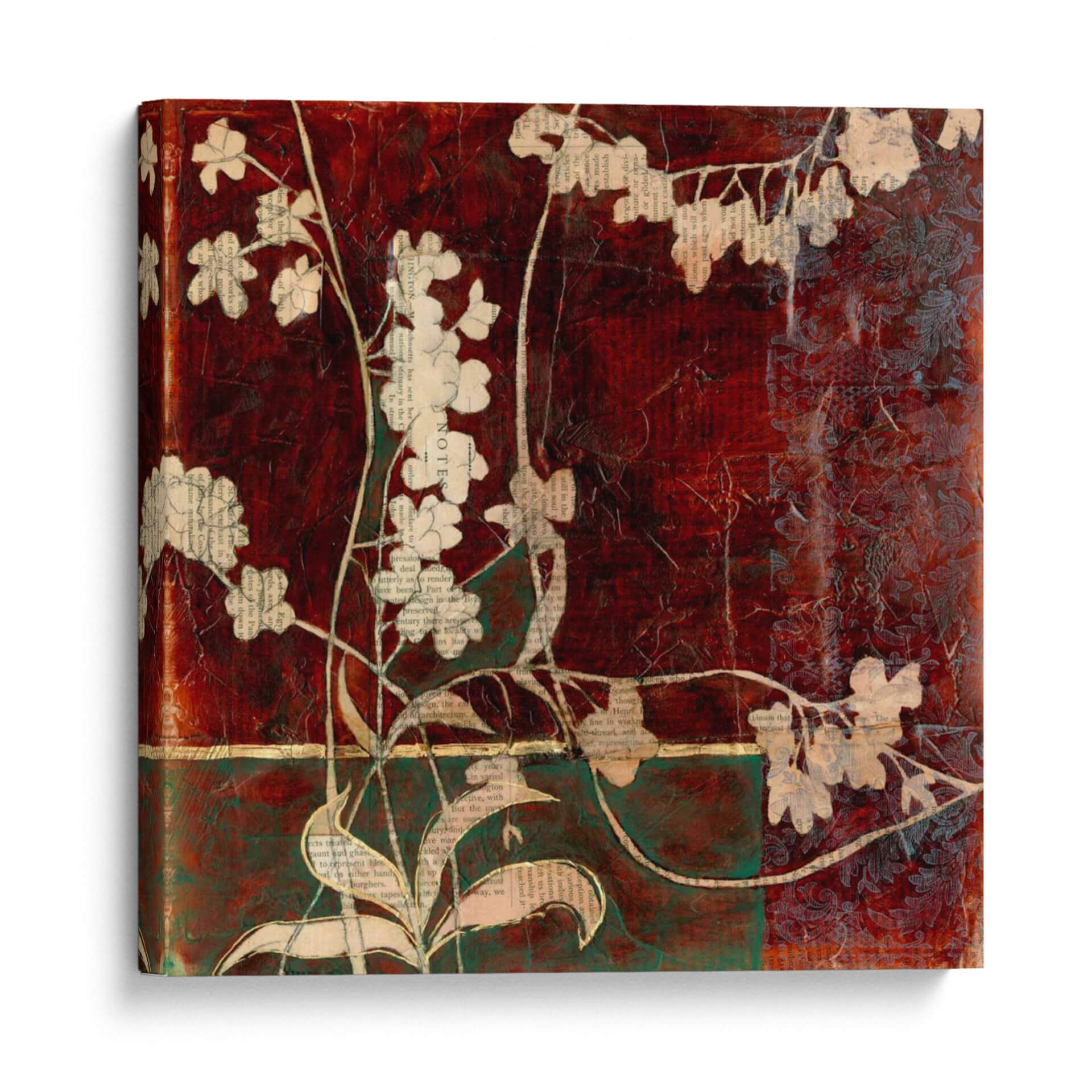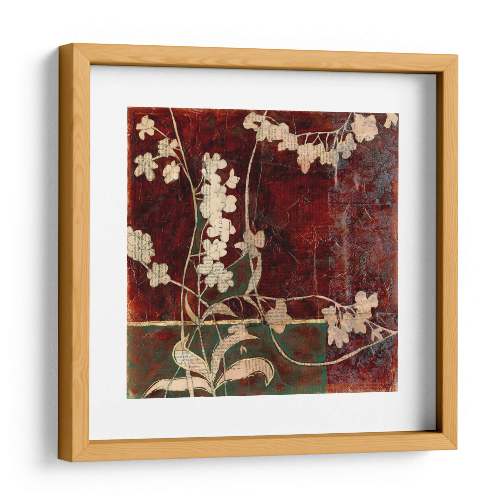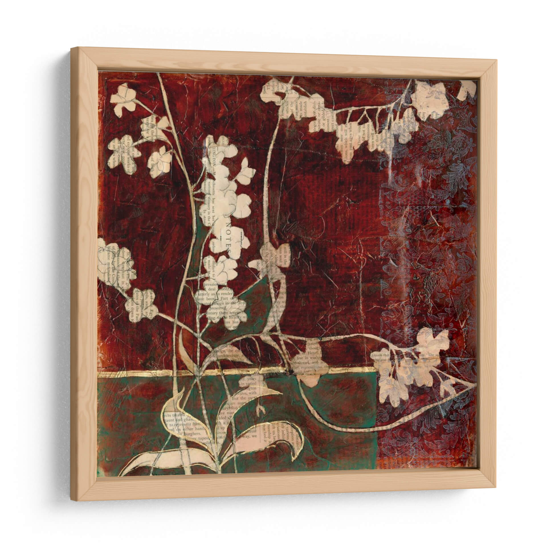 Sumérgete en la delicadeza etérea del cuadro decorativo "Jardín Whimsy II" de Jennifer Goldberger. Esta obra cautiva con su intrincada composición, donde delicadas flores blancas y ramajes se despliegan sobre un fondo texturizado de tonos burdeos profundos y verdes musgo. La técnica mixta, que incorpora fragmentos de texto y patrones sutiles, añade una capa de profundidad y misterio, invitando a la contemplación. La paleta de colores evoca una sensación de nostalgia y sofisticación, ideal para crear un ambiente sereno y elegante en tu sala de estar, dormitorio o estudio. "Jardín Whimsy II" no es solo una pieza decorativa, sino una ventana a un mundo onírico y refinado que aportará un toque de arte contemporáneo y personalidad a tu hogar. Su estilo único lo convierte en una elección perfecta para quienes buscan infundir sus espacios con belleza y carácter, transformando cualquier pared en una obra de arte viva. Descubre cómo esta obra puede convertirse en el punto focal de tu decoración, aportando calma y un toque de fantasía inspirada en la naturaleza.