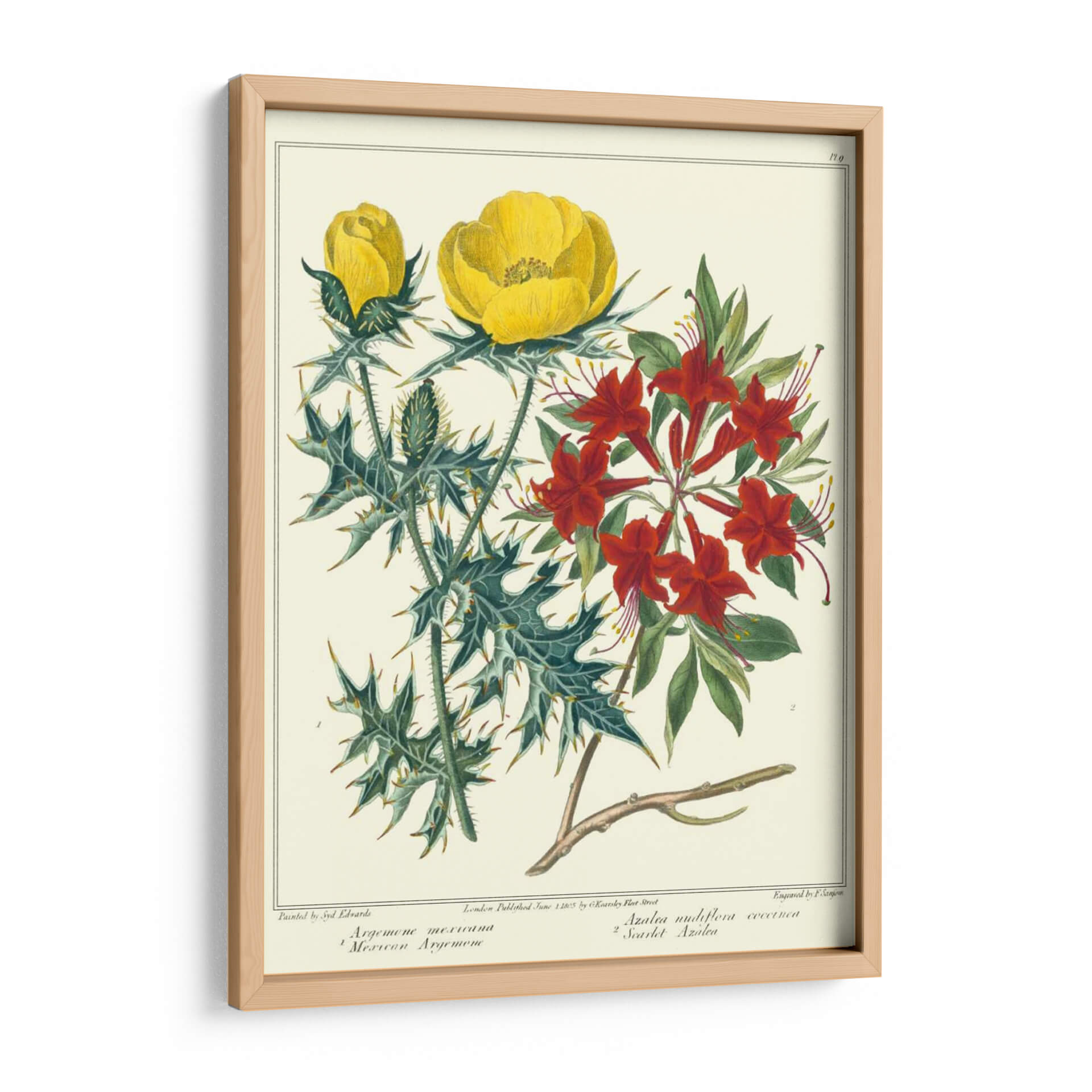 Embellece tu espacio con el encanto atemporal de 'Jardineros Deleite VII', una obra maestra botánica del reconocido artista Sydenham Edwards. Esta exquisita representación de la flora, con sus vibrantes flores rojas y amarillas contrastando con el verde intrincado de las hojas espinosas, aporta una explosión de color y vida a cualquier habitación. La detallada ilustración evoca la precisión de los estudios botánicos clásicos, pero con una sensibilidad artística que la hace perfecta para la decoración contemporánea. Imagina este cuadro decorativo añadiendo un toque de naturaleza sofisticada a tu sala de estar, un punto focal elegante en tu comedor, o una pincelada de color y vitalidad a tu oficina. La paleta de colores, rica y armoniosa, se integra sin esfuerzo en diversos estilos de interiores, desde lo clásico hasta lo moderno. Es más que una simple imagen; es una ventana a la belleza detallada del mundo natural, una pieza que invita a la contemplación y al aprecio por los matices de la flora. Ideal para amantes de la botánica, el arte clásico o cualquiera que busque añadir un toque de elegancia natural y color a su hogar.