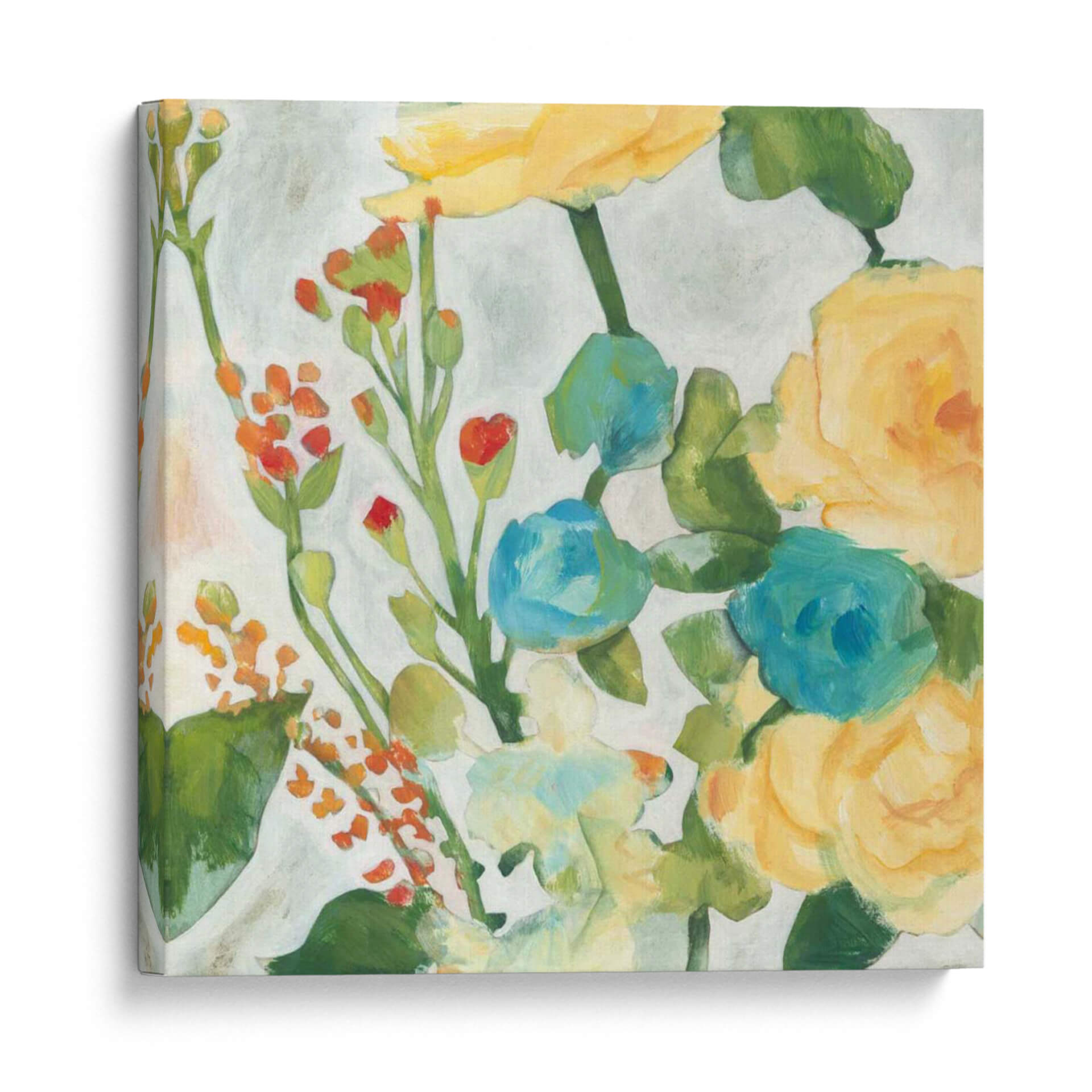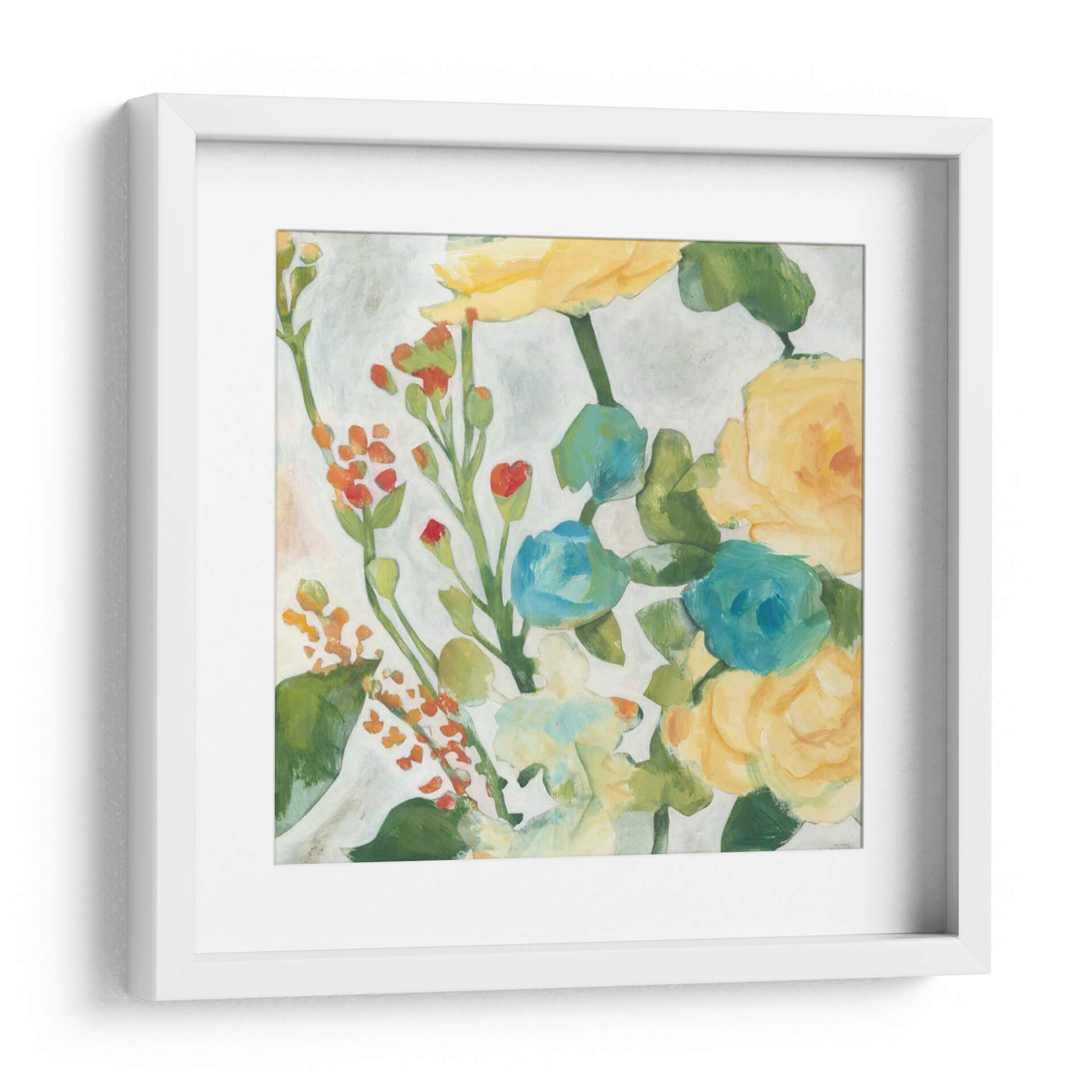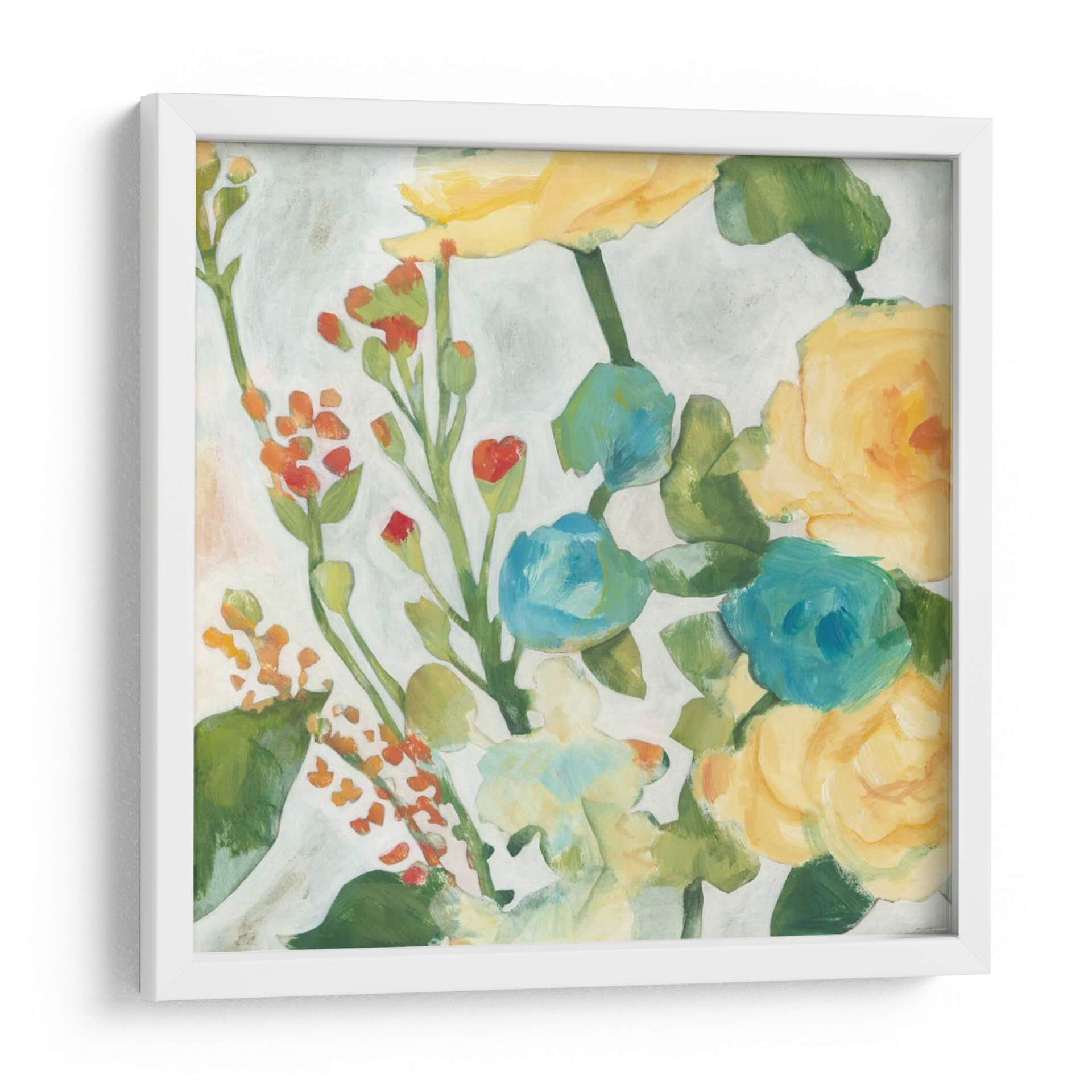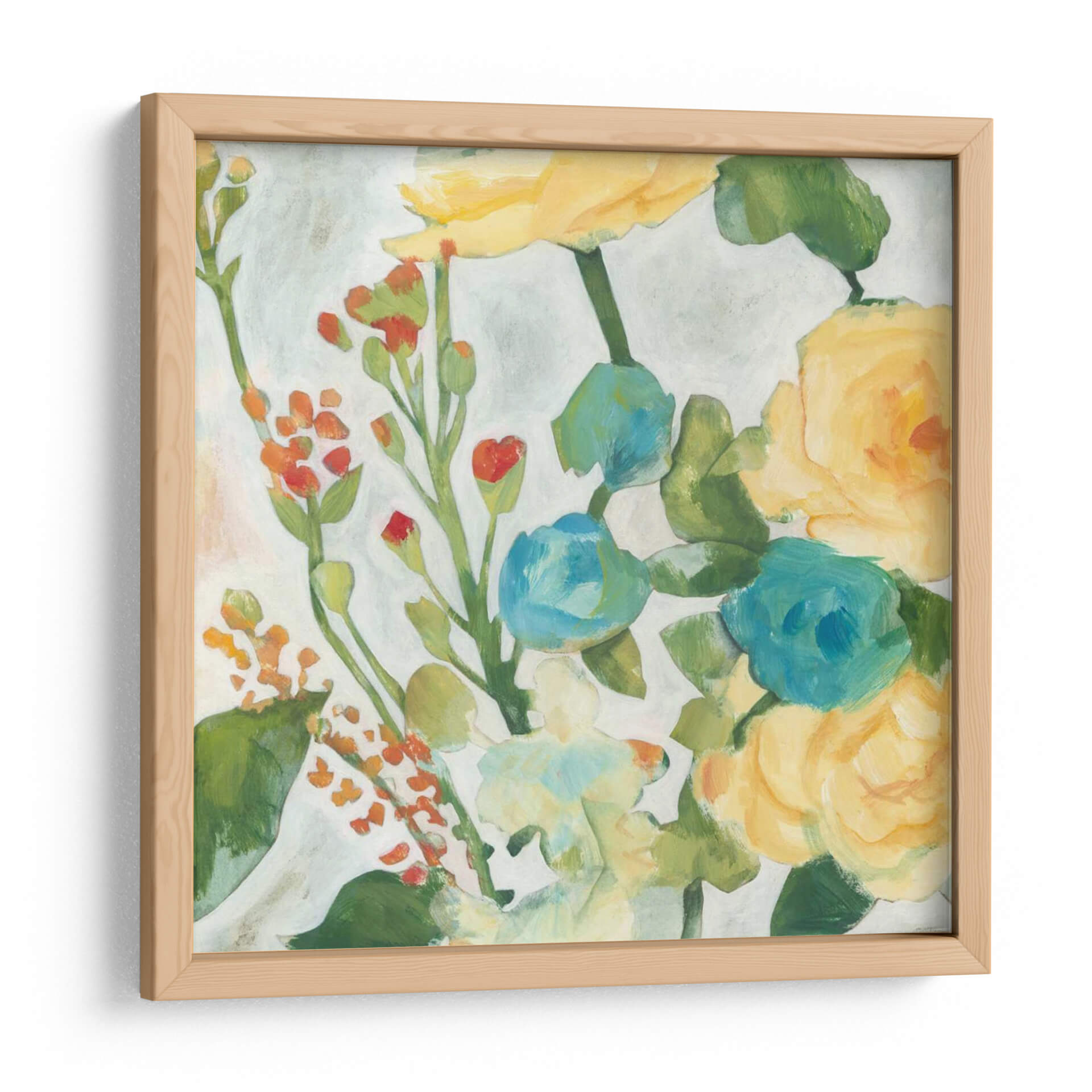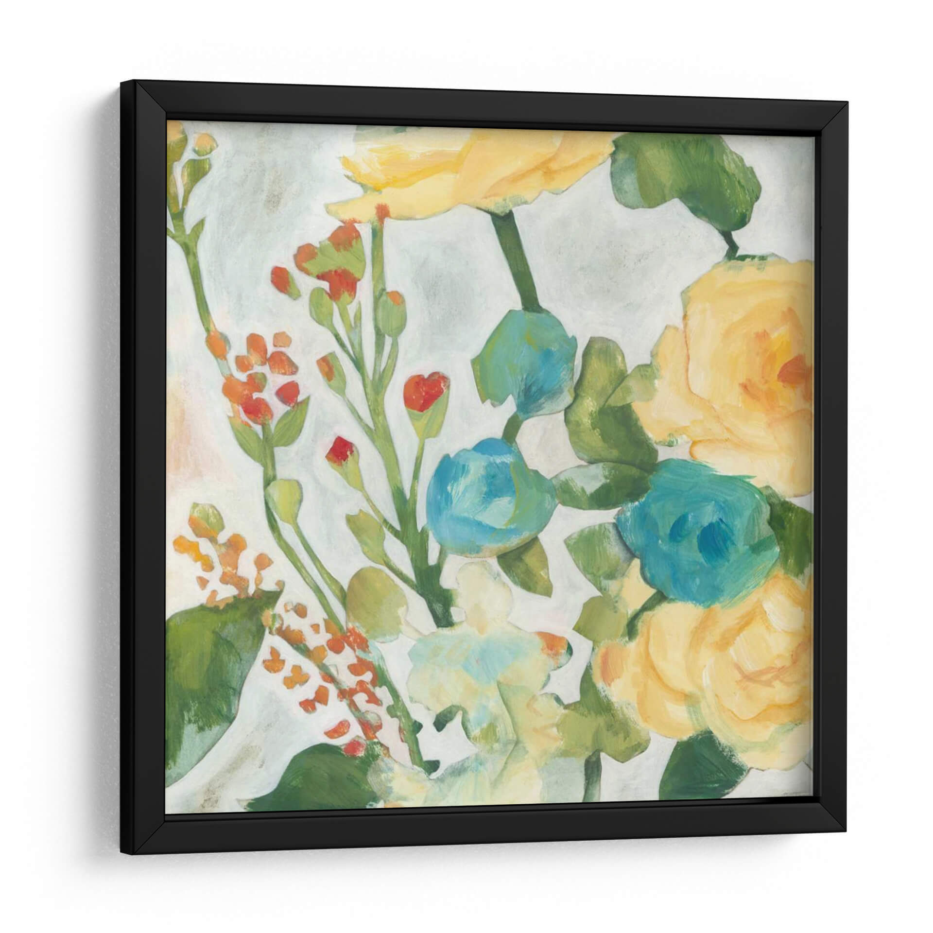 Embellece tu hogar con el vibrante y delicado cuadro decorativo "Junio Ramo II" de Megan Meagher. Esta obra maestra captura la esencia de un jardín florecido con un estilo impresionista y pinceladas sueltas que dan vida a cada pétalo y hoja. La paleta de colores se centra en tonos cálidos de amarillo y alegres acentos de azul y naranja, contrastando sutilmente sobre un fondo texturizado de gris claro. La composición, llena de movimiento y frescura, evoca una sensación de alegría primaveral y tranquilidad. "Junio Ramo II" es perfecto para añadir un toque de color y sofisticación a cualquier espacio, ya sea una sala de estar moderna, un dormitorio sereno o una oficina inspiradora. Su estilo contemporáneo y su temática floral lo convierten en una pieza versátil que complementa una variedad de decoraciones interiores, aportando un aire de optimismo y belleza natural. Descubre la delicadeza de las flores pintadas con maestría y transforma tu ambiente con este cuadro decorativo que irradia luz y vitalidad, una elección ideal para quienes aprecian el arte floral con un toque moderno y emotivo.