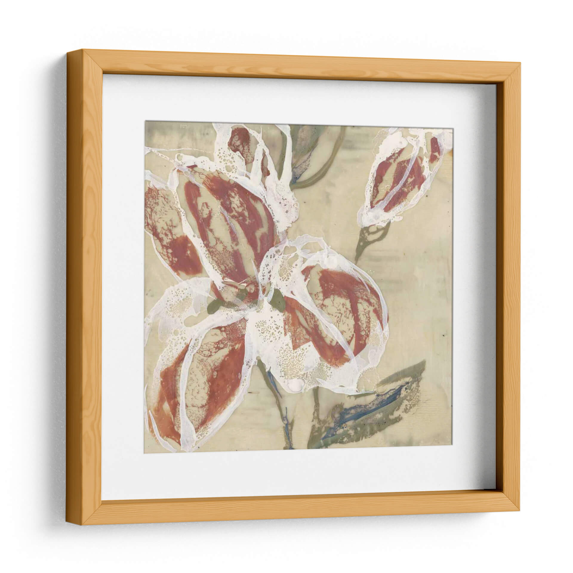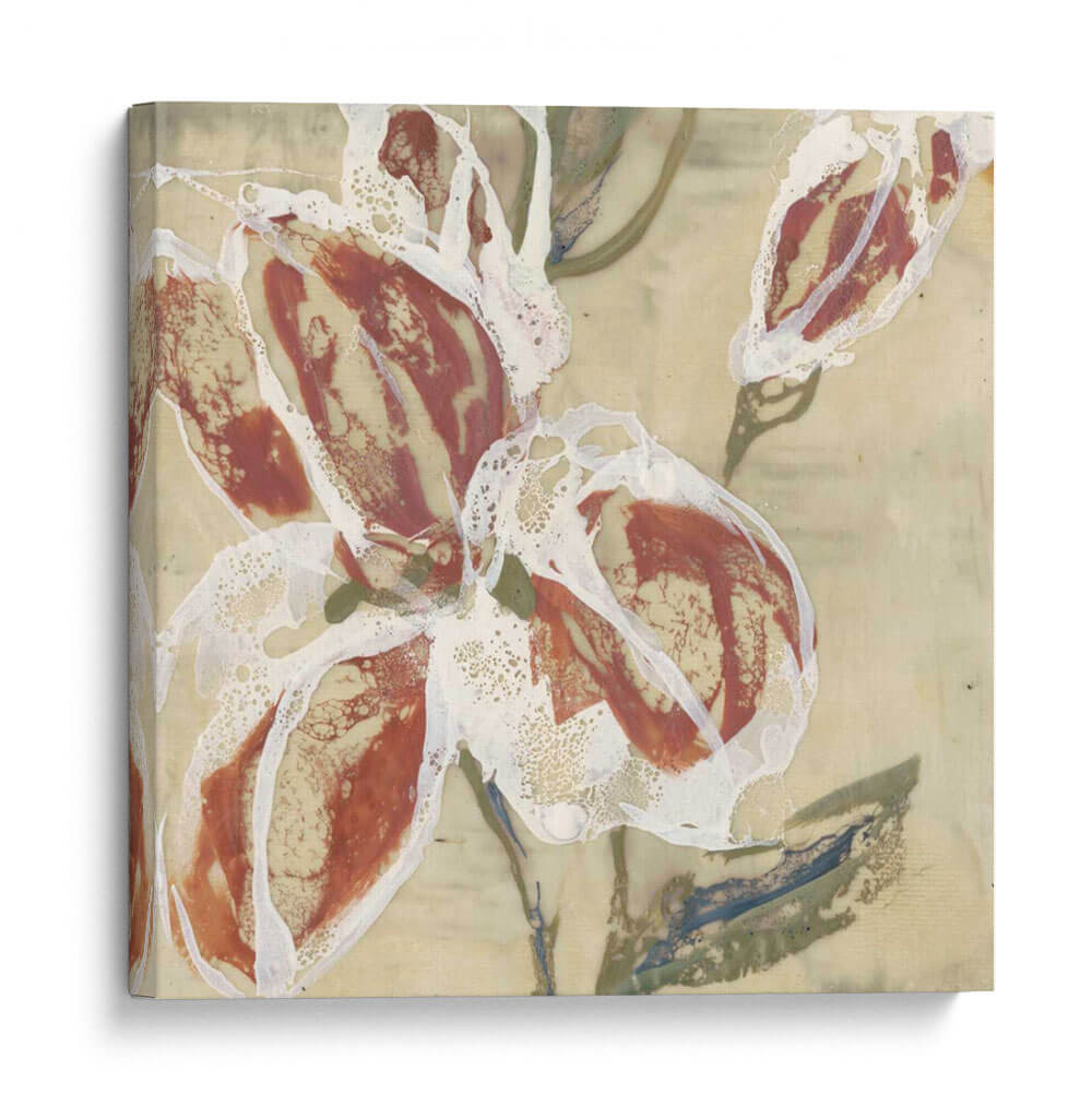 Sumérgete en la delicadeza y el encanto de "Lilys Aliento Ii", una obra de arte de Jennifer Goldberger que captura la esencia etérea de las flores con un estilo contemporáneo y expresivo. Esta pieza presenta un acercamiento íntimo a la forma floral, donde los pétalos se despliegan en una danza de texturas y colores. La paleta cromática, dominada por suaves tonos tierra, cremas y acentos de terracota y blanco roto, crea una atmósfera de serenidad y calidez. La técnica de la artista, caracterizada por un juego de capas y pinceladas fluidas, evoca una sensación de movimiento y profundidad, como si la flor estuviera respirando ante tus ojos. "Lilys Aliento Ii" es más que un simple cuadro decorativo; es una invitación a la contemplación, perfecta para añadir un toque de sofisticación natural a cualquier espacio, desde un salón moderno hasta un dormitorio tranquilo o una oficina elegante. Su composición, centrada en la belleza orgánica, la convierte en una pieza versátil que complementará una variedad de estilos decorativos, aportando una nota de frescura y elegancia atemporal.