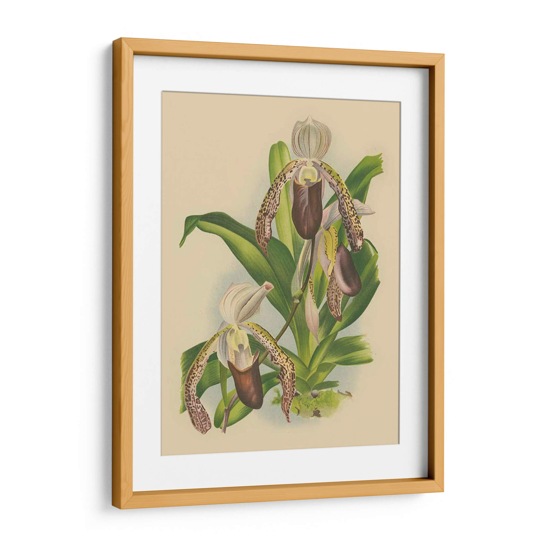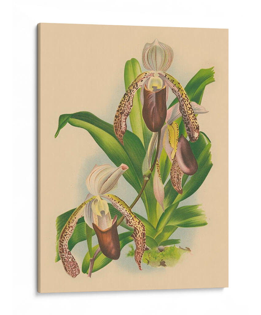 Inmortaliza la delicada belleza de la naturaleza con este exquisito cuadro decorativo de orquídeas. La obra presenta un detallado estudio botánico de orquídeas Paphiopedilum, capturando la intrincada forma de sus pétalos y la rica textura de sus patrones moteados. Los tonos tierra y los suaves verdes crean una atmósfera de serenidad y elegancia, perfecta para añadir un toque de sofisticación natural a cualquier espacio. Esta pieza evoca una sensación de calma y aprecio por la flora, ideal para dormitorios, salas de estar o estudios donde se busca un ambiente de tranquilidad y belleza atemporal. El estilo, reminiscentes de ilustraciones botánicas clásicas, aporta un aire de refinamiento y conocimiento. Este cuadro decorativo es una ventana a la maravilla del mundo natural, diseñado para resonar con amantes de la botánica, la naturaleza y el arte clásico.