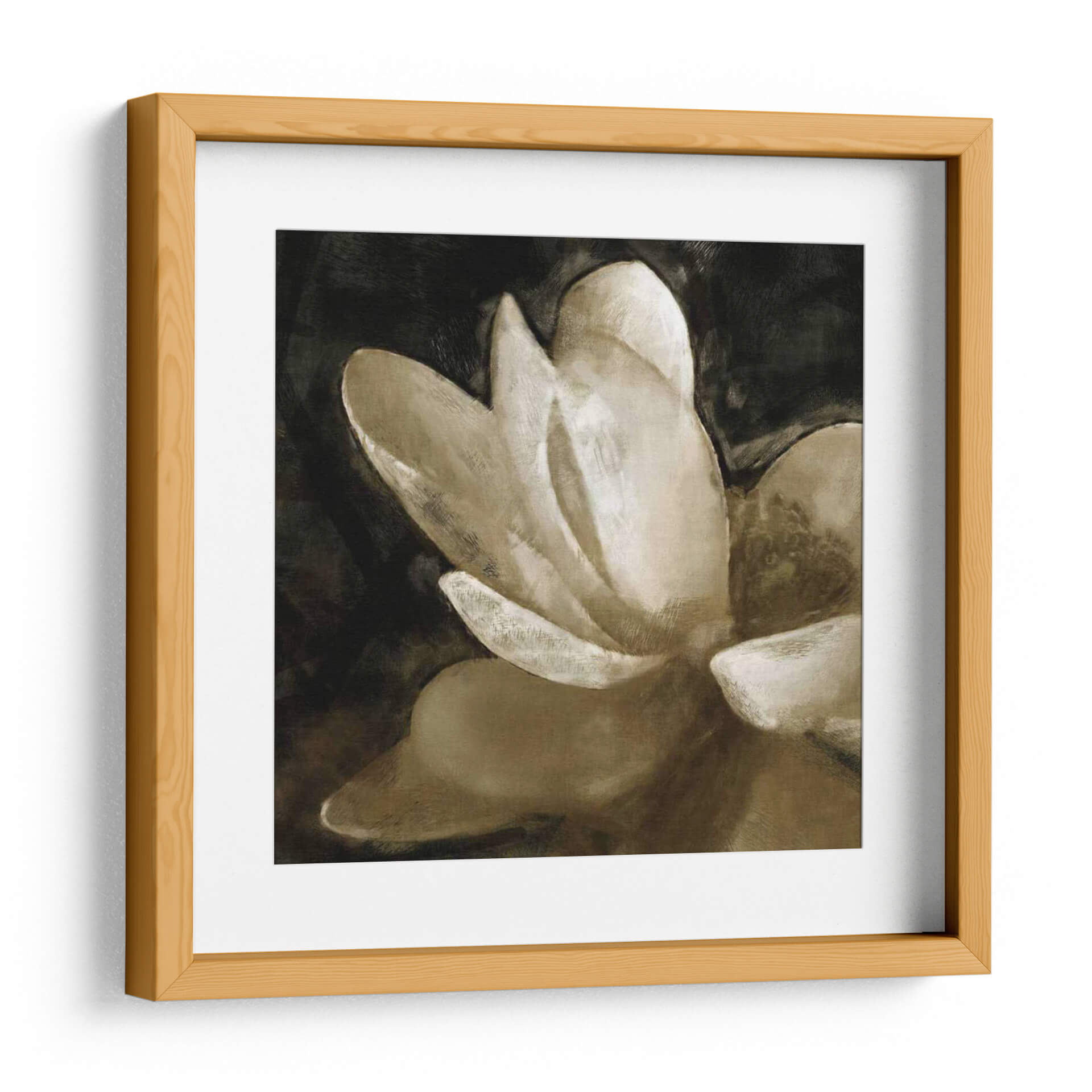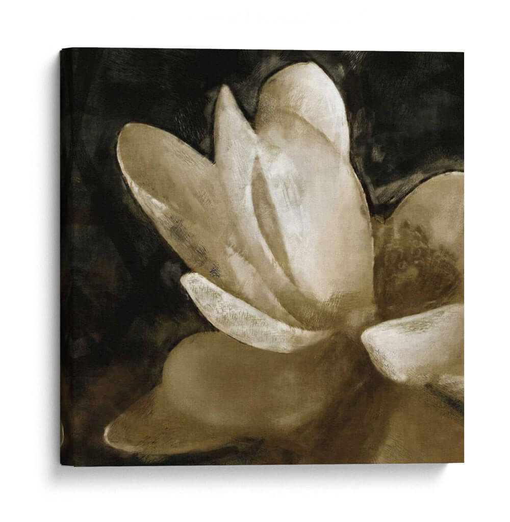 Sumérgete en la elegancia serena de "Lirio de Bronce V", una obra de arte contemporáneo que captura la delicadeza de una flor en plena floración. El artista Noah Bay utiliza una paleta de colores sofisticada, dominada por tonos sepia y ocres, que contrastan sutilmente con un fondo oscuro y profundo, creando un efecto dramático y a la vez íntimo. Las pinceladas expresivas y la composición audaz de esta pieza la convierten en un punto focal cautivador para cualquier espacio. Ideal para quienes buscan añadir un toque de naturaleza estilizada y un aire de tranquilidad a su hogar u oficina, este cuadro decorativo evoca calma y contemplación. Su estilo artístico, que fusiona lo figurativo con toques abstractos, permite que se integre armoniosamente en diversas decoraciones, desde las más clásicas hasta las vanguardistas. "Lirio de Bronce V" no es solo una imagen, sino una invitación a la introspección y a la apreciación de la belleza efímera, transformando cualquier pared en una galería personal llena de estilo y emoción.