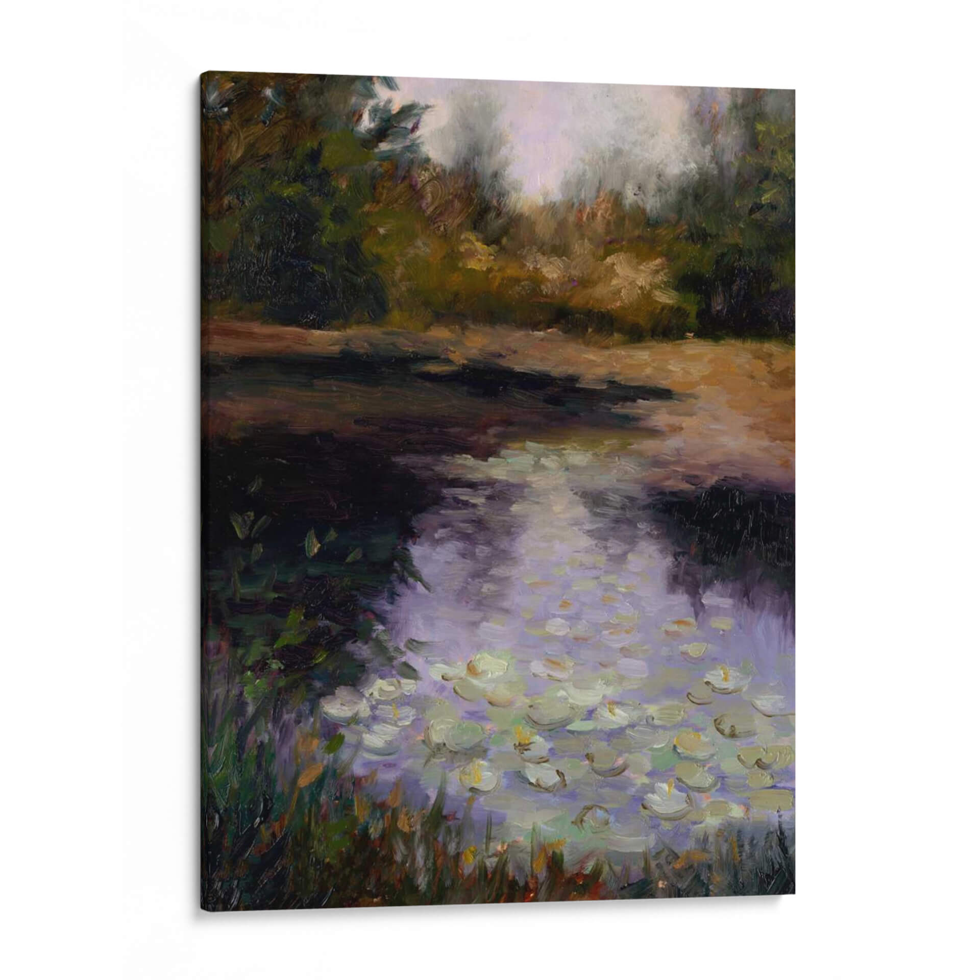 Sumérgete en la serena belleza de "Lirios de Agua de Oregón", una obra de arte que captura la esencia de un estanque tranquilo bañado por la luz. Mary Jean Weber nos transporta a un paisaje natural donde los lirios flotan delicadamente sobre aguas reflejantes, creando una atmósfera de paz y contemplación. La paleta de colores, dominada por tonos verdes profundos, marrones terrosos y sutiles pinceladas de lila y blanco en los nenúfares y sus reflejos, evoca una sensación de calma y armonía. El estilo pictórico, con sus pinceladas visibles y una composición que recuerda al impresionismo, aporta textura y vida a la escena, invitando al espectador a perderse en los detalles. Este cuadro decorativo es perfecto para aquellos que buscan infundir un aire de tranquilidad y conexión con la naturaleza en sus hogares u oficinas. Imagina esta pieza como un oasis de serenidad en tu sala de estar, un recordatorio de la belleza efímera de la naturaleza en tu dormitorio, o un toque inspirador en tu espacio de trabajo. "Lirios de Agua de Oregón" no es solo una decoración, es una invitación a la introspección y al disfrute de la belleza natural a través del arte.