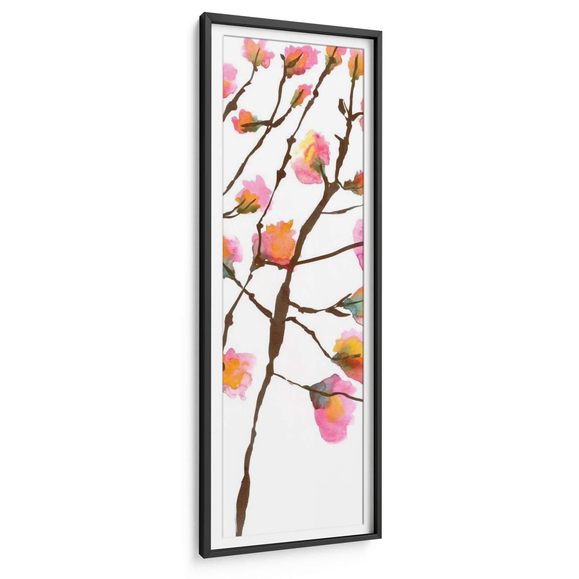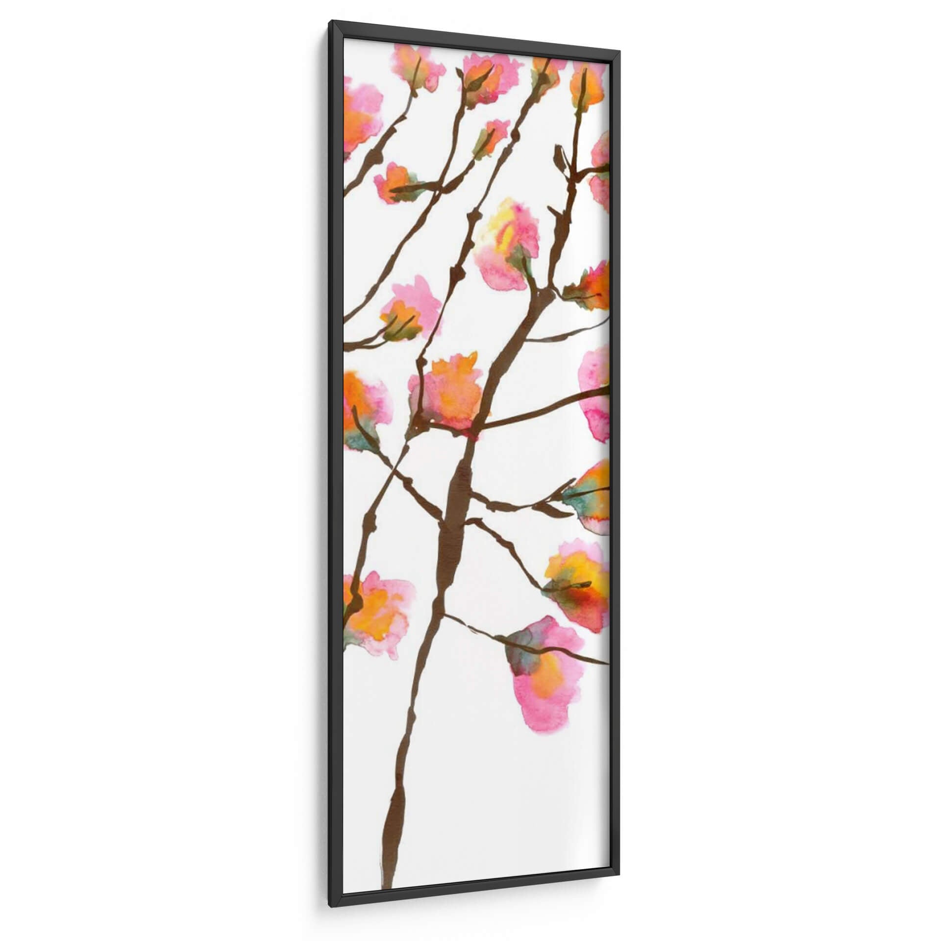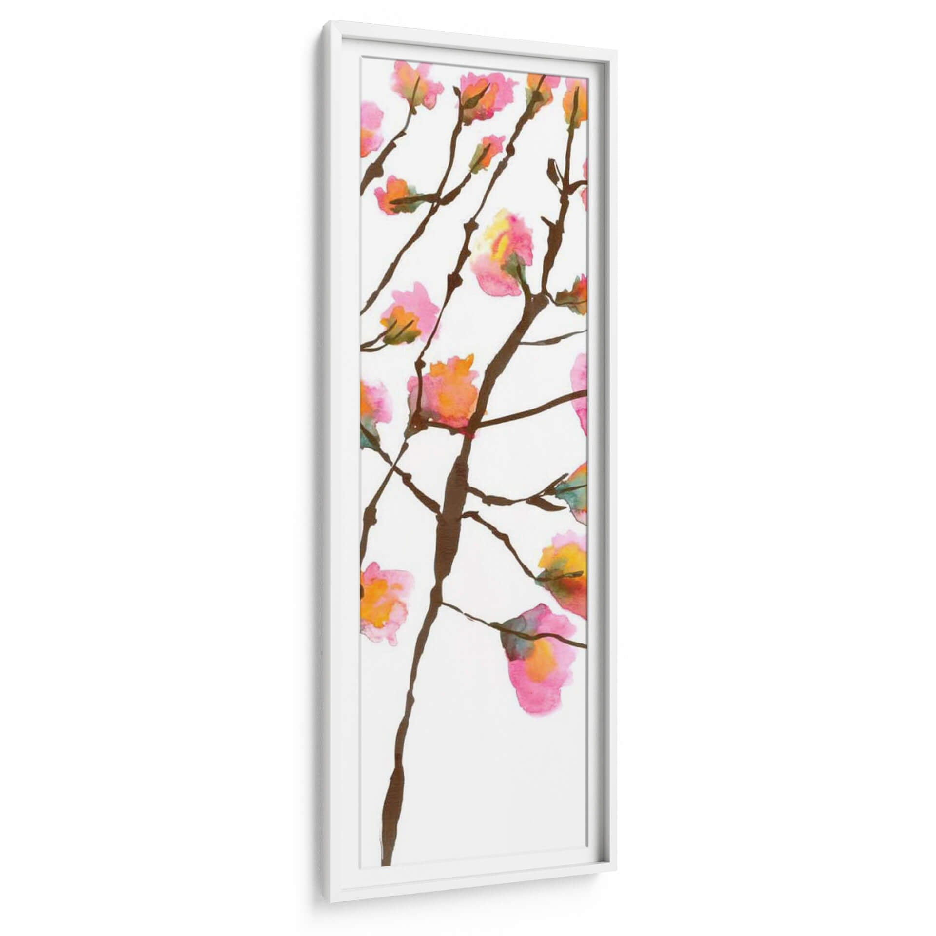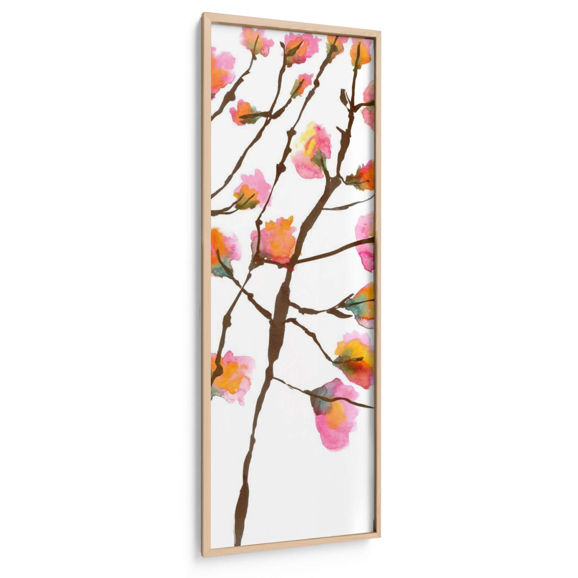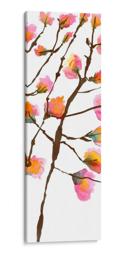Captura la esencia de la primavera con "Manchado De Tinta Flores II", una obra de arte de Deborah Velasquez que infunde vitalidad y color a cualquier espacio. Este cuadro decorativo presenta una delicada rama con flores en tonos vibrantes de rosa intenso, naranja y toques de turquesa, ejecutada con una técnica que evoca la fluidez y la espontaneidad de la acuarela. Las pinceladas sueltas y las manchas de tinta crean una sensación de movimiento y ligereza, como si las flores estuvieran a punto de danzar con la brisa. El contraste entre las ramas marrones y el fondo blanco nítido realza la luminosidad de las flores, creando un punto focal elegante y refrescante. Su estilo contemporáneo y abstracto, con un toque botánico, lo hace ideal para añadir un acento de color y sofisticación a salones modernos, dormitorios serenos o recibidores llenos de luz. "Manchado De Tinta Flores II" no es solo una pieza decorativa, sino una invitación a la contemplación y a la apreciación de la belleza efímera de la naturaleza, aportando una atmósfera de alegría y renovación a tu hogar u oficina.