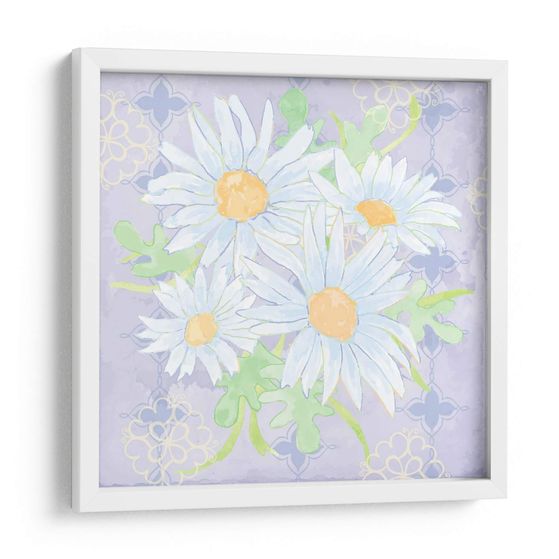 Inunda tu hogar con la delicada belleza de "Margarita Parche Serenidad I", una obra de arte contemporáneo de Leslie Mark. Este cuadro decorativo captura la esencia de las margaritas con un estilo que evoca la acuarela, donde pétalos blancos y pálidos se abren hacia centros de un vibrante tono naranja. El fondo, en un suave tono lavanda, se adorna con sutiles patrones florales y geométricos en azul pálido y amarillo pálido, creando una atmósfera etérea y serena. Las hojas verdes añaden toques de vitalidad natural, equilibrando la composición. La técnica de Leslie Mark, caracterizada por pinceladas sueltas y un uso magistral del color, confiere a la pieza una sensación de movimiento y ligereza. "Margarita Parche Serenidad I" es ideal para añadir un toque de frescura y tranquilidad a cualquier espacio, desde un dormitorio acogedor hasta una sala de estar luminosa o una oficina que busca inspiración. Su paleta de colores pastel y su temática floral la convierten en una pieza versátil, perfecta para quienes buscan un arte que inspire calma, elegancia y una conexión sutil con la naturaleza. Descubre la serenidad en cada detalle y transforma tu pared en un oasis de paz y estilo.