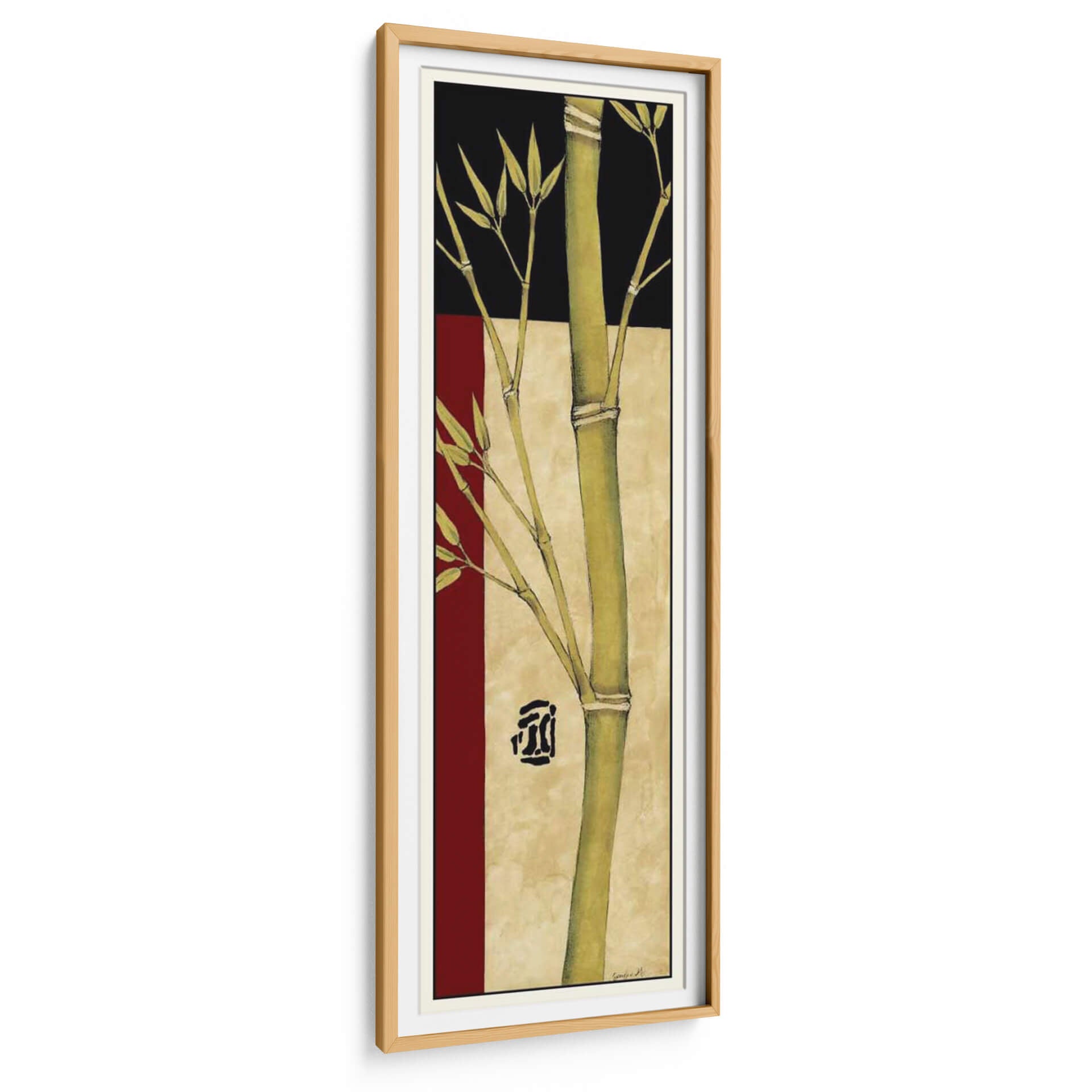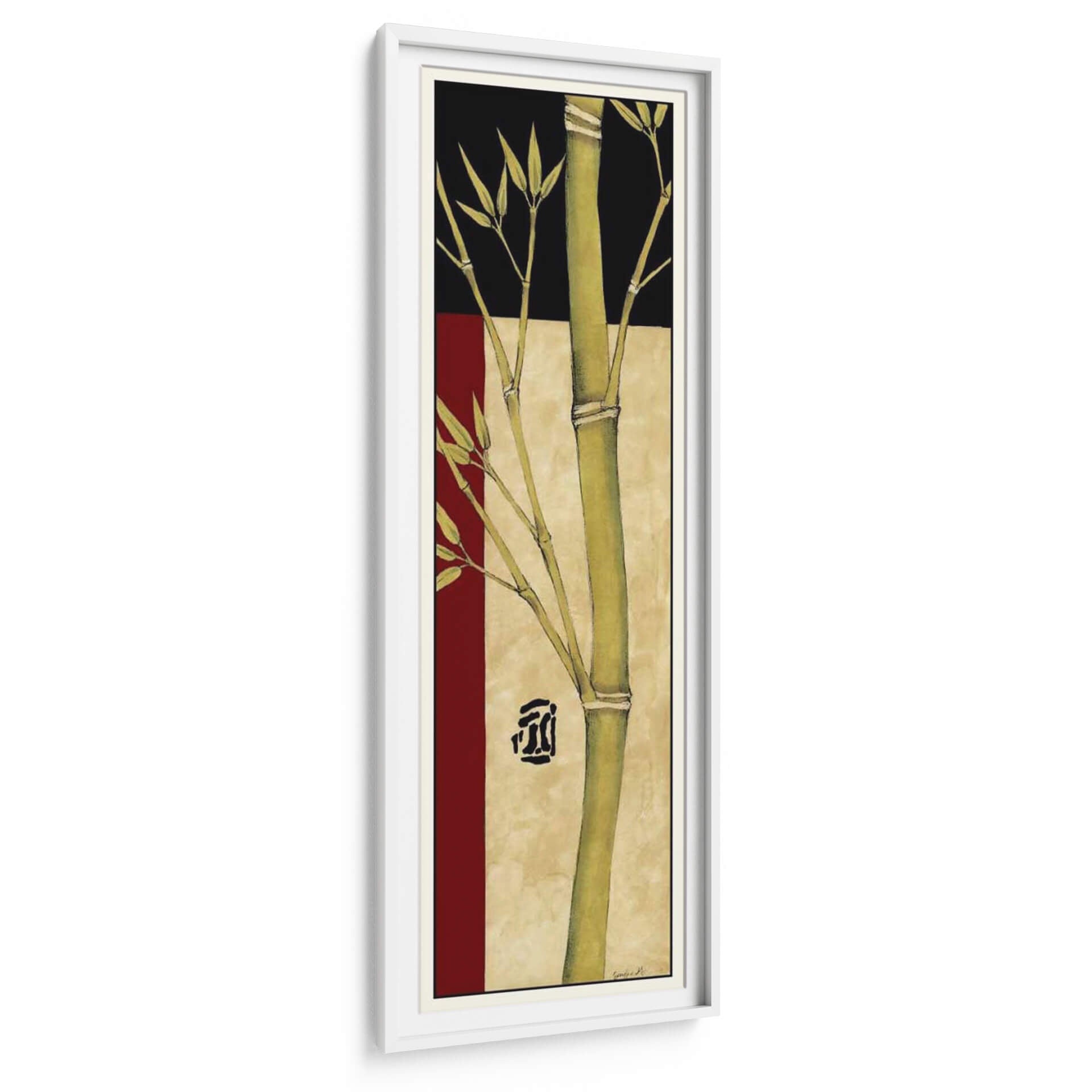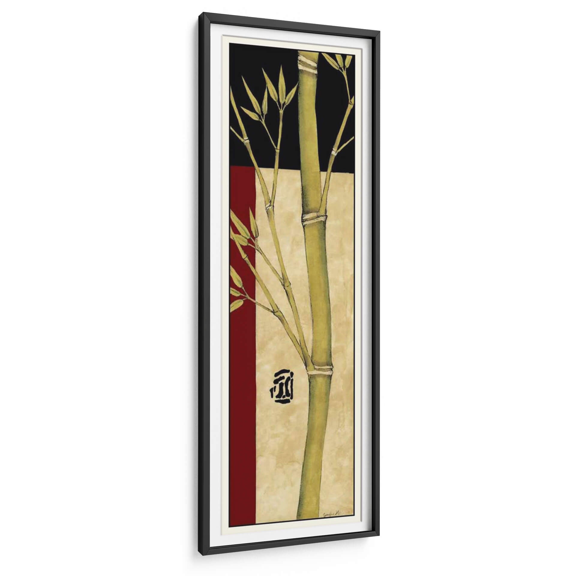 Emb erva la serenidad y la elegancia natural con 'Meditative Panel De Bambú IV', una obra de arte que captura la esencia del bambú en un diseño contemporáneo. Esta pieza vertical presenta un tallo de bambú vibrante y detallado que se eleva a través de un fondo texturizado en tonos tierra, creando una atmósfera de calma y equilibrio. Los sutiles toques de rojo burdeos y negro contrastan armoniosamente con los verdes naturales del bambú, añadiendo profundidad y sofisticación visual. El estilo combina elementos de arte asiático y diseño moderno, resultando en un cuadro decorativo que evoca tranquilidad y un toque zen. La composición vertical es ideal para espacios estrechos o para añadir un punto focal vertical en cualquier habitación. Perfecto para quienes buscan infundir a su hogar u oficina una sensación de paz, bienestar y una conexión con la naturaleza. Este cuadro decorativo es una elección excepcional para salones, dormitorios, pasillos o espacios de meditación, aportando un aire de refinamiento y calma.