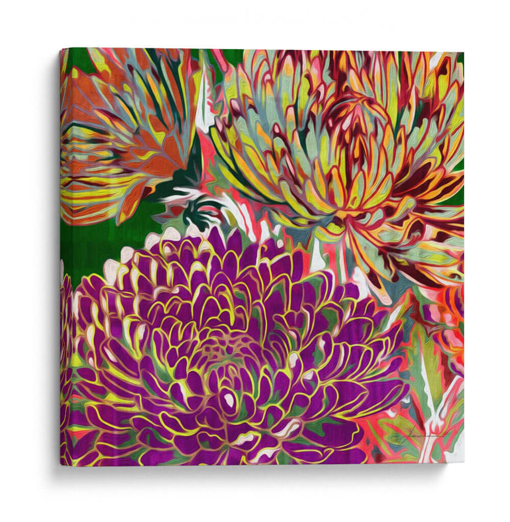 Embriáguese en la vibrante explosión de color y forma que ofrece "Mezcla de Primavera III", una obra de arte contemporáneo del artista James Burghardt. Este cuadro decorativo captura la esencia exuberante de la naturaleza con un enfoque audaz y moderno, presentando flores en pleno florecimiento con pétalos detallados y texturas dinámicas. La paleta de colores, dominada por intensos tonos de púrpura, verde, amarillo y toques de naranja y rojo, crea una atmósfera de vitalidad y alegría, perfecta para inyectar energía en cualquier espacio. El estilo pictórico, con pinceladas visibles y un contorno definido, otorga a la pieza un carácter distintivo y contemporáneo, ideal para quienes buscan piezas de arte originales que expresen audacia y optimismo. "Mezcla de Primavera III" es más que una simple decoración; es una celebración de la vida y la belleza natural, diseñada para convertirse en el punto focal de su sala de estar, comedor u oficina, aportando un toque de sofisticación y frescura a su ambiente. Añada esta pieza única a su colección y deje que su vibrante espíritu transforme su hogar.