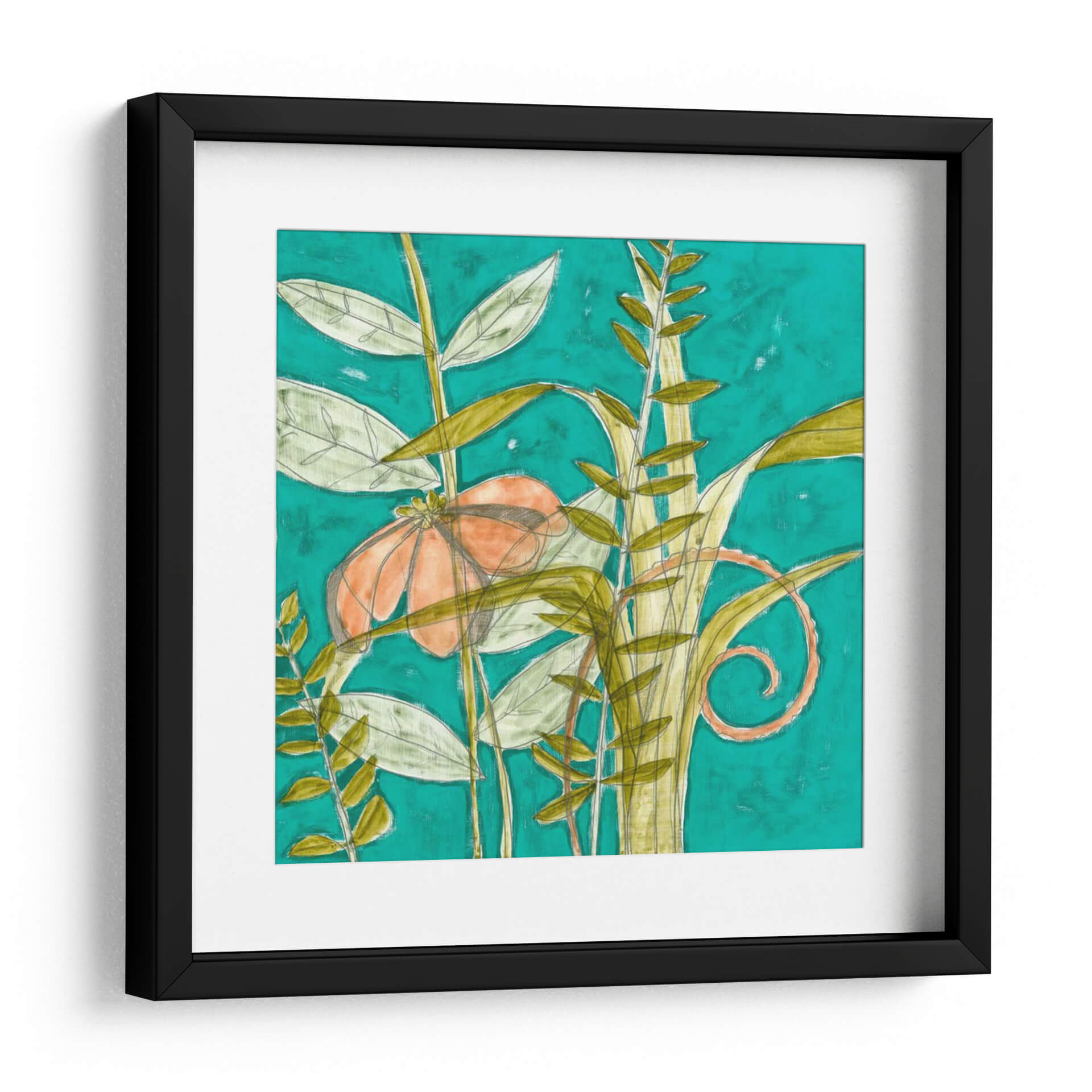 Sumérgete en la exuberancia vibrante de 'Mezcla Tropical II', una obra de arte contemporáneo que captura la esencia de un paraíso botánico con una energía cautivadora. Esta pieza, creada por Jennifer Goldberger, presenta una fascinante composición de follaje estilizado y una flor central en tonos coral y naranja, contrastando con un fondo de un profundo y enérgico verde azulado. Las pinceladas texturizadas y el estilo semi-abstracto añaden profundidad y movimiento, invitando a la contemplación. Los tonos verdes y amarillos del follaje se entrelazan con toques de salmón, creando una paleta de colores rica y estimulante que evoca la vitalidad de la naturaleza en su máxima expresión. Ideal para transformar cualquier espacio en un oasis de frescura y estilo, este cuadro decorativo es perfecto para salas de estar, dormitorios o estudios que buscan un punto focal lleno de vida y carácter. Aporta una sensación de calma tropical y sofisticación moderna a tu hogar u oficina, creando un ambiente acogedor y lleno de inspiración. Descubre la belleza de la naturaleza reinterpretada a través de una visión artística única.