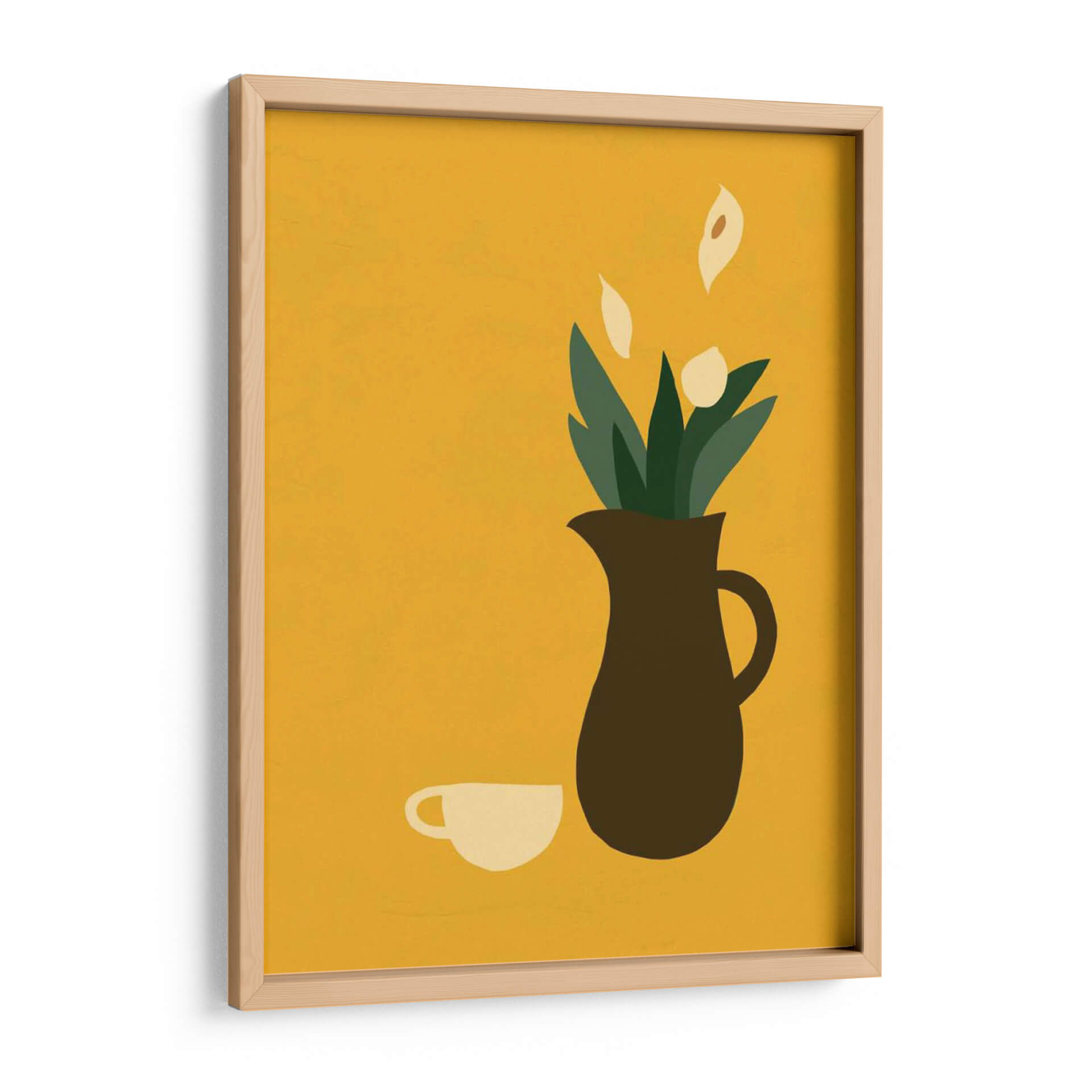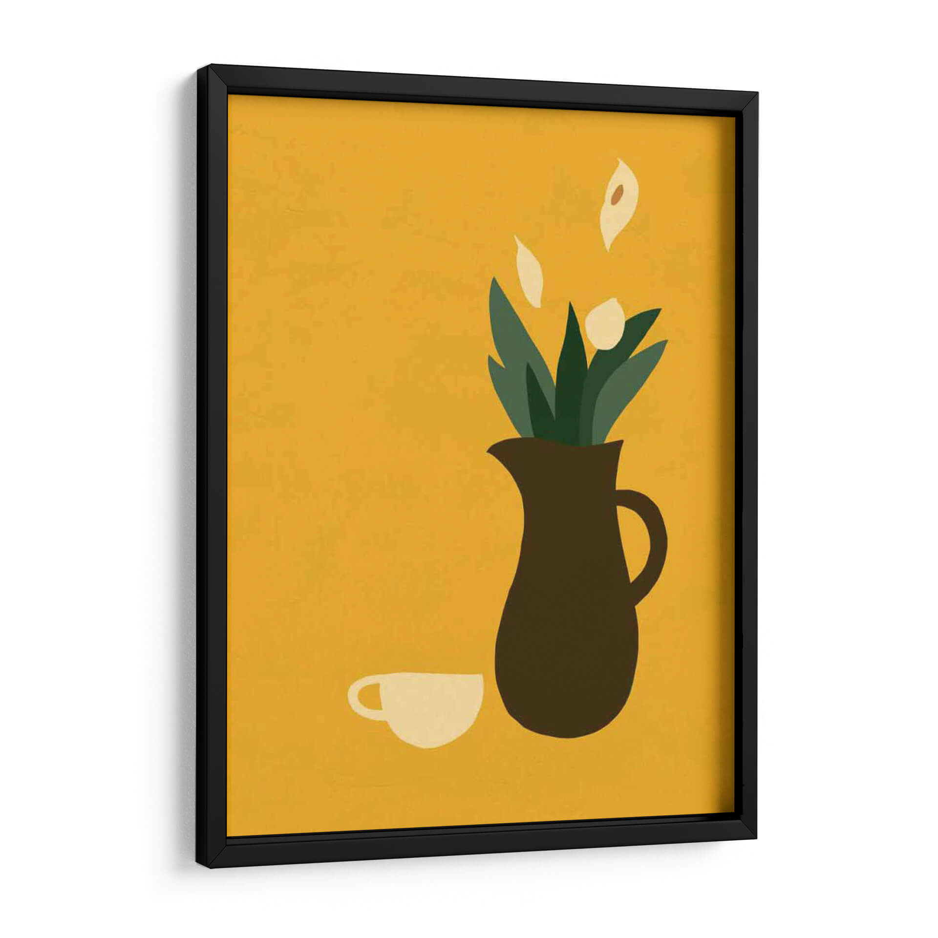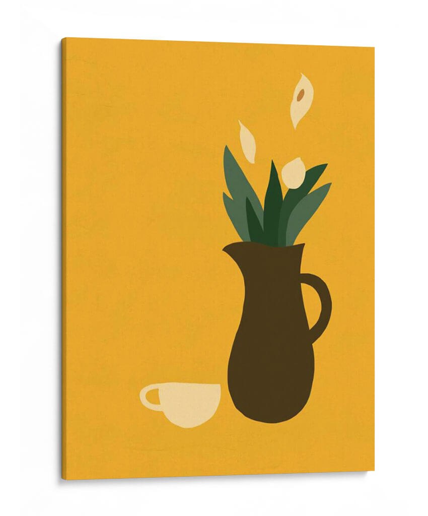Transforma tu espacio con la serena elegancia de "Mod Peace Lily I", una obra de arte contemporáneo que irradia calma y estilo minimalista. Este cuadro decorativo presenta una composición limpia y estilizada donde una jarra de tono tierra contiene delicadas flores de lirio de la paz y follaje verde, junto a una taza minimalista. La vibrante paleta de colores, dominada por un cálido fondo mostaza, crea una atmósfera acogedora y moderna, perfecta para añadir un toque de sofisticación a cualquier habitación. El estilo gráfico y las formas simplificadas de la obra la convierten en una pieza versátil, ideal para salones, comedores, oficinas o incluso dormitorios, aportando un punto focal de tranquilidad sin abrumar el espacio. "Mod Peace Lily I" no es solo una imagen, es una invitación a la contemplación y un reflejo de buen gusto, diseñada para resonar con quienes buscan arte que combine estética contemporánea con una sensación de paz interior. Añade esta pieza única a tu colección y experimenta cómo la simplicidad puede crear un impacto visual poderoso y duradero en tu decoración.