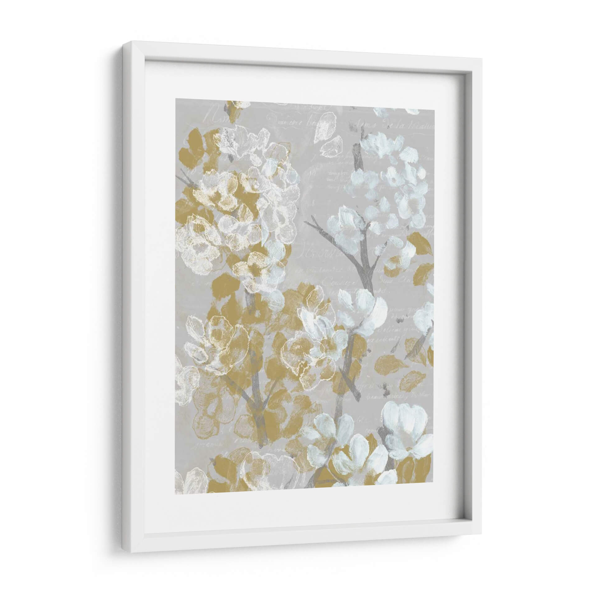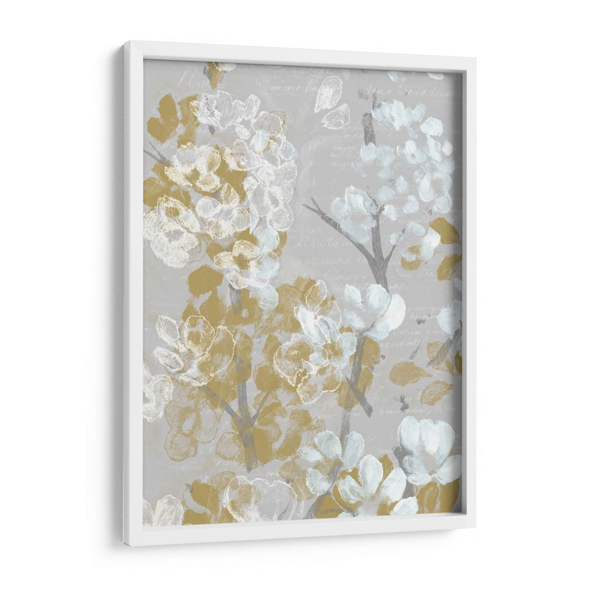 Embellece tu hogar con "Mostaza Sobre Blooms Gray Ii", una cautivadora obra de arte de Jennifer Goldberger que fusiona la delicadeza floral con un toque de sofisticación moderna. Esta pieza presenta un delicado arreglo de flores estilizadas en tonos mostaza, blanco y un suave gris azulado, contrastando elegantemente sobre un fondo texturizado con sutiles escrituras en cursiva. La composición evoca una sensación de calma y elegancia atemporal, ideal para espacios que buscan un acento sutil pero impactante. La técnica de pincelada suelta y la paleta de colores armoniosa crean una atmósfera serena y acogedora, perfecta para añadir un toque de naturaleza y arte a tu sala de estar, dormitorio o estudio. "Mostaza Sobre Blooms Gray Ii" es una elección excepcional para quienes aprecian el arte contemporáneo con influencias clásicas, aportando profundidad y carácter a cualquier decoración interior. Descubre la belleza de la floración en un lienzo que combina a la perfección el diseño moderno con una sensibilidad artística refinada, convirtiéndose en un punto focal que inspira tranquilidad y estilo.
