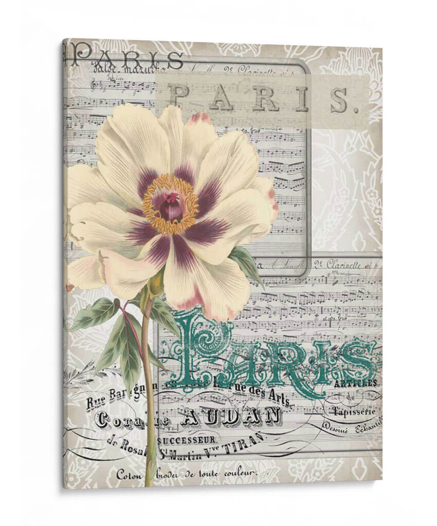 Embellece tu espacio con la delicadeza y el encanto de "Musical Paris II", una obra de arte que fusiona la elegancia floral con la nostalgia de la música parisina. Este cuadro decorativo presenta una impresionante flor de peonía en tonos crema y borgoña, capturada con un detalle exquisito y un realismo que evoca las ilustraciones botánicas clásicas. El fondo se enriquece con partituras antiguas y texturas que sugieren la atmósfera de un París romántico y bohemio, con inscripciones y tipografías vintage que añaden profundidad y carácter. La paleta de colores, dominada por tonos suaves y terrosos con toques de verde y un vibrante púrpura en el centro de la flor, crea una sensación de calma y sofisticación. Ideal para añadir un punto focal de serenidad y estilo a salones, dormitorios o estudios, este lienzo es perfecto para quienes aprecian la belleza atemporal, la música y la estética francesa. La composición equilibrada y el estilo evocador de esta pieza la convierten en una adición inspiradora a cualquier decoración contemporánea o clásica, invitando a la contemplación y transportando al espectador a un rincón de ensueño en la capital francesa. Descubre el arte que habla a tu alma y transforma tu hogar.