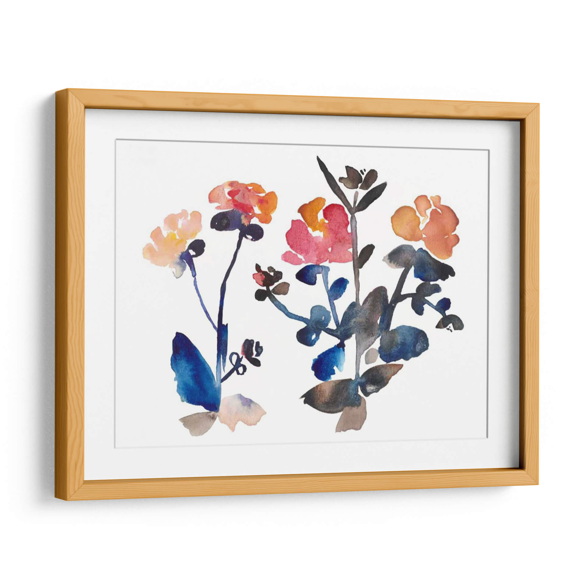 Sumérgete en la delicadeza botánica de "Nouveau Boheme III", una obra de arte contemporáneo de Kiana Mosley. Este cuadro decorativo captura la esencia de la naturaleza a través de una interpretación acuarela vibrante y etérea. Las pinceladas fluidas y los colores audaces, que van desde naranjas cálidos y rosas intensos hasta profundos azules y toques de marrón terroso, crean un contraste dinámico sobre un fondo blanco puro. La composición presenta un delicado arreglo floral, donde las formas de las flores y hojas se sugieren más que se definen, evocando una sensación de movimiento y ligereza. El estilo se inclina hacia lo abstracto-impresionista, invitando a la contemplación y la interpretación personal. "Nouveau Boheme III" es perfecto para añadir un toque de color y sofisticación a cualquier espacio, ya sea una sala de estar moderna, un dormitorio sereno o una oficina creativa. Este cuadro decorativo es una invitación a la belleza efímera de las flores, transformando tus paredes en un lienzo de expresión artística y elegancia contemporánea, ideal para quienes buscan infundir vitalidad y un aire bohemio chic en su decoración.