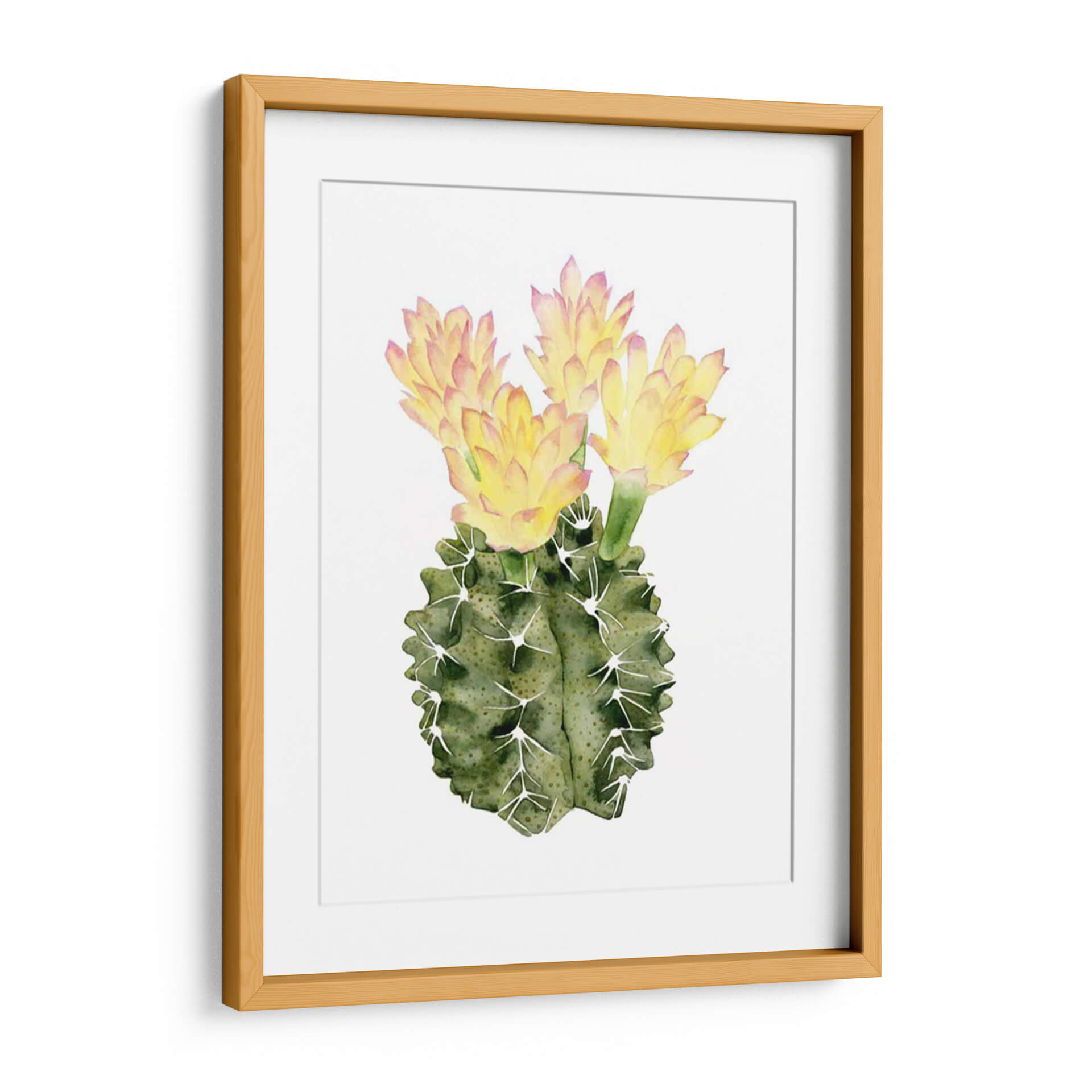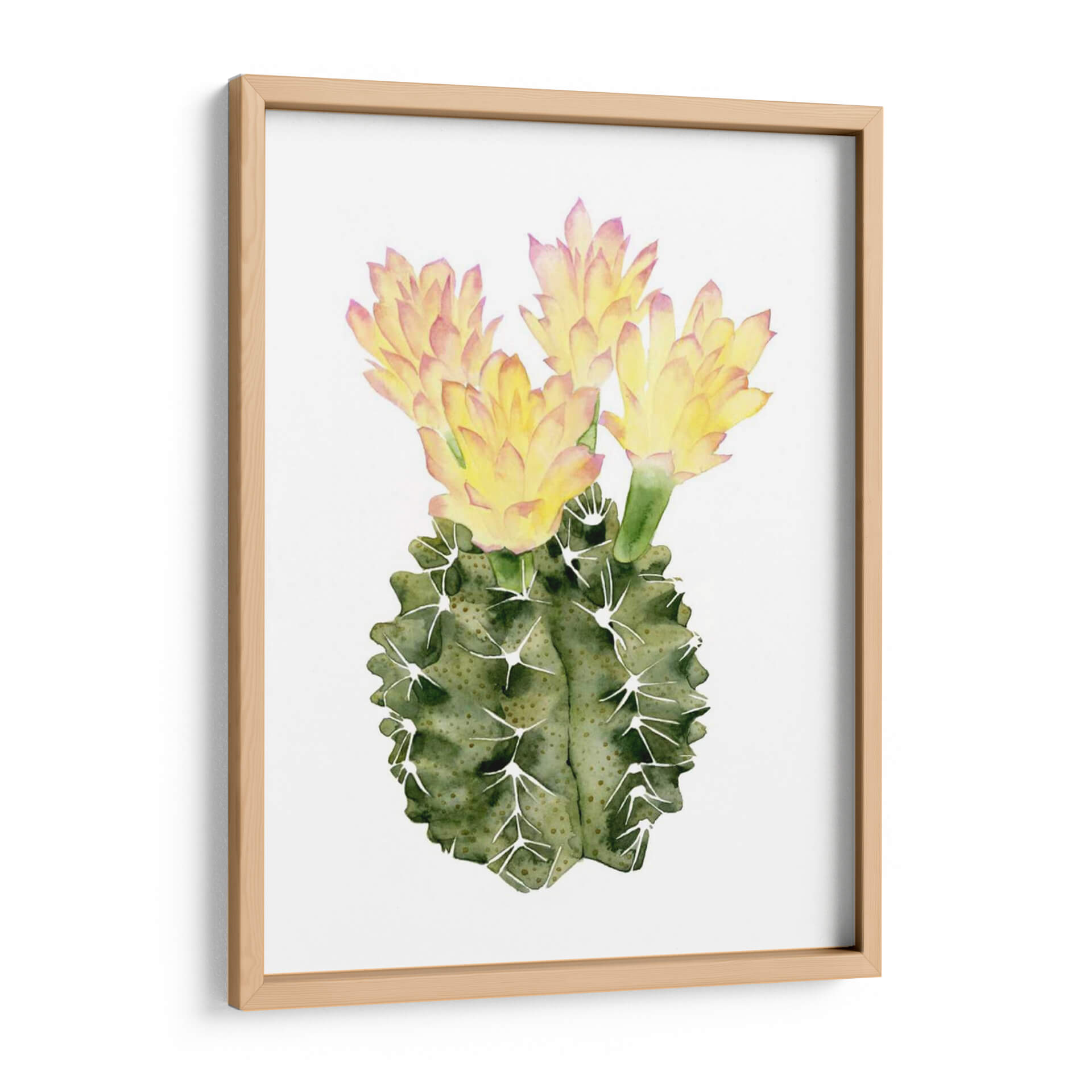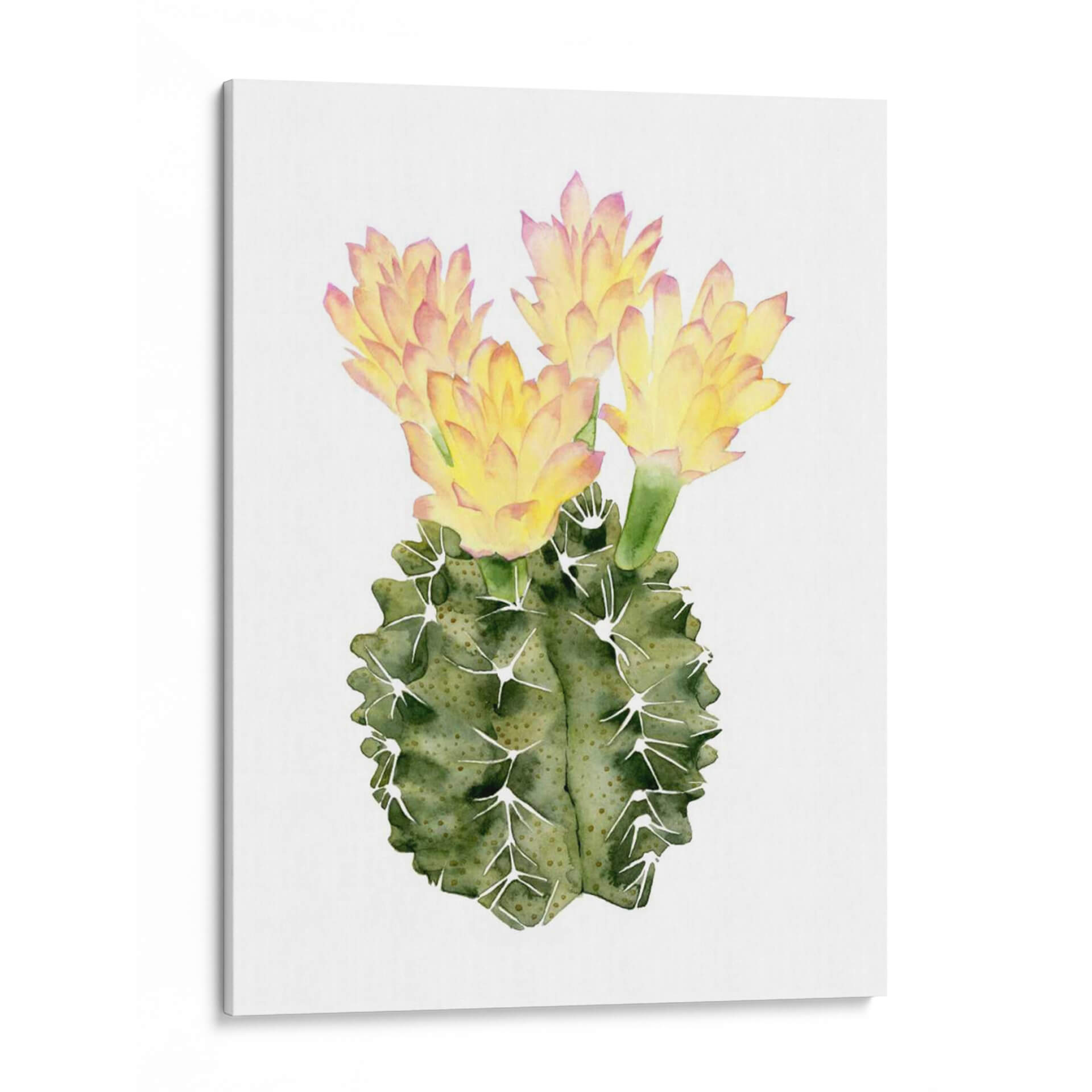 Embellece tu espacio con 'Ornamentale II', una cautivadora obra de arte de Grace Popp que celebra la belleza delicada de la naturaleza. Este cuadro decorativo presenta un cactus vibrante en plena floración, capturado con la suavidad y el detalle característicos de la técnica de acuarela. Los tonos verdes profundos del cactus contrastan maravillosamente con los pétalos amarillos y rosados de sus flores, creando una composición visualmente atractiva y llena de vida. La pureza del fondo blanco resalta la figura central, permitiendo que cada pincelada transmita una sensación de calma y serenidad. Ideal para añadir un toque de frescura botánica a cualquier habitación, desde una sala de estar moderna hasta un tranquilo dormitorio o una oficina inspiradora. "Ornamentale II" no es solo una pieza decorativa, sino una ventana a la exuberancia y la resiliencia de la naturaleza, perfecta para quienes buscan un arte que eleve el espíritu y añada un toque orgánico a su decoración. Descubre la armonía y la elegancia que esta acuarela aportará a tu hogar, convirtiéndose en un punto focal de conversación y admiración.