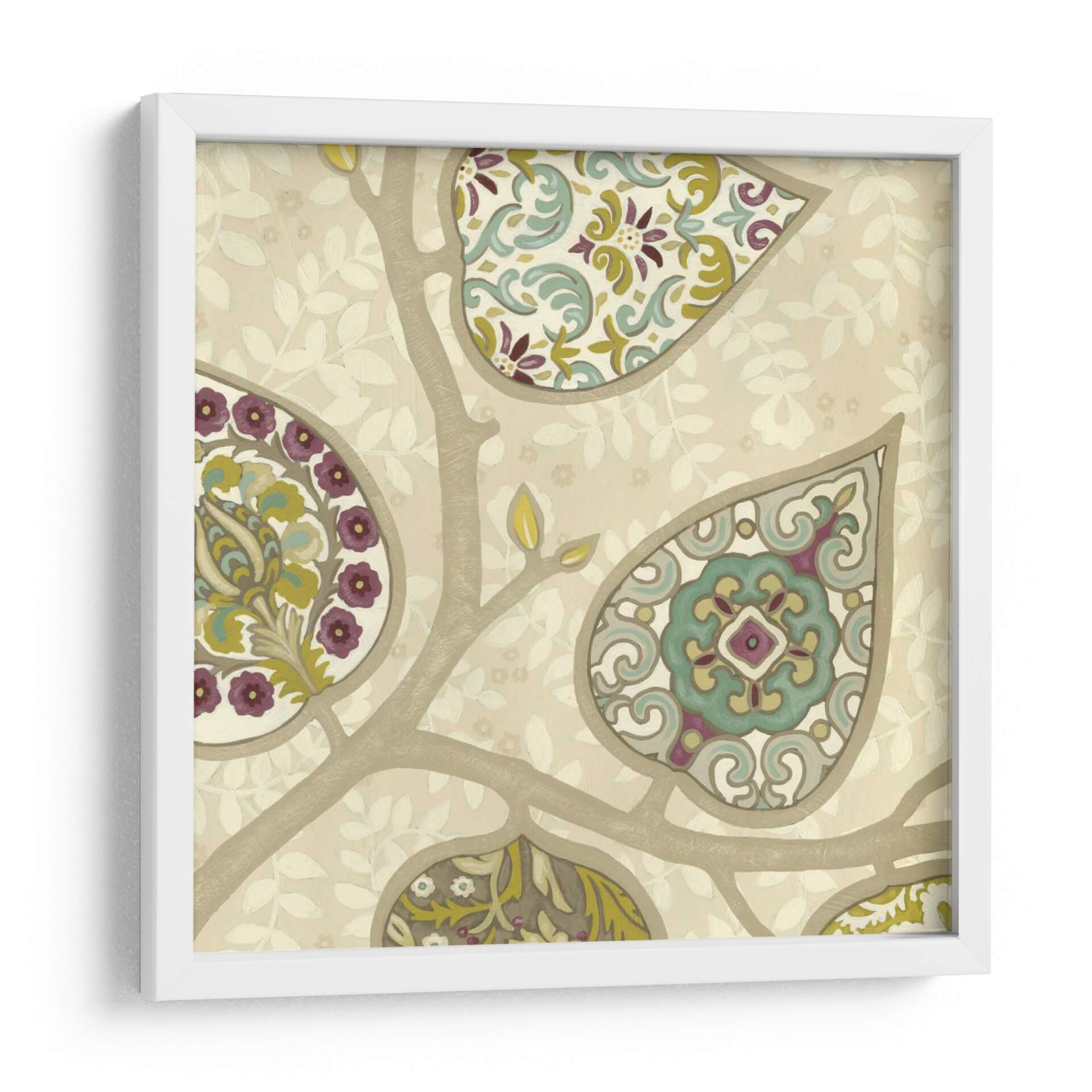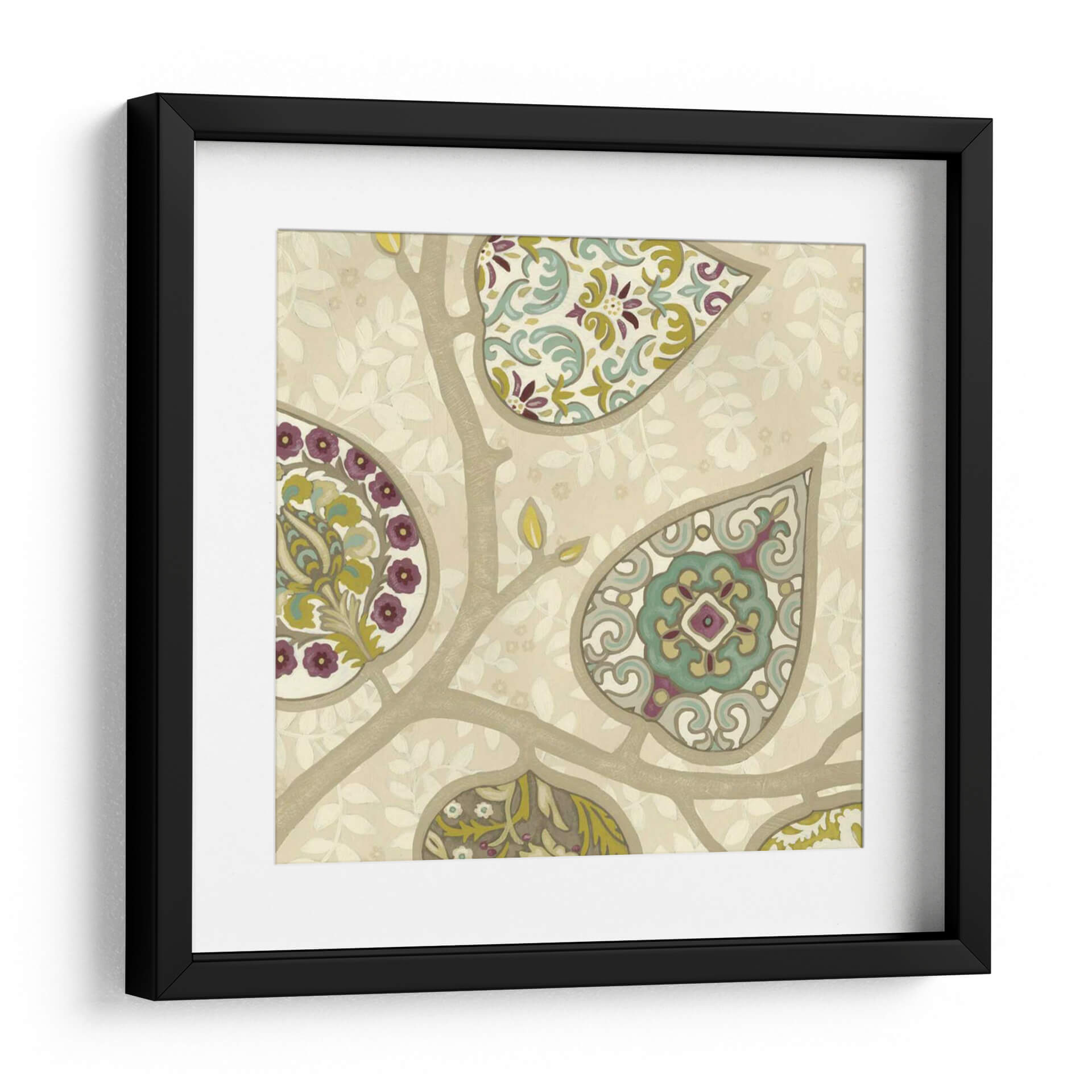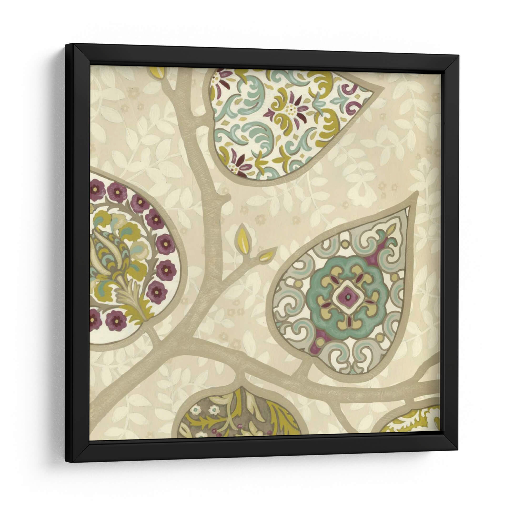 Sumérgete en la serenidad botánica con "Patrones En Follaje Iii", una obra de arte digital que evoca la delicadeza de la naturaleza a través de intrincados diseños inspirados en la flora. Esta pieza presenta un patrón ornamental que se despliega sobre un fondo suave y neutro, creando una atmósfera de calma y sofisticación. Las hojas, representadas con un estilo que recuerda a los motivos de estilo damasceno o paisley, están adornadas con arabescos y flores estilizadas en una paleta de colores terrosos, verdes azulados y toques de borgoña. Las ramas, delineadas con trazos sutiles, conectan estas formas orgánicas, aportando estructura a la composición. La obra irradia una sensación de paz y equilibrio, siendo ideal para añadir un toque de elegancia orgánica a cualquier espacio, desde una sala de estar acogedora hasta un sereno dormitorio o un estudio tranquilo. "Patrones En Follaje Iii" es una invitación a la contemplación, transformando tus paredes en un lienzo de arte contemporáneo que inspira y relaja, perfecto para quienes buscan una decoración de pared con un toque de diseño clásico reinventado y una conexión sutil con la belleza natural. Un cuadro decorativo que aporta un aire de refinamiento atemporal a tu hogar.
