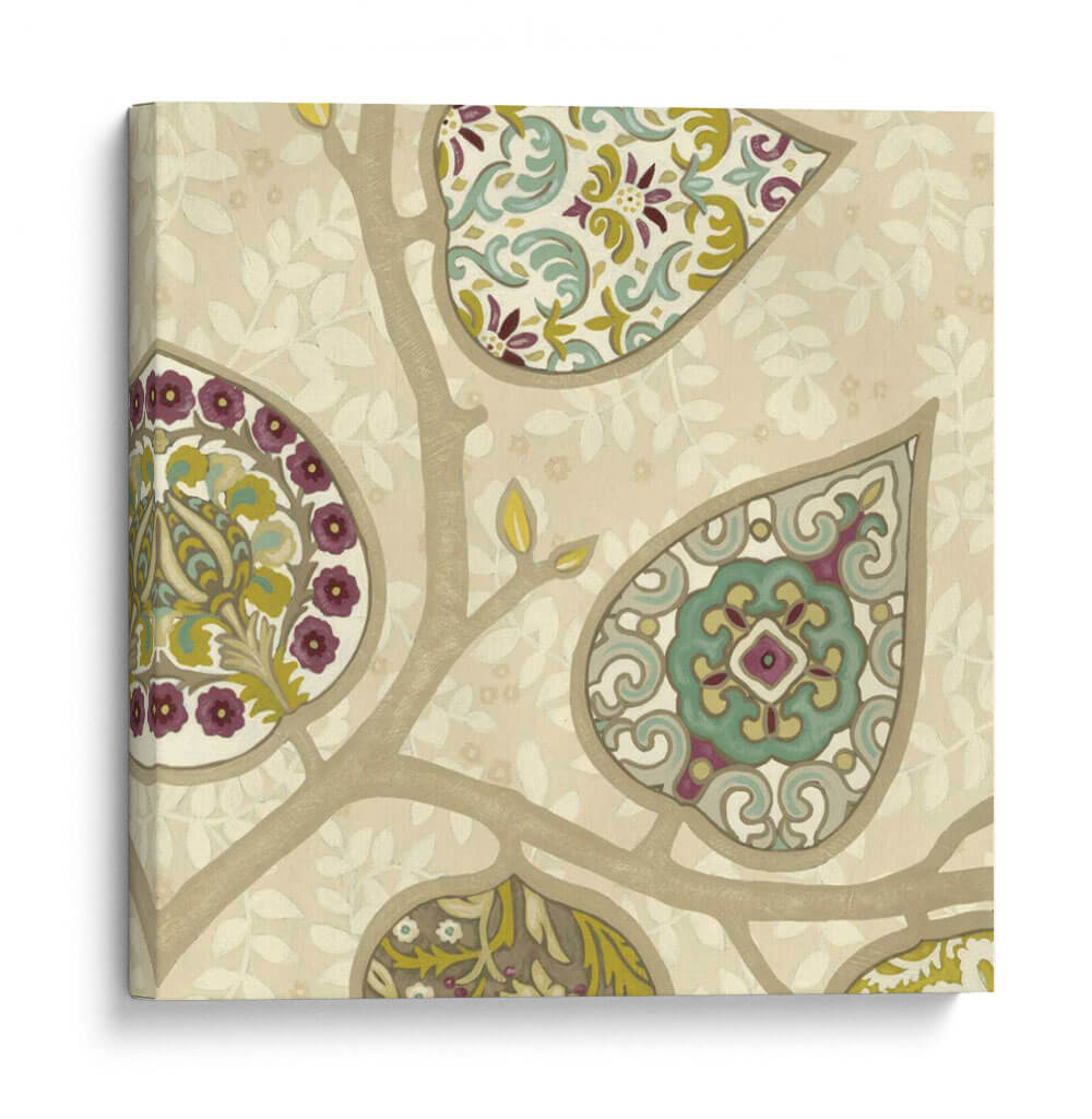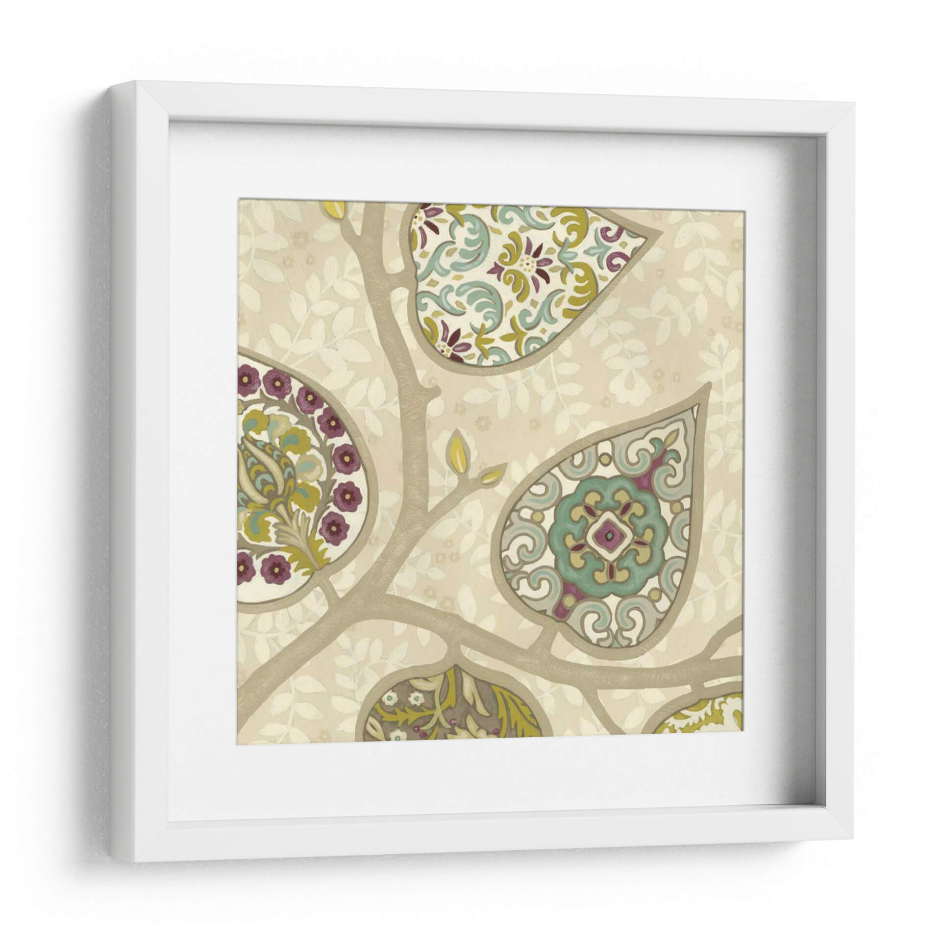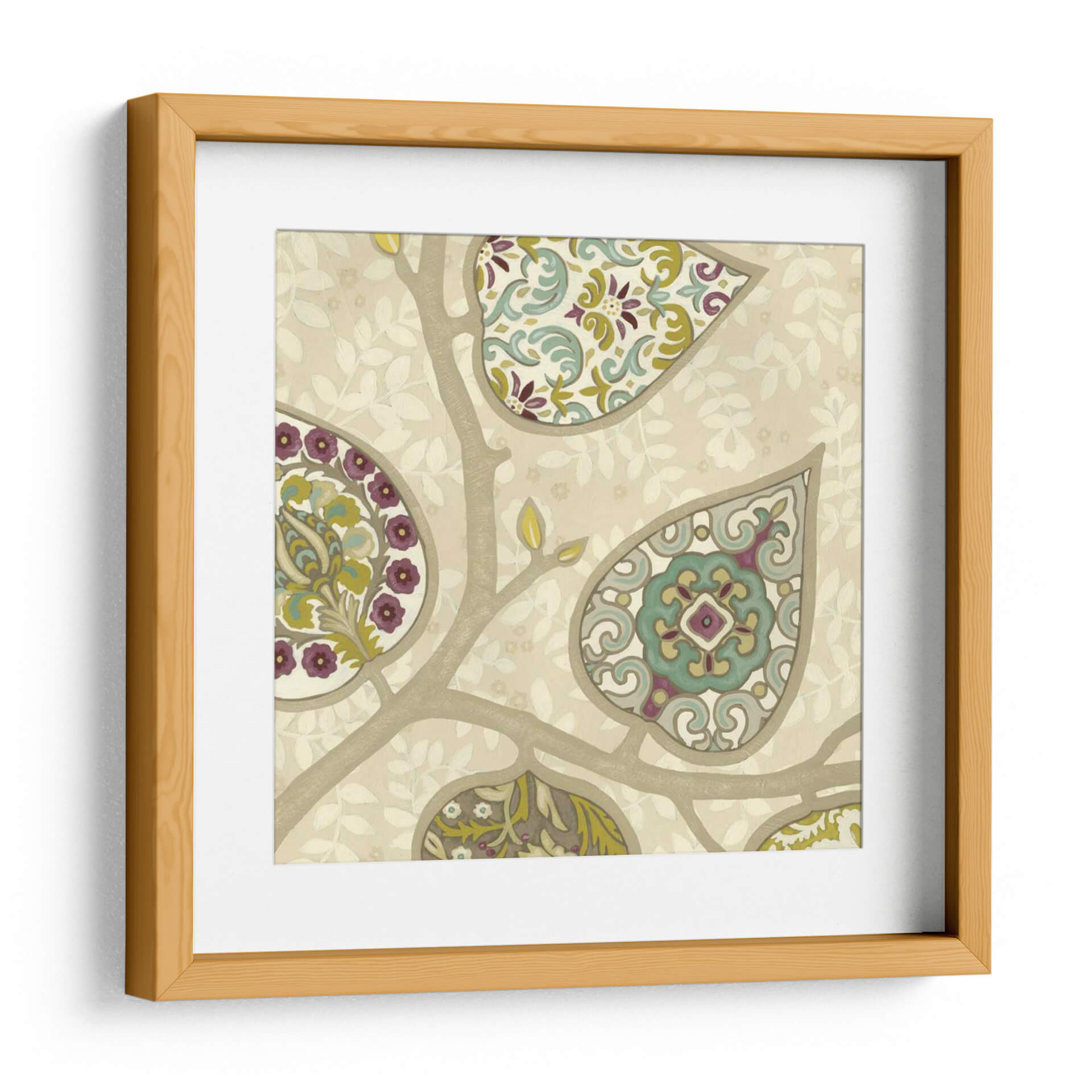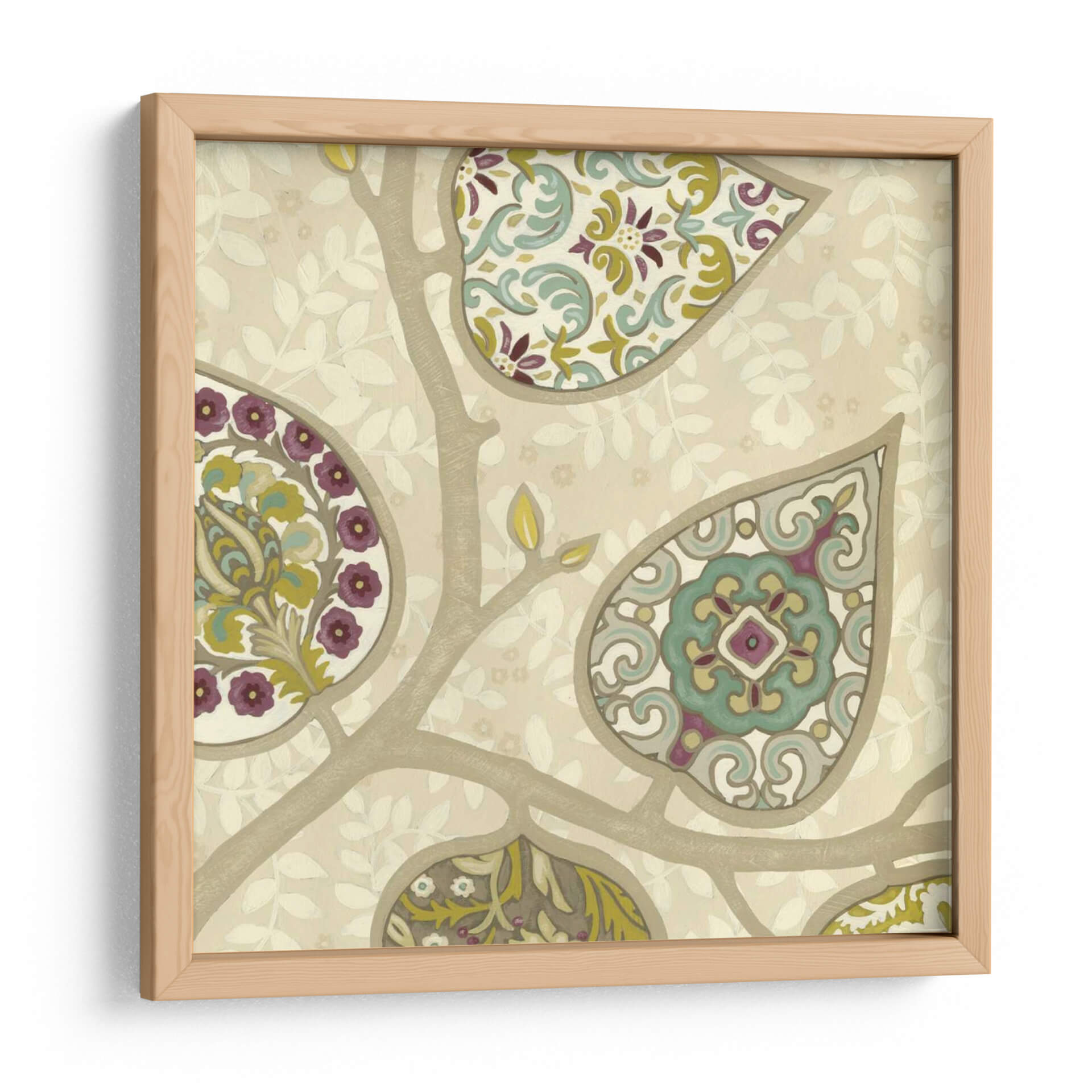 Sumérgete en la serenidad botánica con "Patrones En Follaje Iii", una obra de arte digital que evoca la delicadeza de la naturaleza a través de intrincados diseños inspirados en la flora. Esta pieza presenta un patrón ornamental que se despliega sobre un fondo suave y neutro, creando una atmósfera de calma y sofisticación. Las hojas, representadas con un estilo que recuerda a los motivos de estilo damasceno o paisley, están adornadas con arabescos y flores estilizadas en una paleta de colores terrosos, verdes azulados y toques de borgoña. Las ramas, delineadas con trazos sutiles, conectan estas formas orgánicas, aportando estructura a la composición. La obra irradia una sensación de paz y equilibrio, siendo ideal para añadir un toque de elegancia orgánica a cualquier espacio, desde una sala de estar acogedora hasta un sereno dormitorio o un estudio tranquilo. "Patrones En Follaje Iii" es una invitación a la contemplación, transformando tus paredes en un lienzo de arte contemporáneo que inspira y relaja, perfecto para quienes buscan una decoración de pared con un toque de diseño clásico reinventado y una conexión sutil con la belleza natural. Un cuadro decorativo que aporta un aire de refinamiento atemporal a tu hogar.