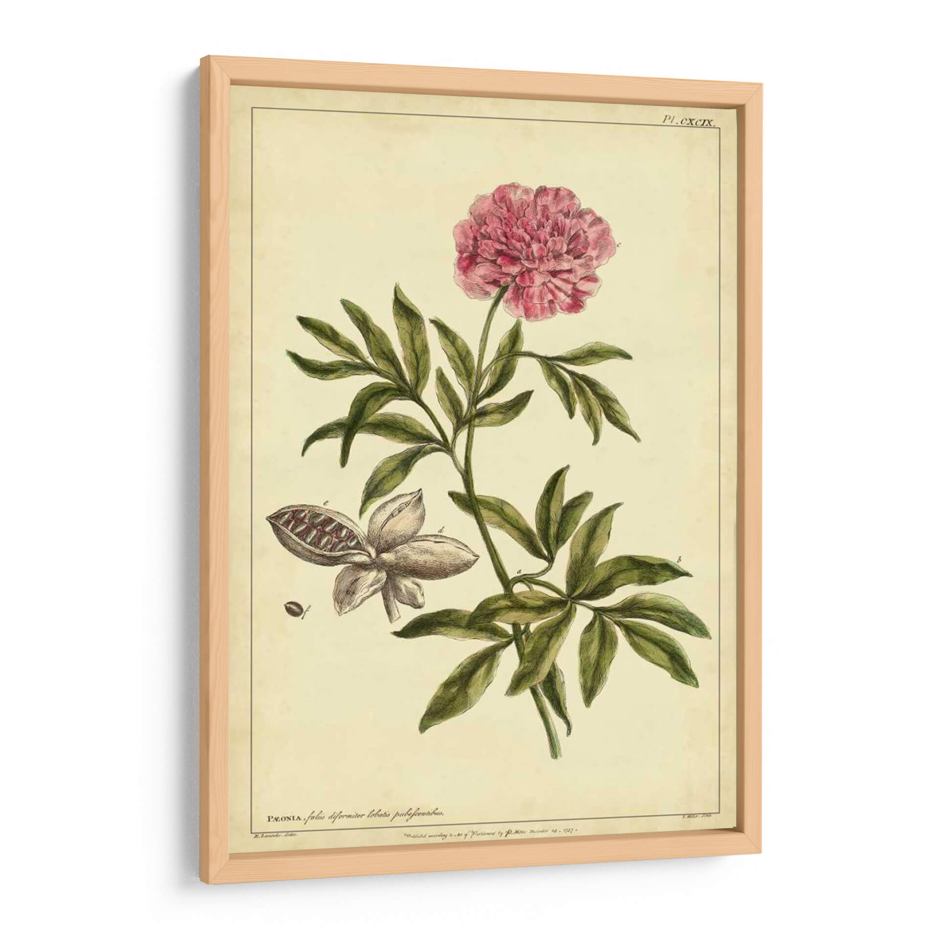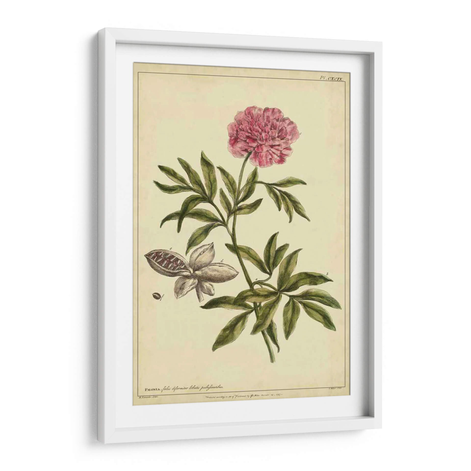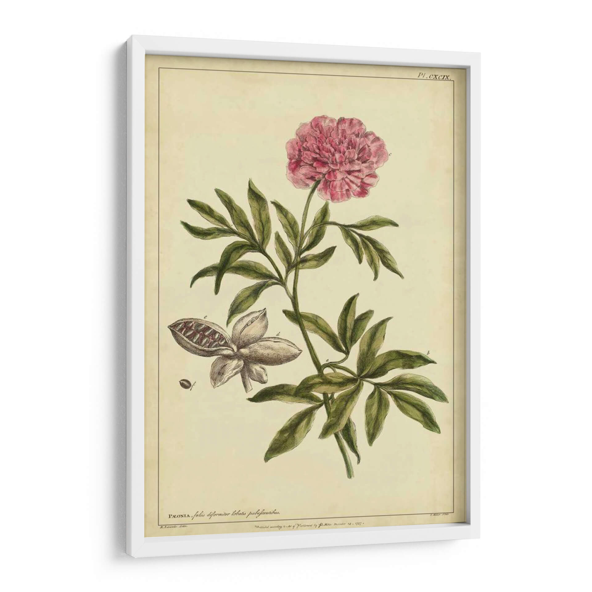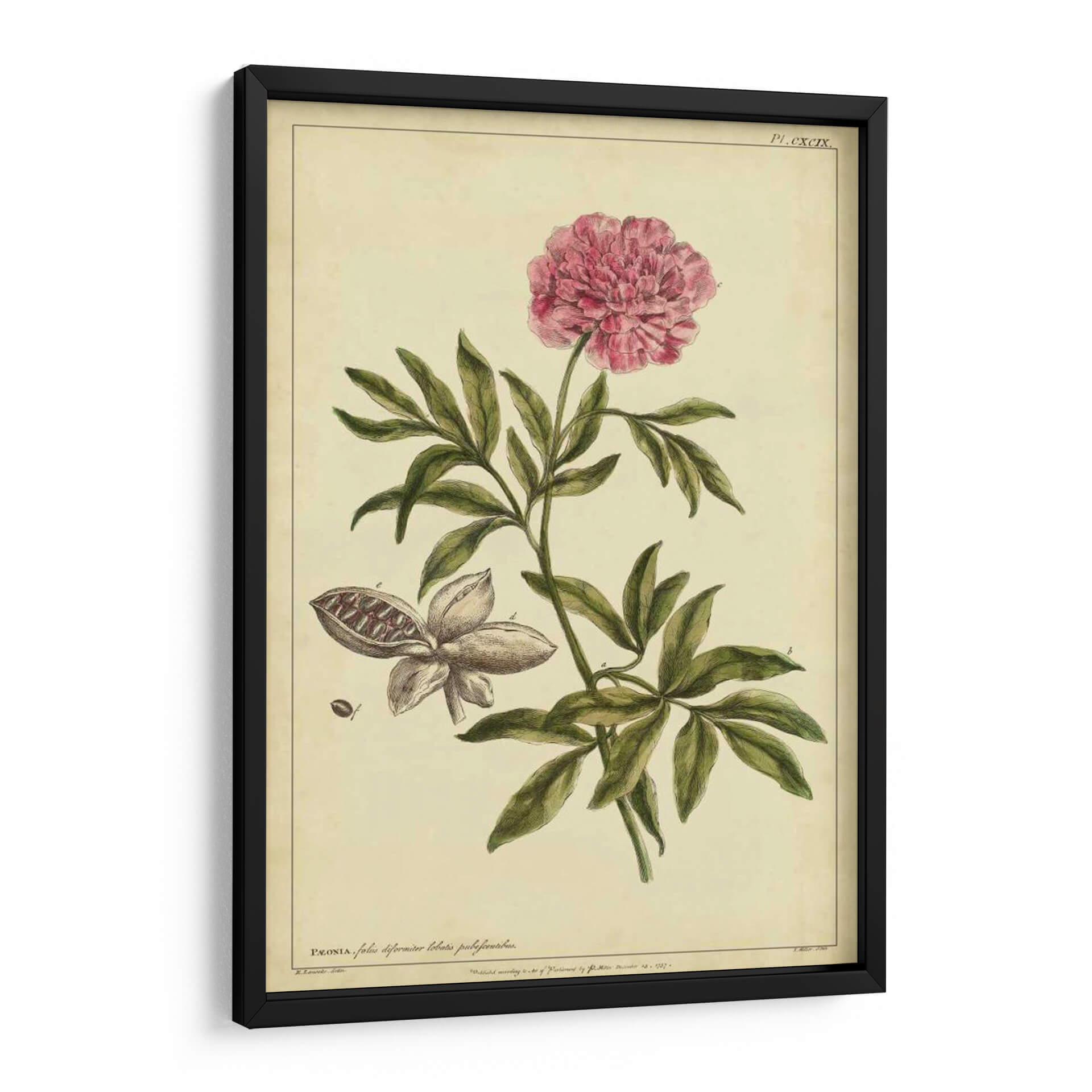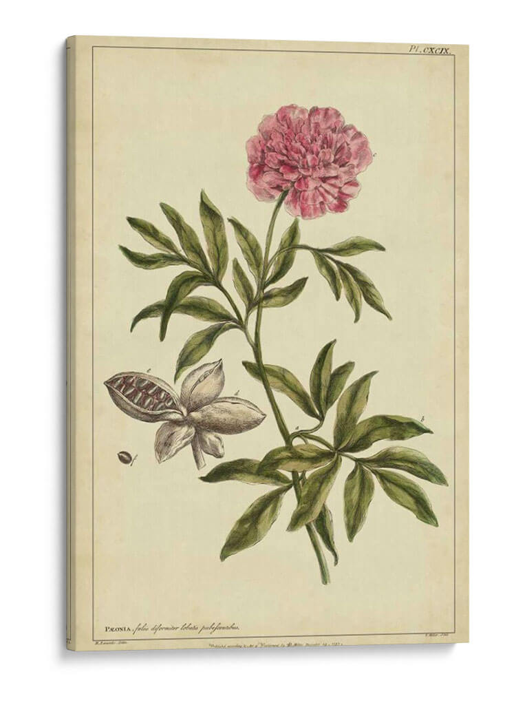 Sumérgete en la delicadeza botánica con este exquisito cuadro decorativo de una peonía, extraído de la obra "Peonía, Pl. Cxcix" del artista Philip Miller. Esta pieza evoca la elegancia atemporal de las ilustraciones científicas clásicas, presentando una peonía en plena floración con sus pétalos rosados vibrantes y una detallada representación de sus hojas y vaina de semillas. La paleta de colores, dominada por tonos cremas y verdes sutiles, junto con el acento rosado de la flor, crea una atmósfera de serenidad y sofisticación. Su estilo, reminiscent de láminas botánicas antiguas, añade un toque de historia y cultura a cualquier espacio. Ideal para quienes buscan infundir calma y belleza natural en su hogar u oficina, este cuadro decorativo se integra a la perfección en ambientes clásicos, rústicos o incluso modernos, aportando un punto de interés visual y una conexión con la naturaleza. Descubre la maestría artística de Philip Miller y transforma tu pared en una galería de arte botánico.