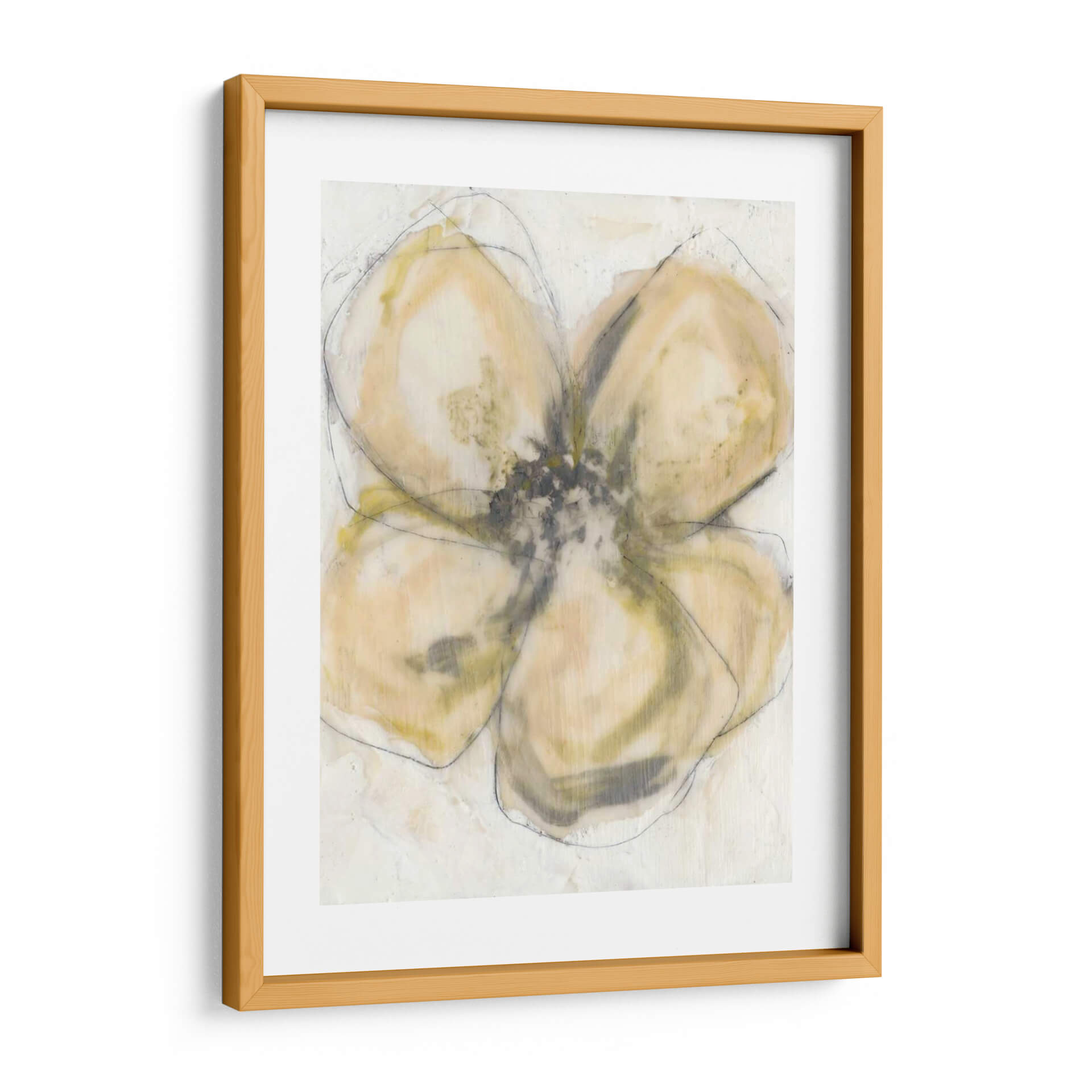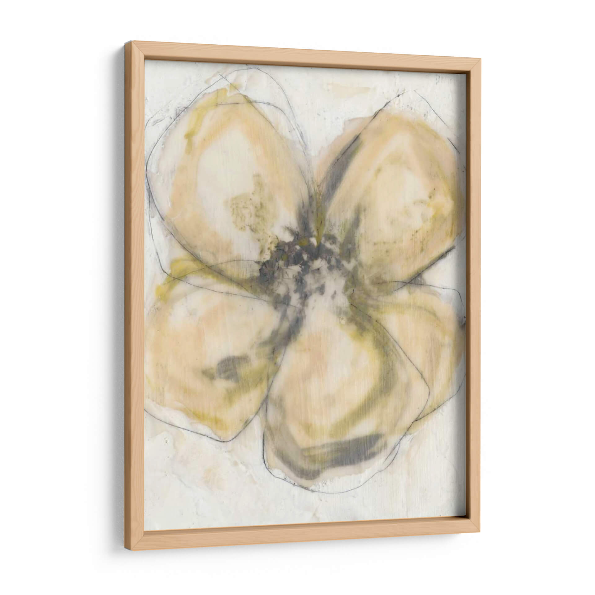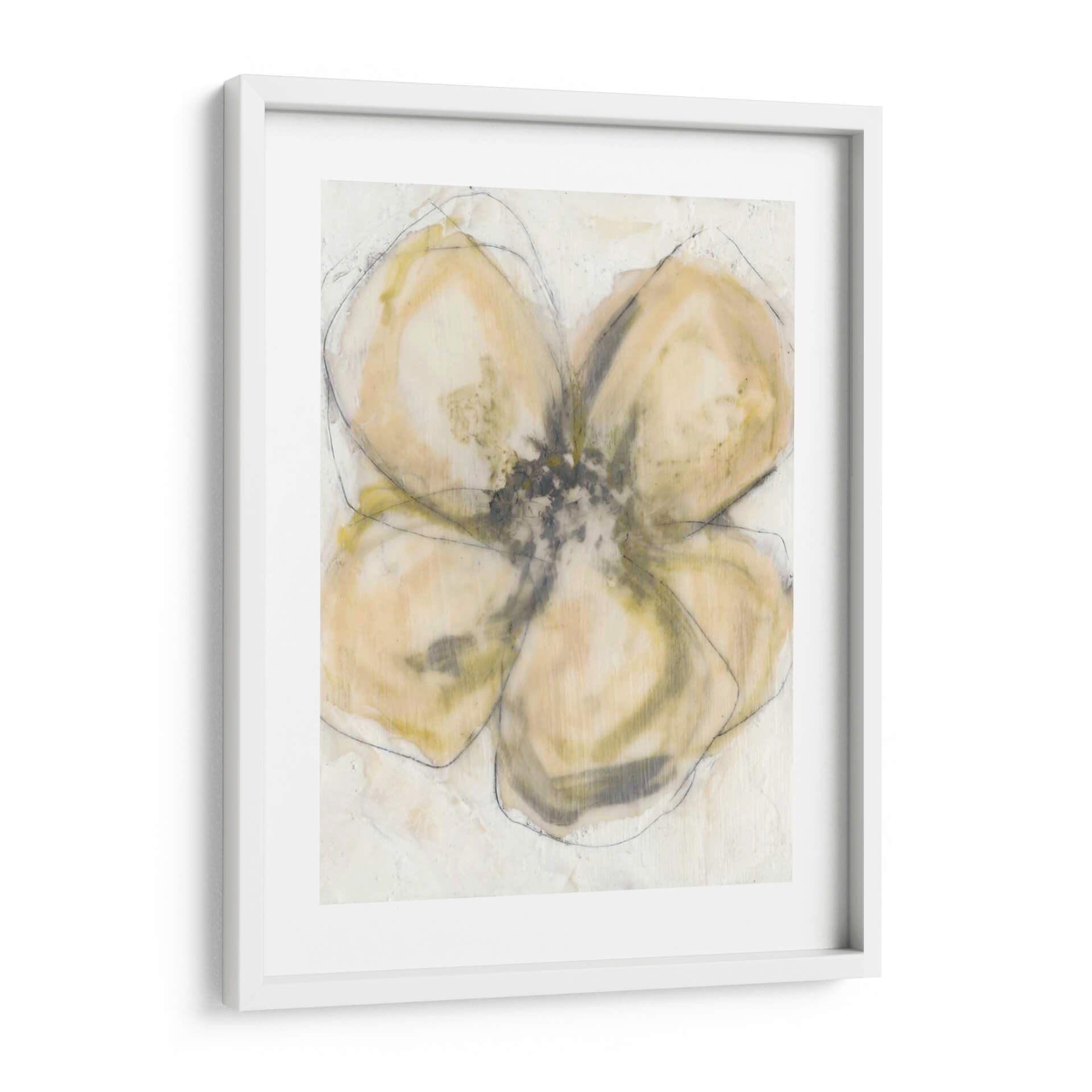 Transforma tu espacio con "Pétalos De Cera II", una cautivadora obra de arte contemporáneo de Jennifer Goldberger. Esta pieza evoca la delicadeza de la naturaleza a través de una interpretación abstracta y etérea. La paleta de colores, dominada por suaves tonos de beige, ocre y toques sutiles de verde grisáceo, crea una atmósfera de serenidad y calidez, perfecta para cualquier rincón del hogar u oficina. Las pinceladas sueltas y la técnica mixta, combinada con trazos de contorno a lápiz, aportan textura y profundidad, invitando a una contemplación pausada. "Pétalos De Cera II" es más que una simple decoración de pared; es una expresión artística que dialoga con la luz y la sombra, aportando un toque de sofisticación orgánica a ambientes modernos, minimalistas o bohemios. Ideal para quienes buscan añadir un elemento de calma y belleza sutil a su decoración, esta obra se convertirá en el punto focal de tu sala de estar, dormitorio o estudio, fusionándose armoniosamente con tu estilo personal y ofreciendo una ventana a la expresión artística moderna. Descubre la elegancia discreta de esta pieza única que inspira tranquilidad y eleva tu ambiente.