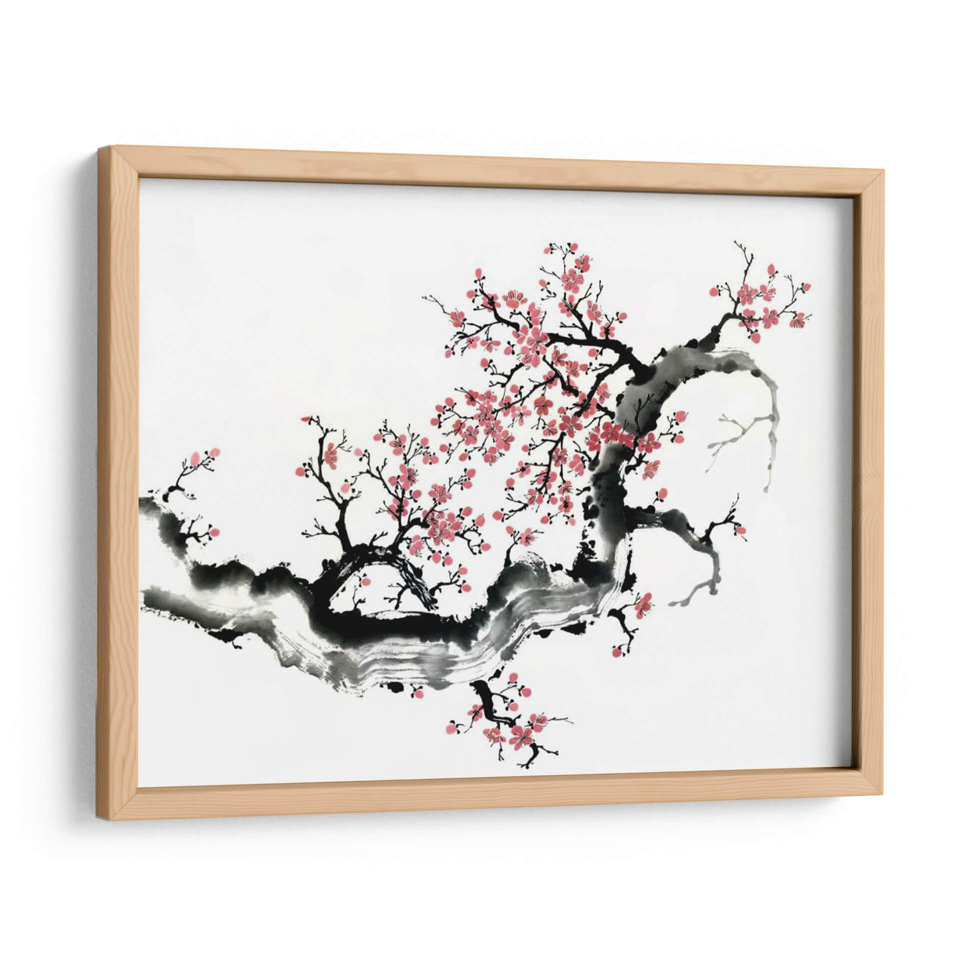 Embárcate en un viaje visual con "Plum Blossom Branch III", una obra de arte que captura la efímera belleza de la primavera. Esta pieza, inspirada en la delicadeza de las flores de cerezo, presenta una rama robusta y texturizada en tonos de tinta china, contrastando armoniosamente con las vibrantes flores rosadas que la adornan. El estilo, que evoca la pintura tradicional asiática, utiliza pinceladas audaces y fluidas para crear un efecto dinámico y a la vez sereno. La composición minimalista, con un fondo blanco puro, permite que la rama y sus flores sean el foco absoluto, invitando a la contemplación y la calma. Es un cuadro decorativo ideal para añadir un toque de elegancia y serenidad a cualquier espacio, ya sea una sala de estar moderna, un sereno dormitorio o un espacio de oficina que busque inspiración. Transmite una sensación de renovación y esperanza, perfecta para quienes aprecian la sutileza y la profundidad en el arte decorativo de pared. Añade esta pieza única a tu colección y permite que su delicada elegancia florezca en tu hogar.
