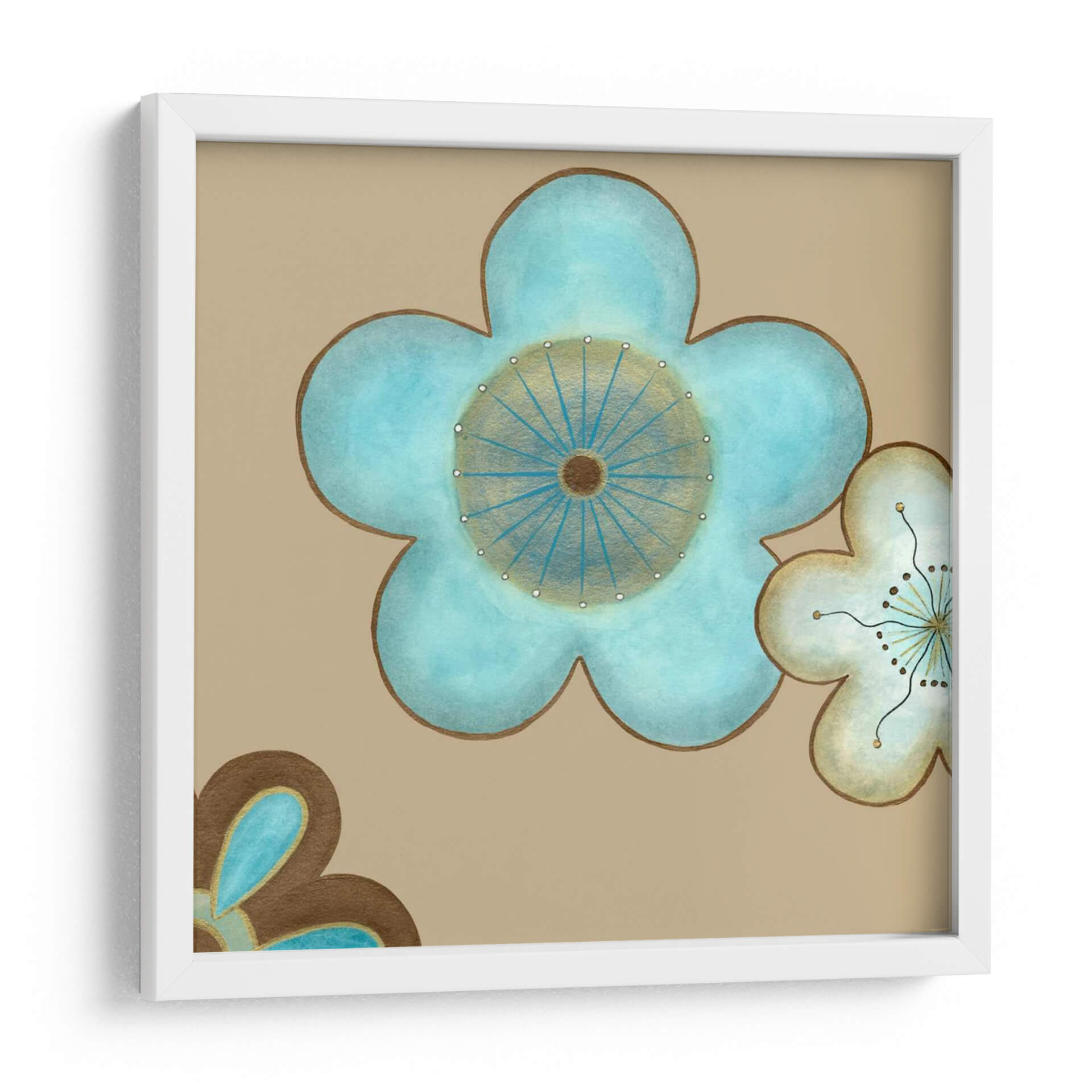 Embellece tu espacio con el encanto sereno de "Pop Flores En Azul II", una obra de arte contemporáneo que evoca la delicadeza de la naturaleza con un toque moderno. Esta pieza presenta dos flores estilizadas en tonos azules y blancos, contrastando armoniosamente sobre un fondo cálido color canela. Los detalles dorados y las líneas finas en el centro de las flores añaden un toque de sofisticación y brillo sutil, creando un punto focal cautivador. El diseño, con sus contornos suaves y paleta de colores tranquilizadora, se inspira en formas florales orgánicas pero las reinterpreta con una estética limpia y gráfica. Es ideal para añadir una nota de color y vitalidad a cualquier habitación, desde salones y comedores hasta dormitorios o estudios. "Pop Flores En Azul II" es más que un simple cuadro decorativo; es una invitación a la contemplación y una expresión de estilo personal que aportará una atmósfera de calma y elegancia a tu hogar u oficina, complementando una amplia gama de estilos decorativos, desde el minimalista hasta el bohemio.