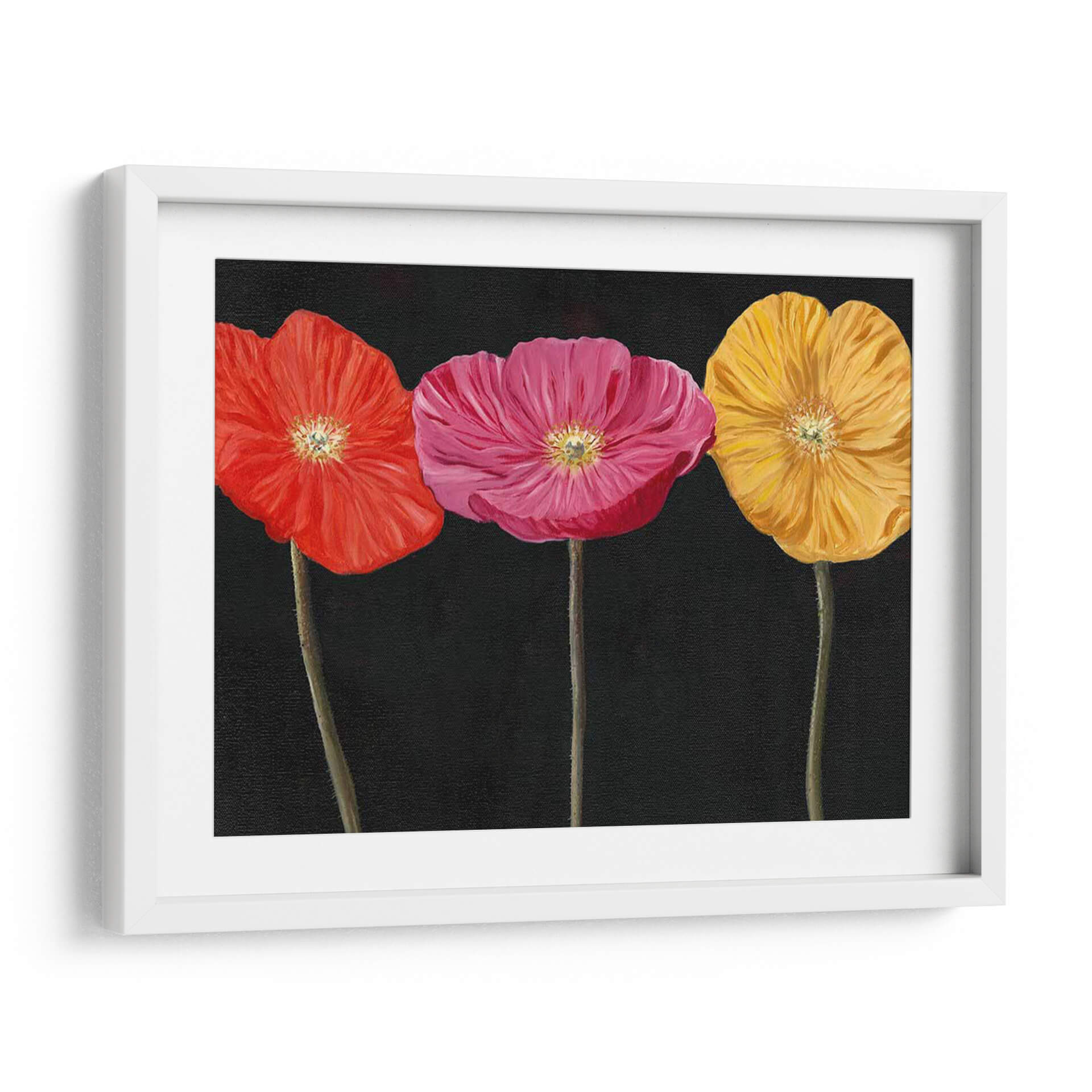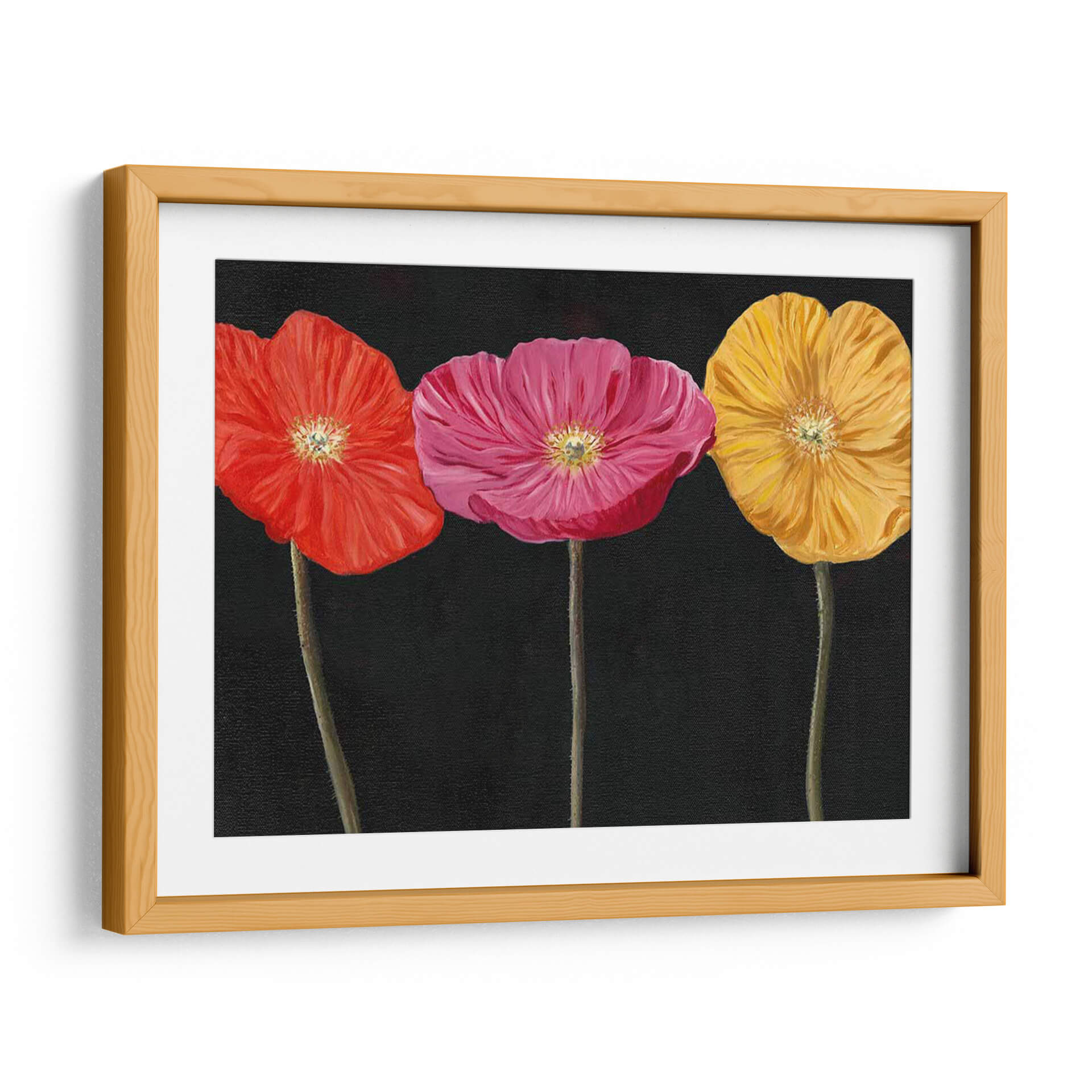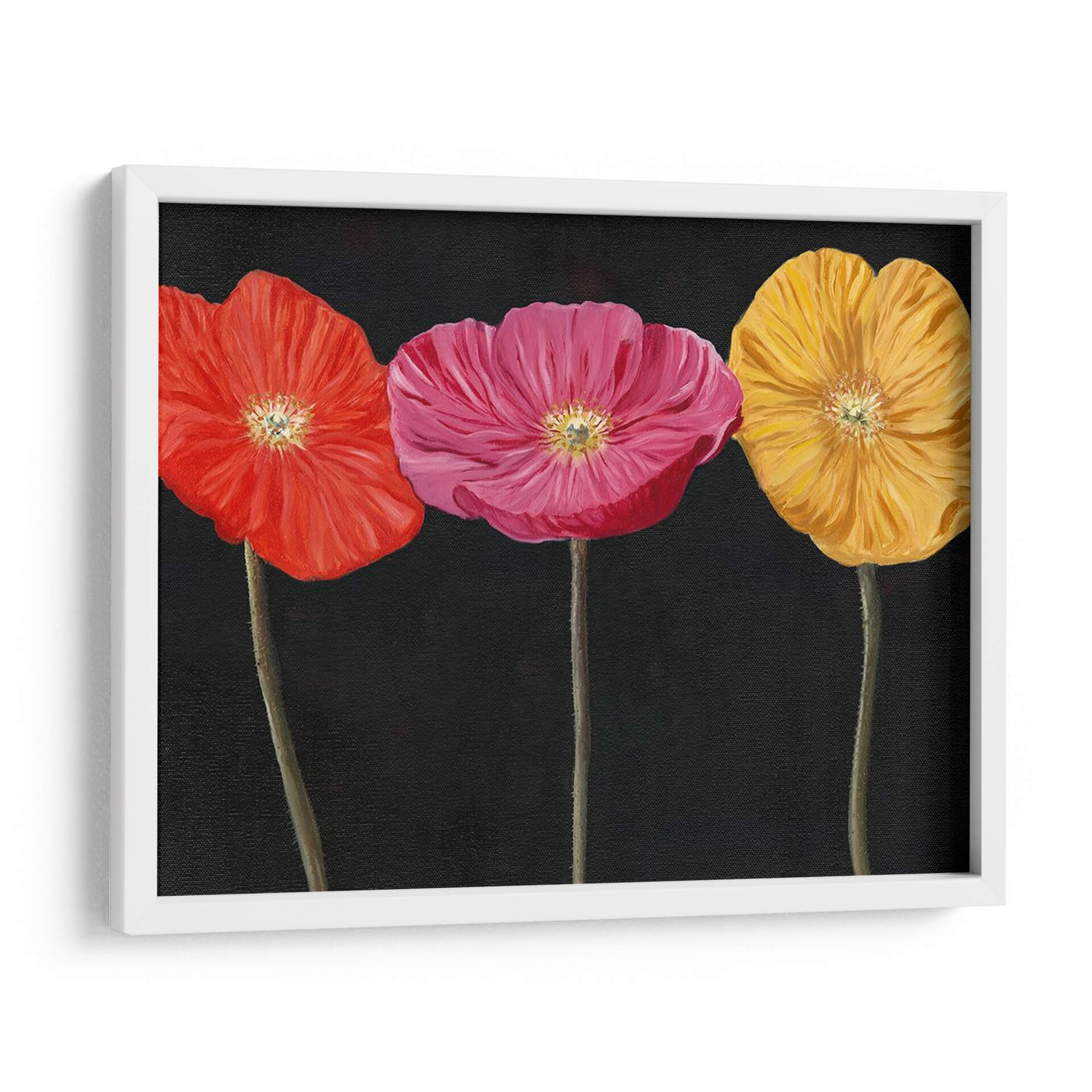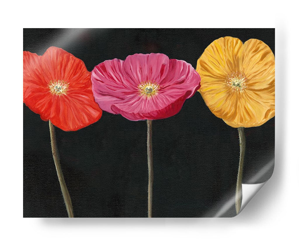 Celebra la belleza vibrante de la naturaleza con "Poppy Trio II", una obra de arte contemporáneo que captura tres amapolas en plena floración. El artista Christopher J. Trew ha creado una composición impactante donde las flores, en tonos rojos, rosas y amarillos intensos, destacan sobre un fondo oscuro y profundo. Cada pétalo está pintado con detalle, transmitiendo una sensación de textura y delicadeza, mientras que los pistilos centrales emiten una luz sutil. Este cuadro decorativo es una explosión de color y vida, ideal para añadir un toque de alegría y sofisticación a cualquier espacio. Su estilo realista con toques modernos lo hace perfecto para salones contemporáneos, recibidores o incluso estudios de moda y belleza. La simplicidad de la composición, centrada en la fuerza individual de cada amapola, permite que la obra sea un punto focal cautivador sin abrumar el entorno. "Poppy Trio II" no es solo una pieza decorativa, sino una invitación a apreciar la efímera perfección de las flores, añadiendo un elemento de serenidad y optimismo a tu hogar u oficina. Su versatilidad cromática le permite integrarse con facilidad en diversas paletas de decoración, desde ambientes neutros hasta espacios más audaces.