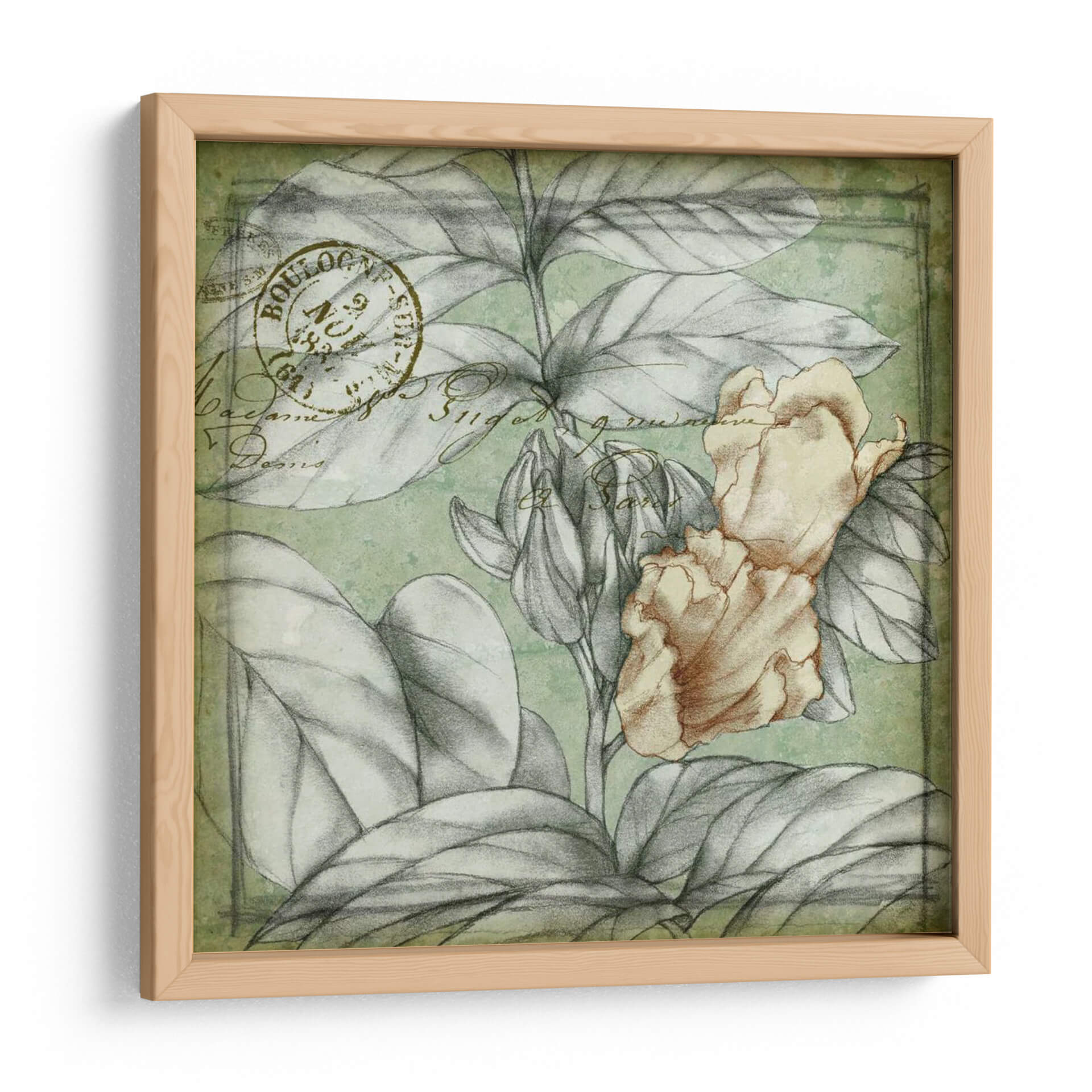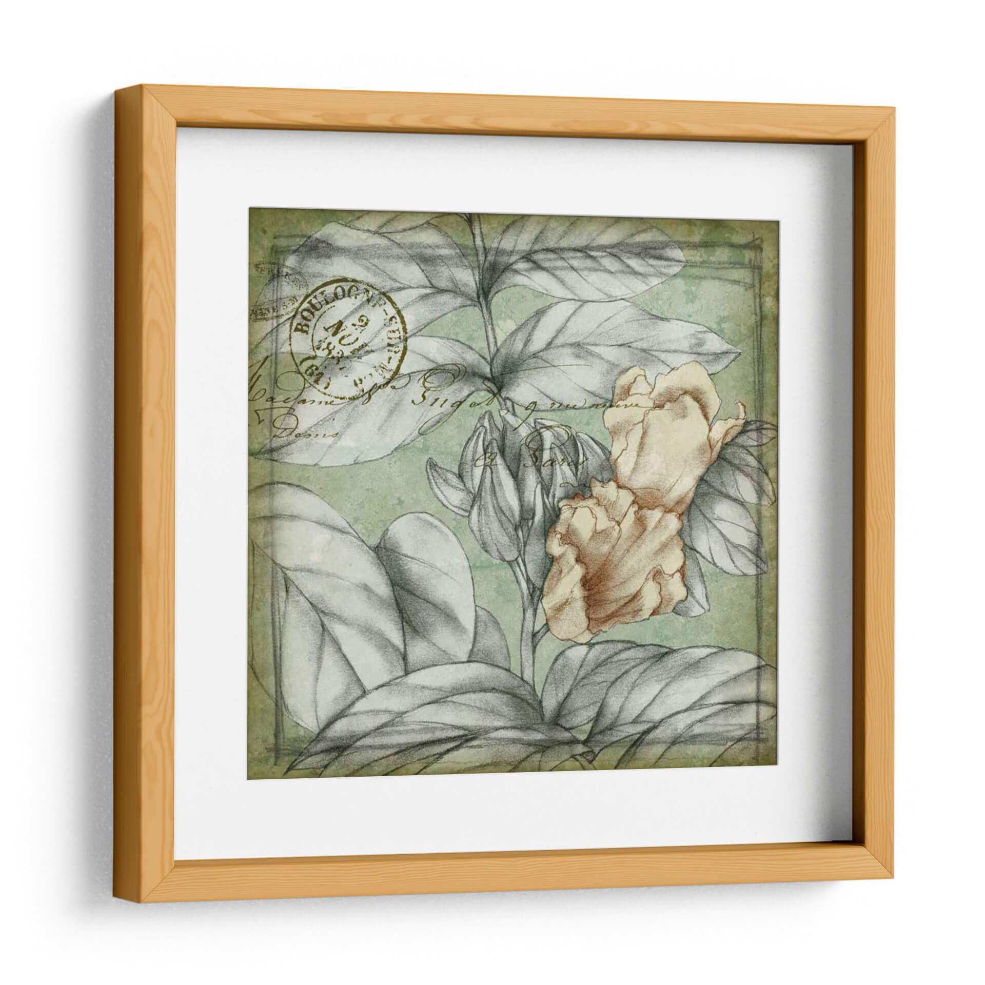 Adéntrate en la serena belleza de "Postellamhart Proopicals Iii", una cautivadora obra de arte de Jennifer Goldberger que evoca un encanto botánico vintage. Esta pieza presenta un delicado estudio de flores tropicales y follaje exuberante, renderizado con un estilo que recuerda a las ilustraciones botánicas clásicas. La paleta de colores, dominada por suaves tonos verdosos y acentos terrosos en las flores, crea una atmósfera de tranquilidad y nostalgia. Las líneas detalladas a lápiz y la sutil textura reminiscente de escritos antiguos y sellos postales añaden una capa de profundidad y sofisticación, transportándote a un jardín atemporal. Este cuadro decorativo es perfecto para añadir un toque de elegancia natural y un aire de ensueño a cualquier habitación. Imagina esta obra como un punto focal inspirador en tu sala de estar, un toque de serenidad en tu dormitorio o un elemento de calma refinada en tu estudio. "Postellamhart Proopicals Iii" es más que una simple decoración; es una invitación a la contemplación y un homenaje a la delicadeza de la naturaleza capturada a través de una visión artística contemporánea.