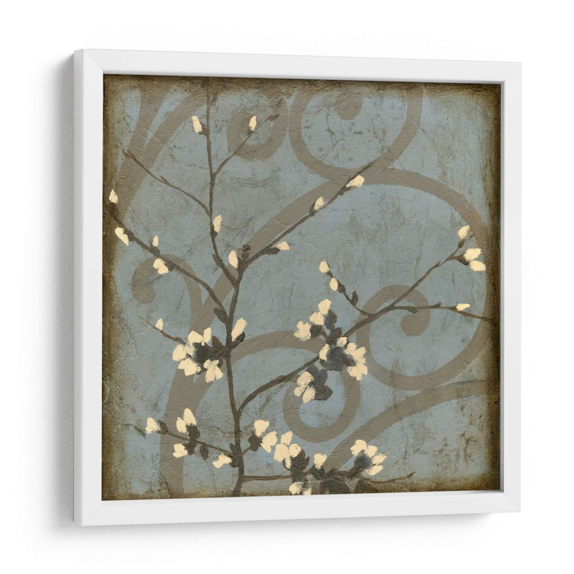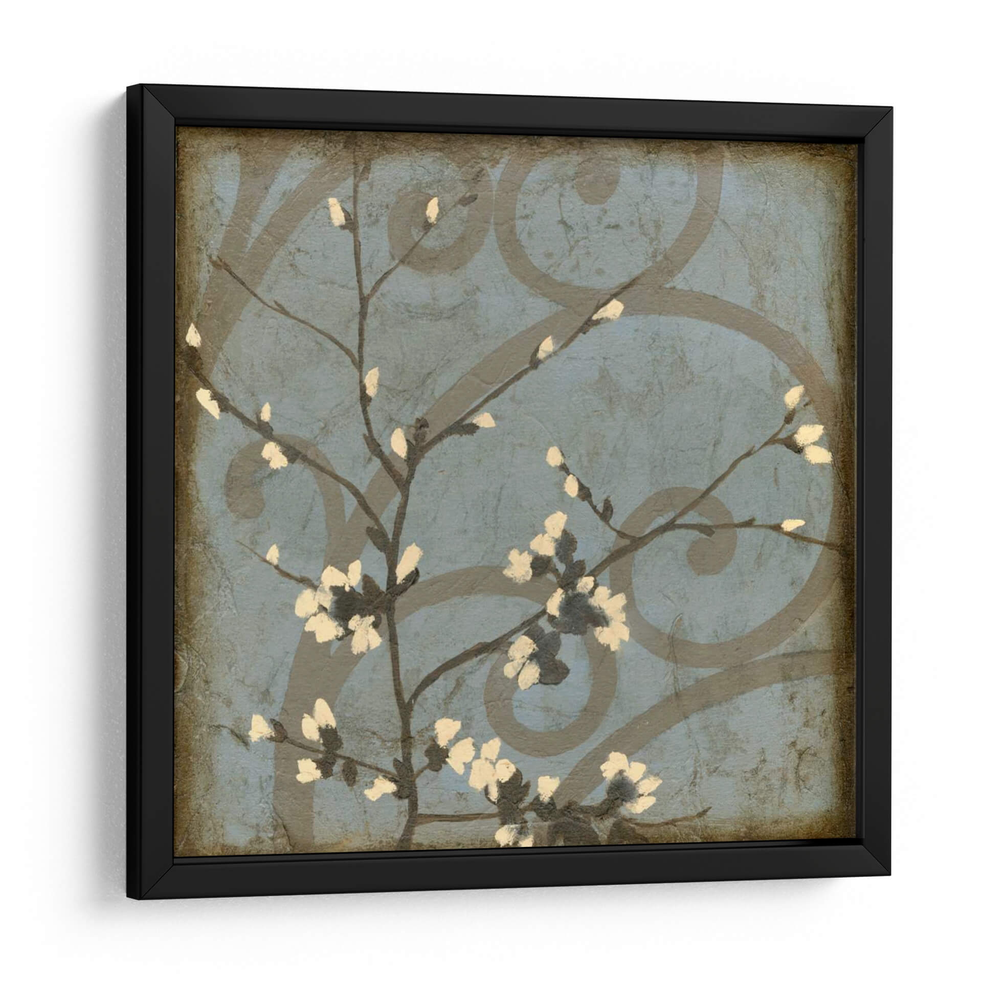 Sumérgete en la delicadeza y el encanto de "Rama De Flores I", una obra de arte contemporáneo de Jennifer Goldberger que captura la efímera belleza de la naturaleza en plena floración. Este cuadro decorativo presenta una rama delicada con pequeñas flores en tonos crema y blanco, emergiendo sobre un fondo texturizado en azul grisáceo. Los sutiles remolinos grises que se entrelazan en el fondo añaden una capa de profundidad y sofisticación, creando un contraste armonioso con la simplicidad de la rama floral. La paleta de colores, dominada por los tonos fríos del azul y los matices terrosos, evoca una sensación de calma y serenidad, perfecta para transformar cualquier espacio en un oasis de paz. El estilo, que fusiona elementos de lo natural y lo abstracto, invita a la contemplación y aporta un toque de elegancia atemporal. Ideal para salones, dormitorios o pasillos, este cuadro decorativo es una pieza versátil que complementa una variedad de estilos de interiores, desde el moderno hasta el más clásico, añadiendo un toque de naturaleza y arte refinado a tu hogar u oficina.
