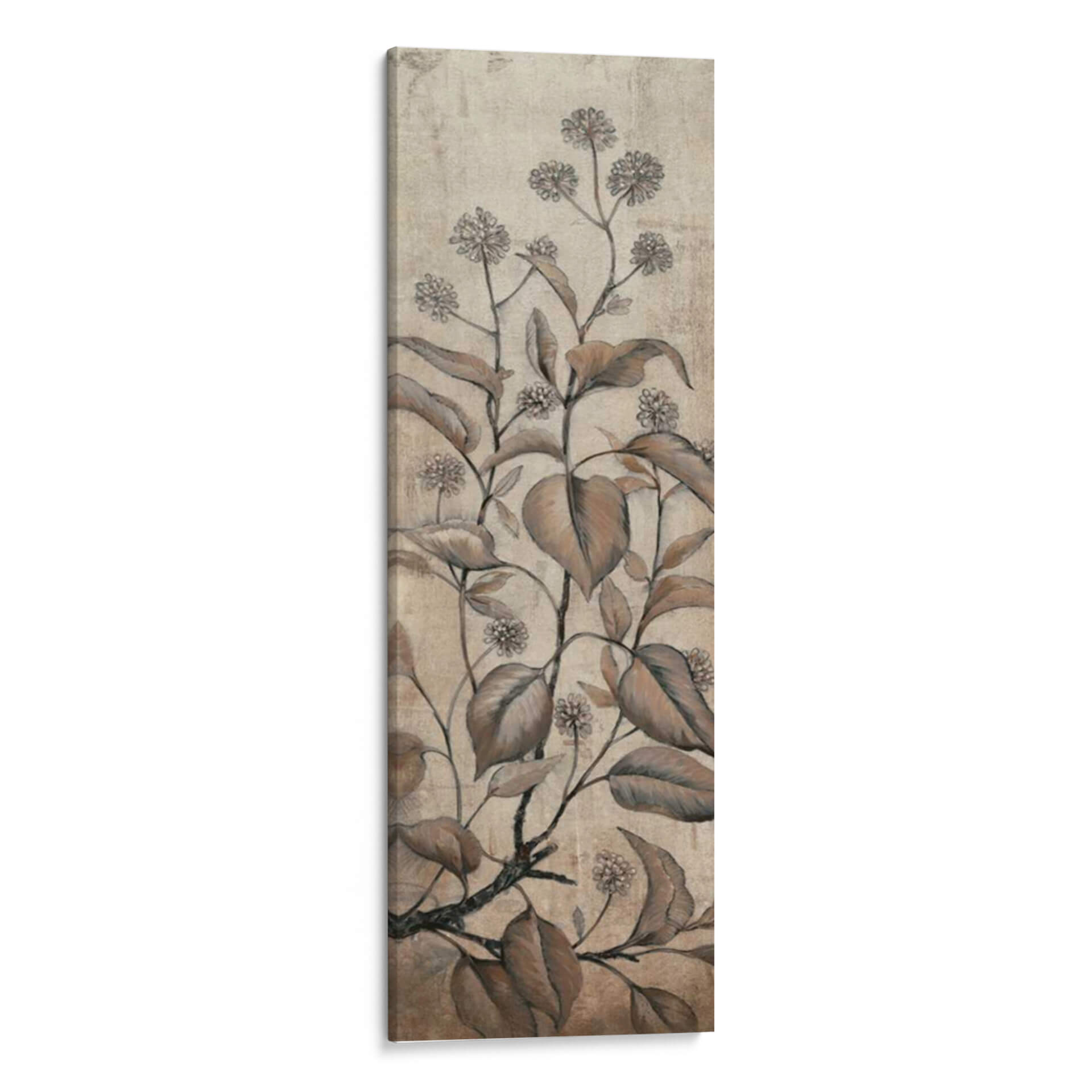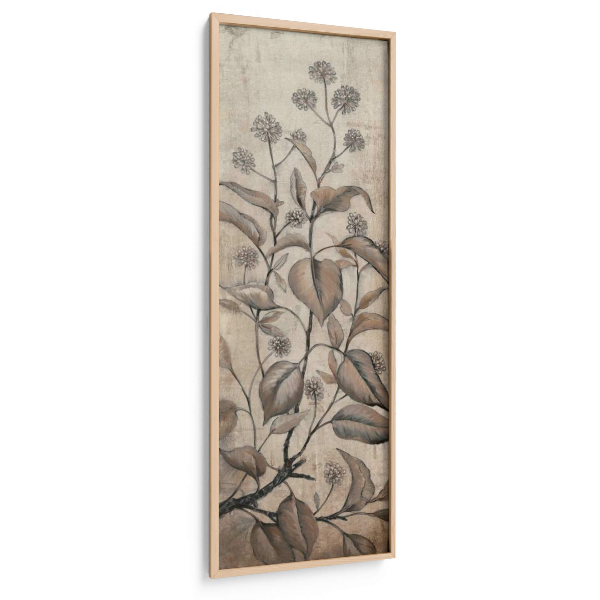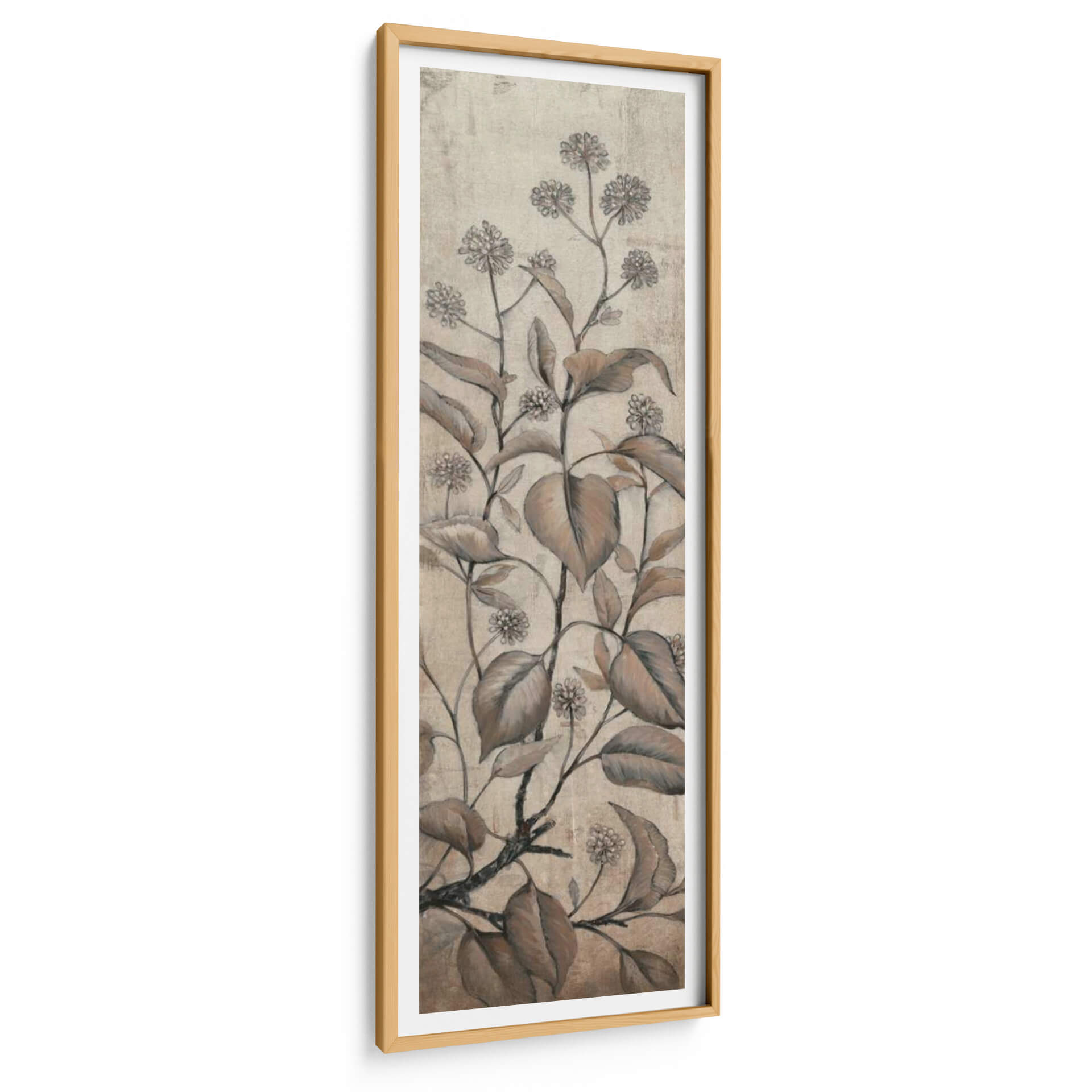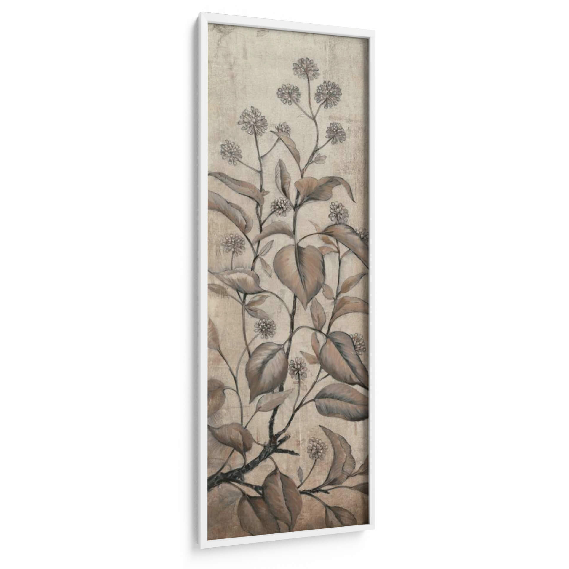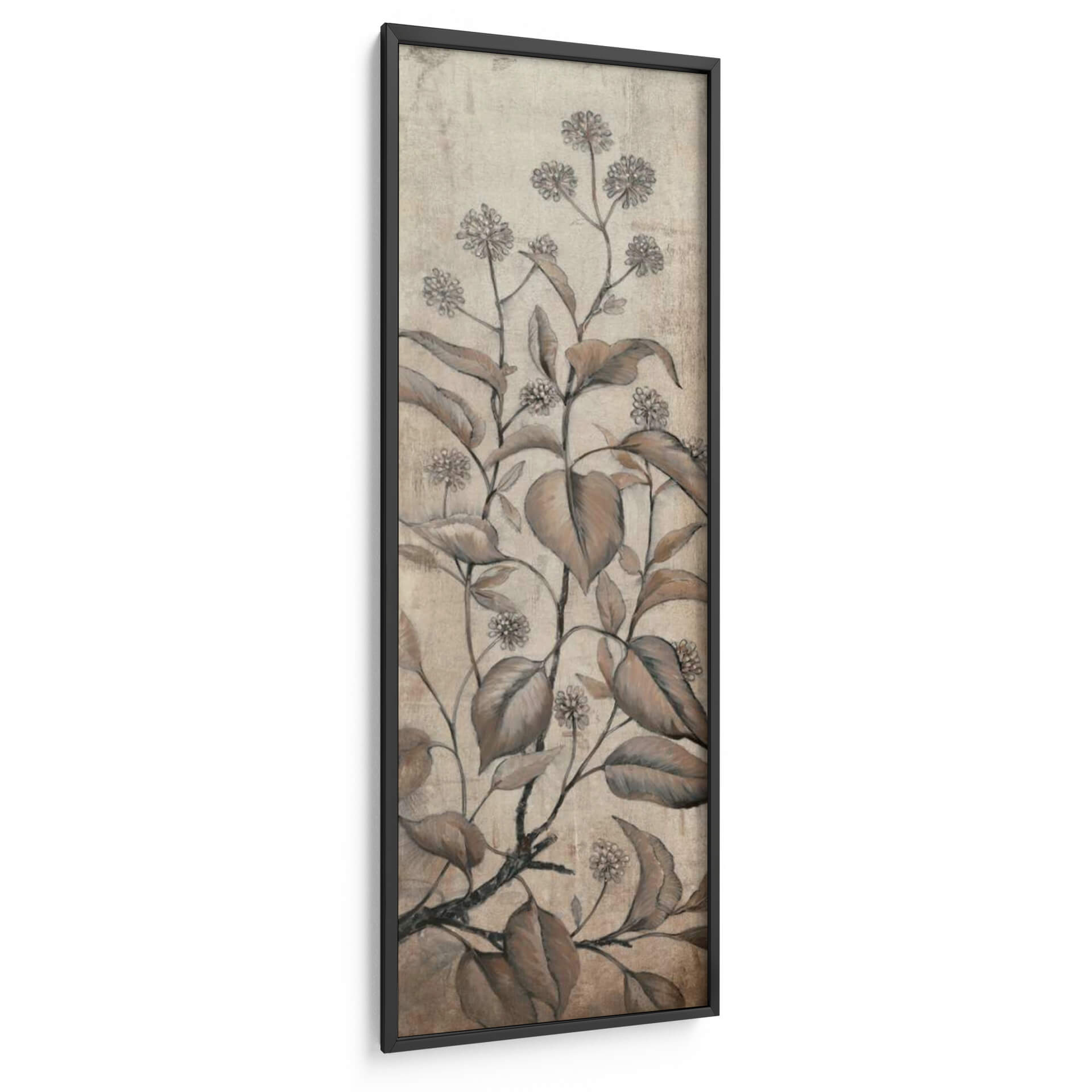 Transforma tu espacio con el delicado encanto del cuadro decorativo 'Rama Y Flores Ii' de Tim O'Toole. Esta cautivadora obra de arte presenta un estudio botánico de ramas y flores en tonos tierra, evocando una sensación de calma y elegancia atemporal. La paleta de colores suaves, que abarca desde beiges cálidos hasta marrones profundos, se complementa con detalles sutiles y una textura que recuerda a un grabado antiguo o a un boceto a lápiz. La composición vertical, centrada en el crecimiento orgánico de la vegetación, aporta un toque de naturaleza serena a cualquier pared. Ideal para salones, dormitorios o estudios que buscan una atmósfera de tranquilidad y sofisticación, este cuadro decorativo es una pieza versátil que se integra a la perfección en una amplia gama de estilos decorativos, desde el rústico y el bohemio hasta el moderno y el minimalista. El sutil contraste entre las líneas detalladas de las flores y las hojas más amplias crea una profundidad visual que invita a la contemplación. Añade un toque de belleza botánica y serenidad a tu hogar con esta exquisita representación artística que captura la esencia de la naturaleza de una manera sutil y refinada. Es la elección perfecta para quienes aprecian el arte inspirado en la naturaleza y desean infundir a su entorno una sensación de paz y equilibrio.