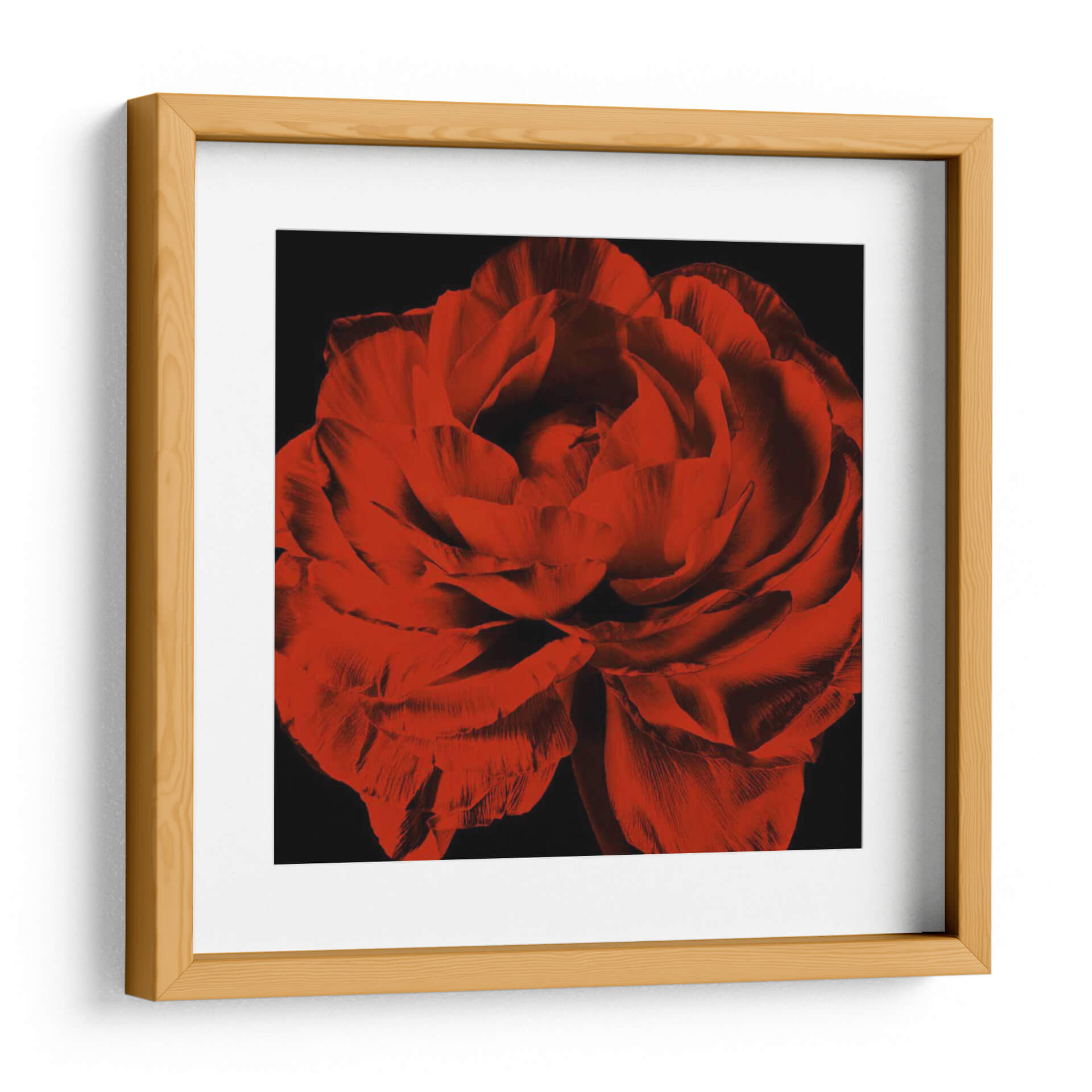 Sumérgete en la intensidad y la belleza de 'Ranunculus Rojo', una obra de arte que captura la esencia de esta vibrante flor con un realismo cautivador. La composición se centra en un primer plano detallado de pétalos de ranúnculo en un profundo y seductor tono rojo, contrastando dramáticamente contra un fondo negro absoluto. La luz juega magistralmente sobre las texturas, revelando cada pliegue y curva con una delicadeza que evoca la pasión y la elegancia. Esta pieza, firmada por la artista Christine Zalewski, trasciende la simple representación floral para convertirse en una declaración de estilo y emoción. Es un cuadro decorativo que irradia fuerza y sofisticación, ideal para añadir un toque de color audaz y un aire de lujo a cualquier espacio, desde una sala de estar moderna hasta un dormitorio íntimo o una oficina que busque inspiración. Su potente paleta de color y su composición audaz la convierten en un punto focal inolvidable, capaz de transformar un ambiente y evocar sentimientos de amor, valentía y vitalidad. Permite que la energía del rojo inunde tus sentidos y eleve la decoración de tu hogar con esta impresionante obra de arte contemporáneo.