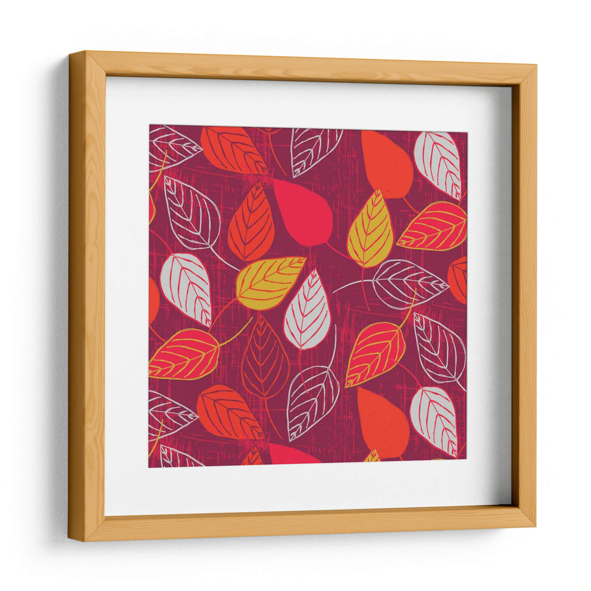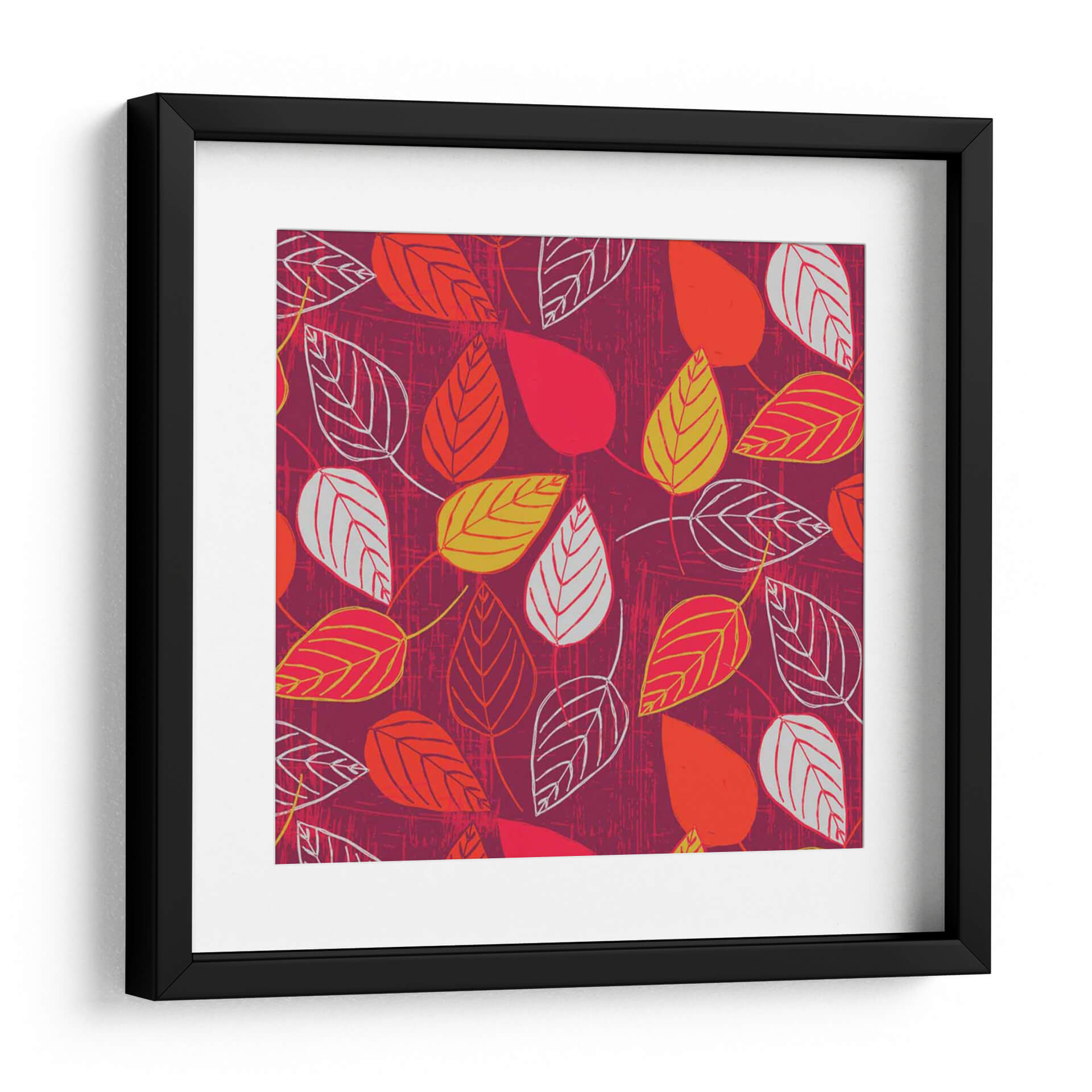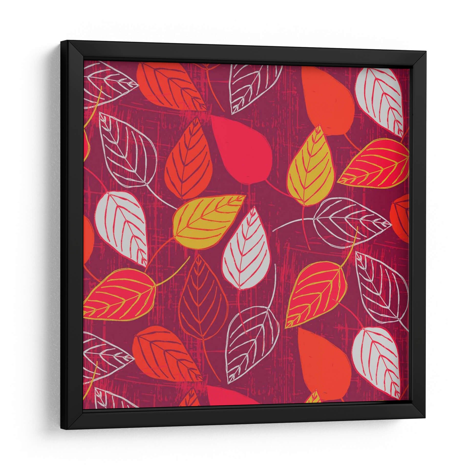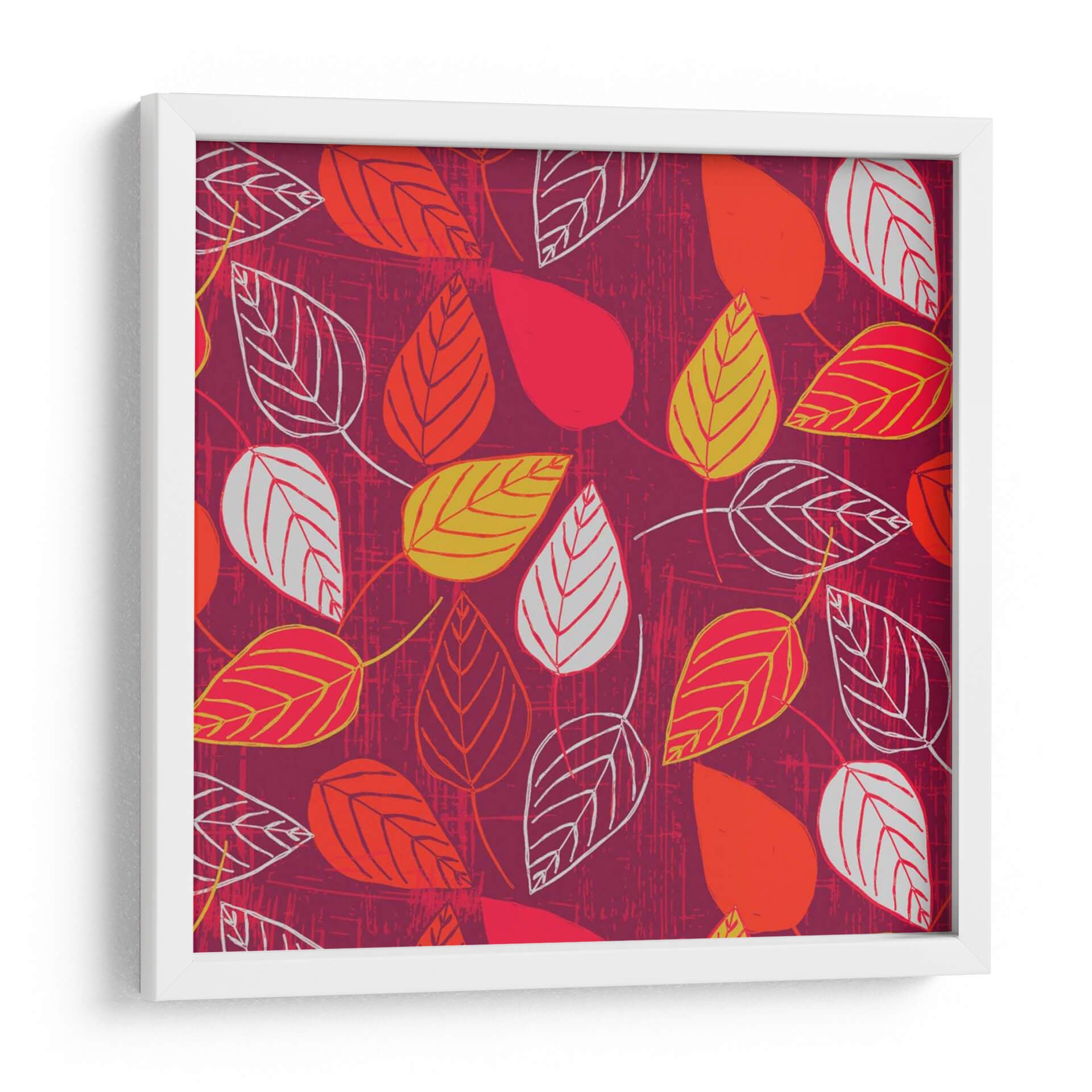 Sumérgete en la vibrante energía otoñal con "Red Fall Viii", una cautivadora obra de arte digital que celebra la belleza efímera de las hojas caídas. La pieza presenta un patrón repetitivo de hojas estilizadas en tonos cálidos de rojo, naranja y amarillo, contrastando con delicados contornos en blanco y gris. El fondo, un lienzo texturizado en un profundo tono burdeos, evoca la riqueza y calidez de la temporada otoñal, añadiendo profundidad y carácter a la composición. El estilo gráfico y las líneas limpias se combinan con una atmósfera orgánica, creando un equilibrio visual fascinante que atrae la mirada y estimula la imaginación. "Red Fall Viii" es más que una simple decoración; es una expresión artística que aporta vida y un toque de naturaleza contemporánea a cualquier espacio. Ideal para salones modernos, comedores acogedores u oficinas que buscan un toque de color y vitalidad, este cuadro decorativo se convierte en un punto focal dinámico y elegante. Su diseño versátil se adapta a diversas paletas de colores, pero brilla especialmente en ambientes que buscan calidez y un estilo distintivo. Permite que la vitalidad de esta obra transporte tu hogar a un otoño perpetuo y lleno de estilo.