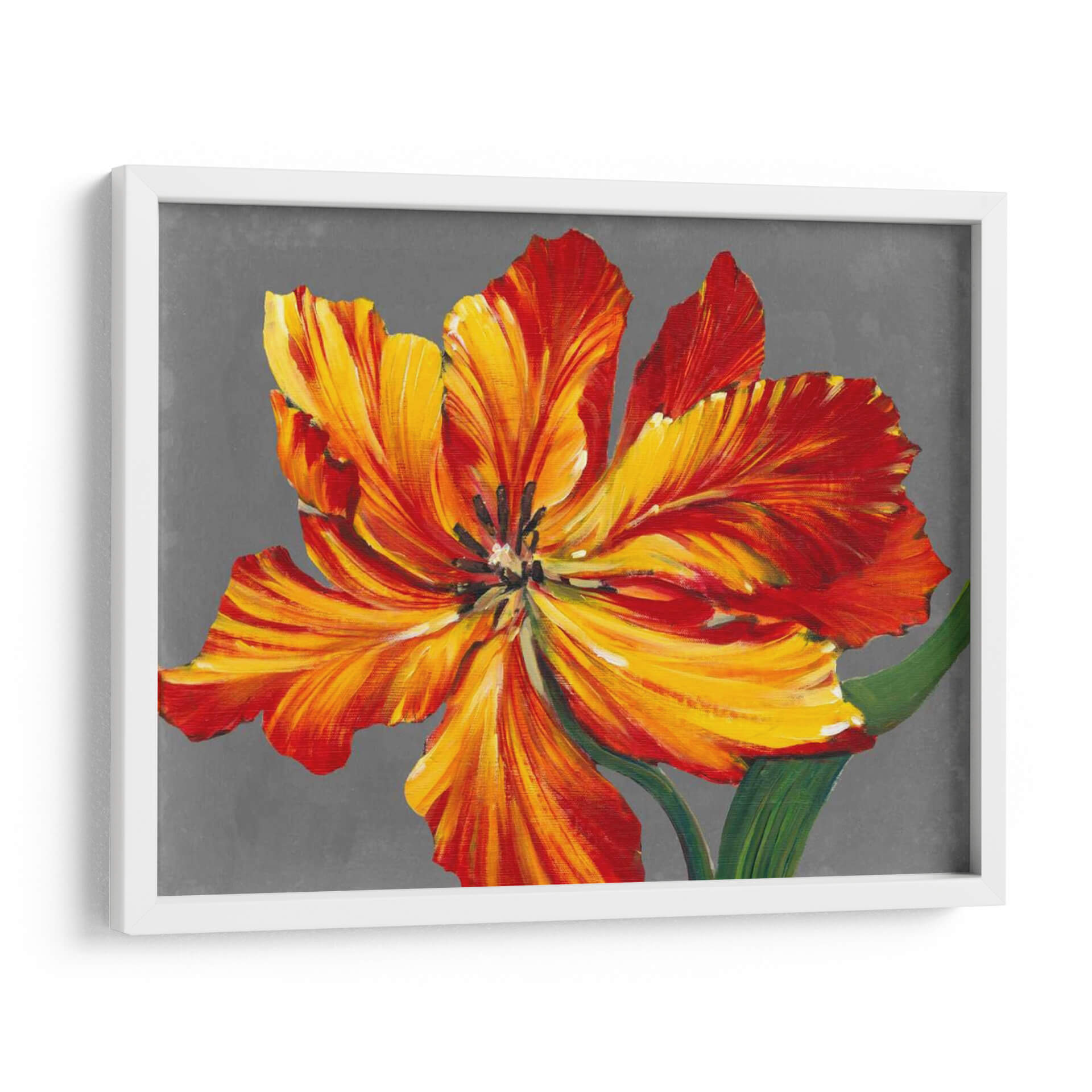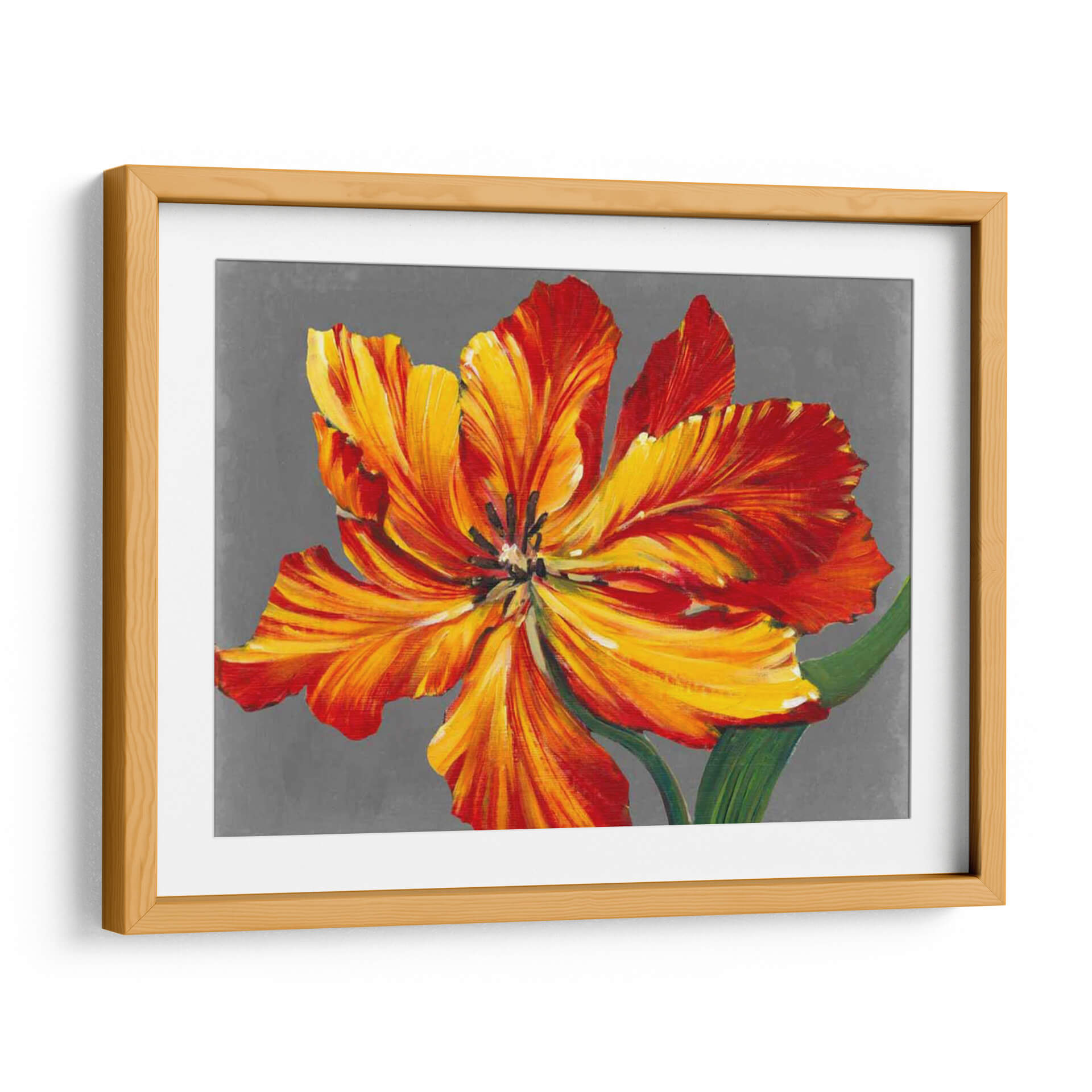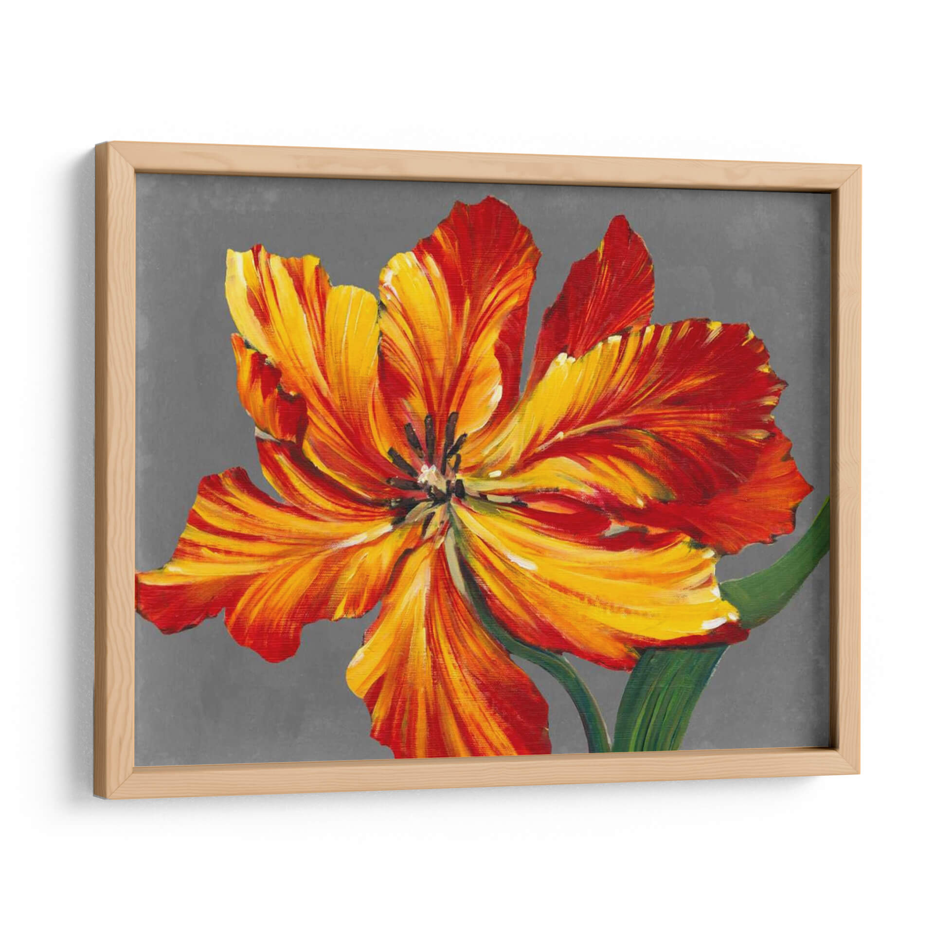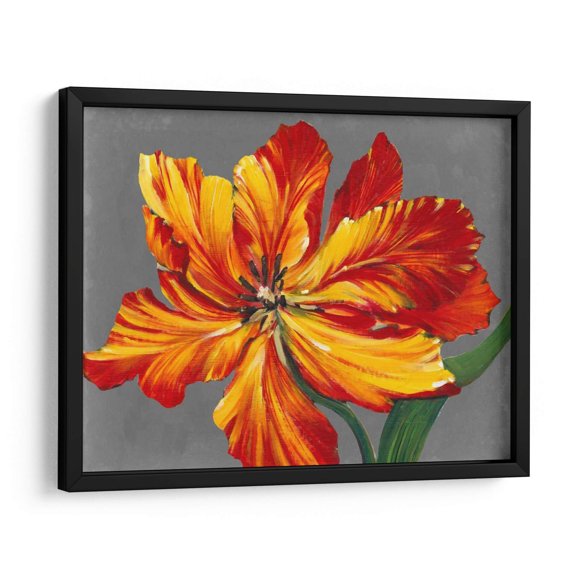 Captura la vibrante esencia de la naturaleza con este exquisito cuadro decorativo 'Retrato De Tulipán I', una obra maestra del artista Tim O'Toole. La pieza presenta un primer plano detallado de un tulipán de pétalos exuberantes, desplegándose en una explosión de cálidos tonos anaranjados y amarillos intensos. Las pinceladas audaces y texturizadas confieren profundidad y vida a la flor, mientras que el fondo de tono gris neutro permite que los vibrantes colores del tulipán resalten con fuerza, creando un contraste cautivador. La composición, centrada en la majestuosidad de esta flor icónica, evoca una sensación de belleza efímera y la energía vital de la primavera. Este cuadro decorativo es ideal para añadir un toque de color y sofisticación a cualquier espacio, desde una sala de estar moderna hasta un dormitorio sereno u oficina. Su estilo figurativo con toques impresionistas lo convierte en una pieza versátil que complementa una amplia gama de decoraciones interiores. Transforma tu hogar u oficina con la belleza atemporal de este impresionante retrato floral, una obra de arte que inspira y embellece.