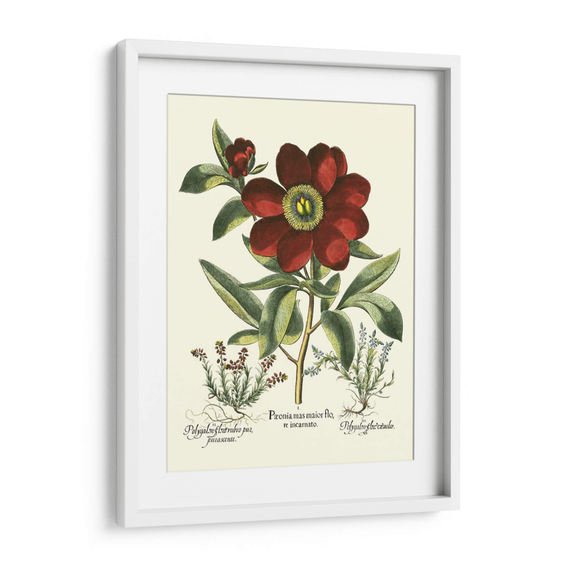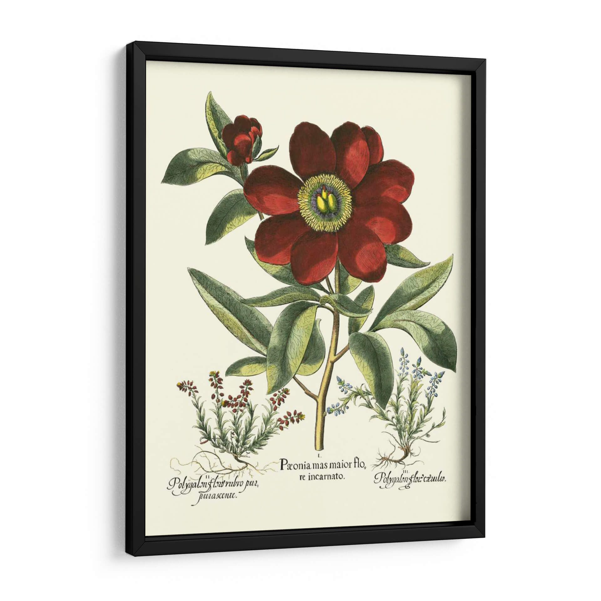 Embellece tu hogar con la elegancia atemporal de 'Rojo Besler Peonie I', una exquisita obra de arte botánica del renombrado artista Basilius Besler. Esta pieza captura la suntuosa belleza de una peonía en plena floración, destacando sus ricos pétalos de color rojo profundo y el vibrante centro amarillo verdoso. La detallada ilustración botánica, con sus hojas verdes exuberantes y pequeñas flores complementarias en tonos azules y rojizos, evoca una sensación de serenidad y conexión con la naturaleza. Los elementos intrincados y la paleta de colores cuidadosamente seleccionada hacen de este cuadro decorativo una adición sofisticada a cualquier espacio. Ideal para salas de estar, comedores o incluso estudios, 'Rojo Besler Peonie I' aporta un toque de clasicismo y refinamiento. Su estilo, reminiscente de las ilustraciones científicas históricas pero con una vitalidad contemporánea, lo convierte en un punto focal cautivador que invita a la contemplación y añade un aire de distinción a tu decoración. Transforma tus paredes con esta obra maestra floral que combina precisión artística y encanto botánico.
