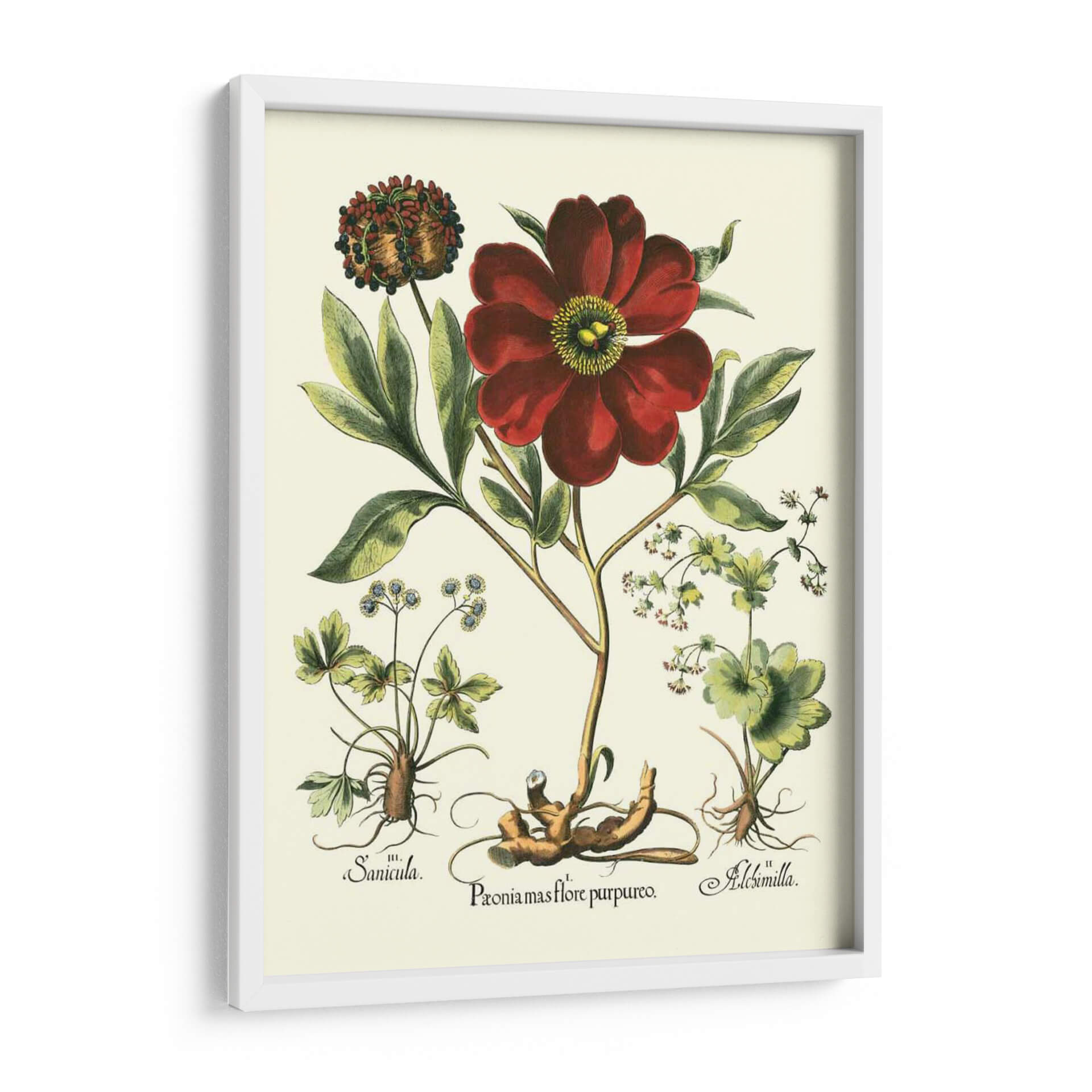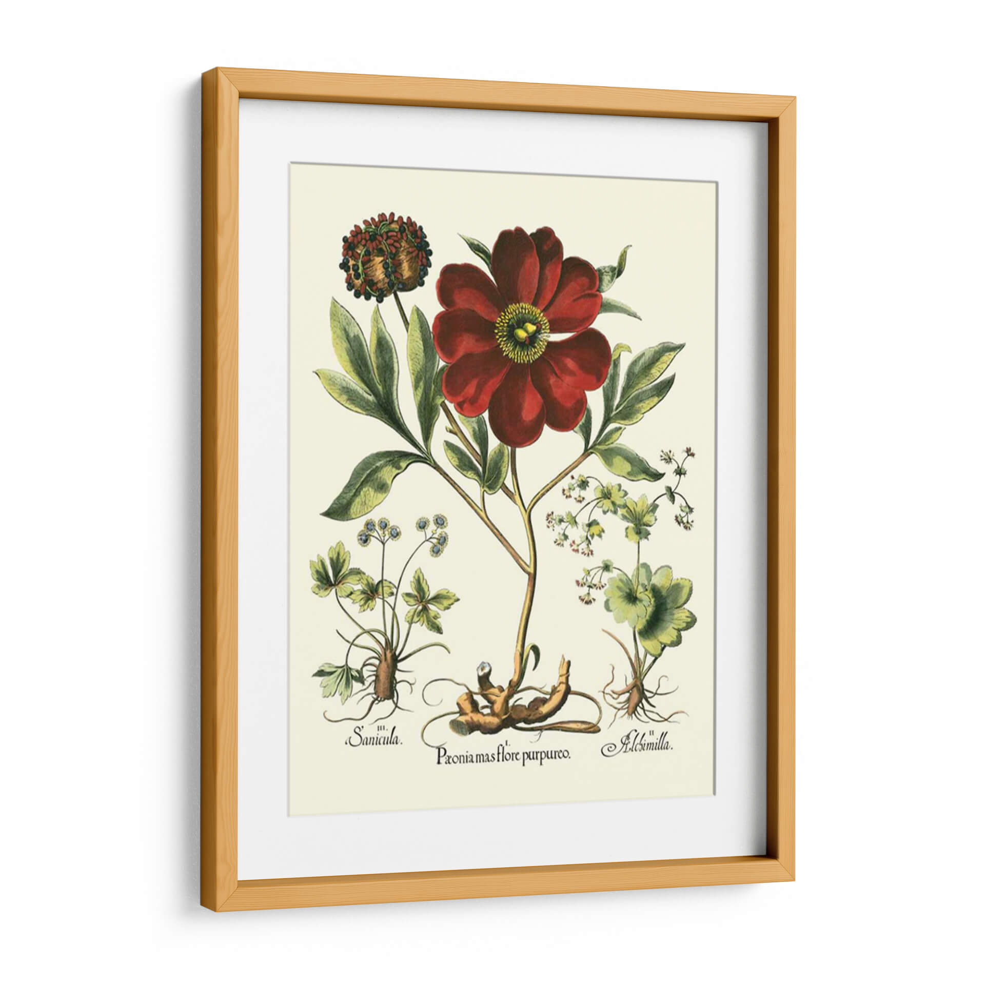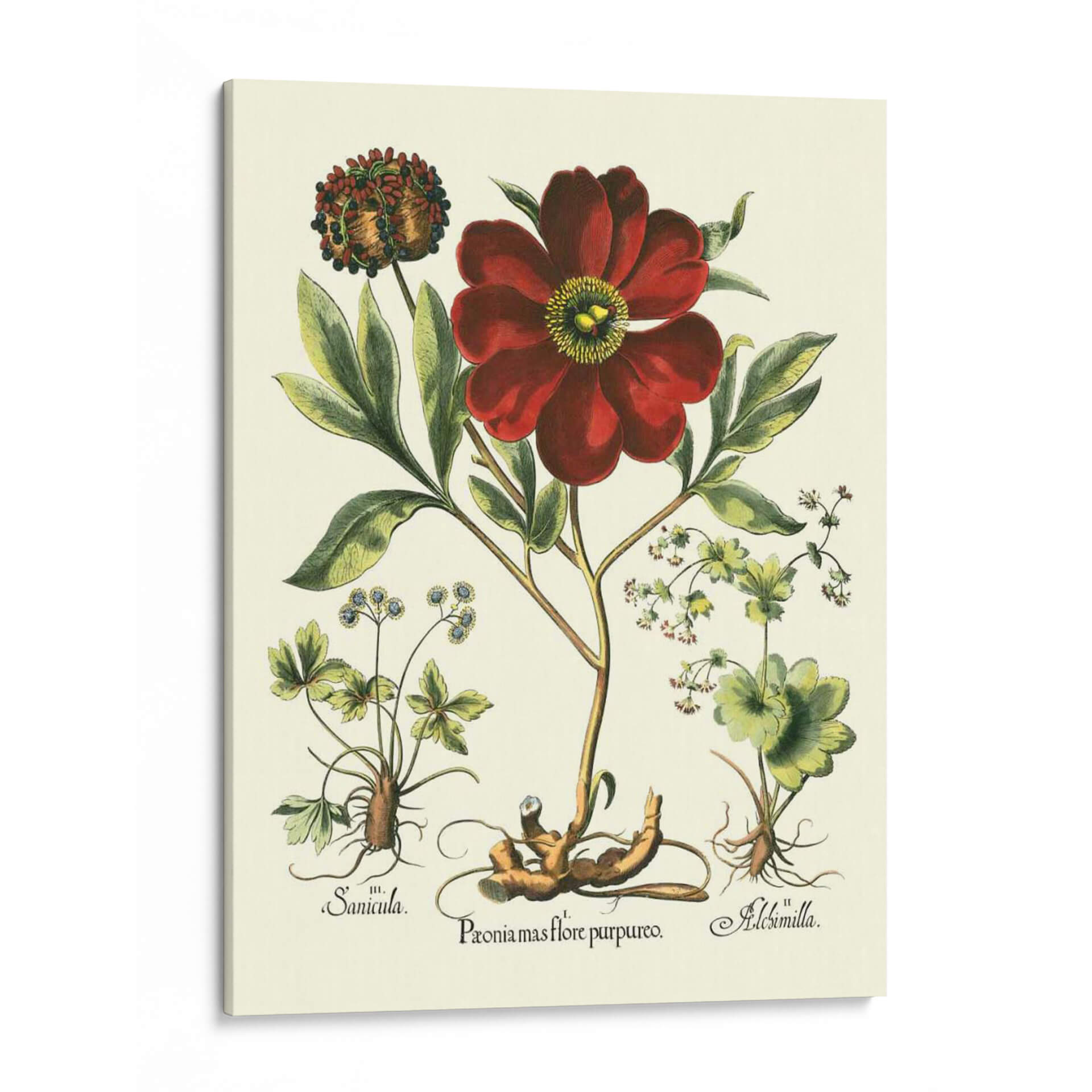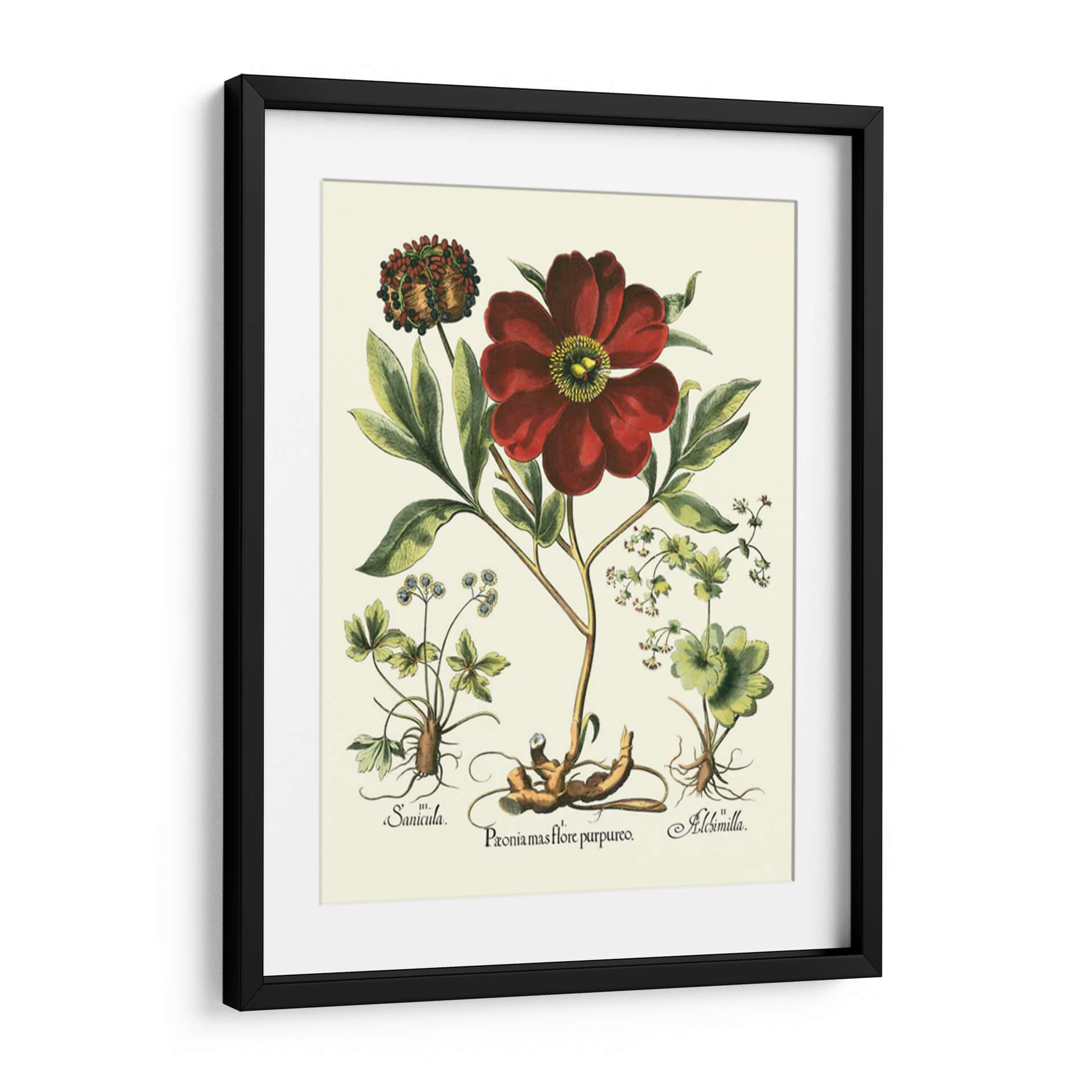Sumérgete en la belleza botánica con el cuadro decorativo "Rojo Besler Peonie II" del reconocido artista Basilius Besler. Esta exquisita obra de arte presenta una detallada ilustración de una peonía de pétalos carmesí intensos, con un vibrante centro amarillo y rodeada de exuberante follaje verde. La composición, que recuerda a los herbaria clásicos, incluye también delicadas flores secundarias y raíces expuestas, ofreciendo una perspectiva completa de la planta. Los colores, dominados por el rojo profundo de la peonía y los verdes variados de las hojas, crean un contraste visual cautivador sobre un fondo crema suave. El estilo realista y la meticulosa ejecución de Besler dotan a esta pieza de una elegancia atemporal, ideal para añadir un toque de sofisticación naturalista a cualquier espacio. Perfecta para tu sala de estar, estudio o incluso un dormitorio, este cuadro decorativo evoca una sensación de calma, apreciación por la naturaleza y un refinado gusto estético. Añade esta obra maestra botánica a tu colección y transforma tu hogar en una galería personal de maravillas naturales.