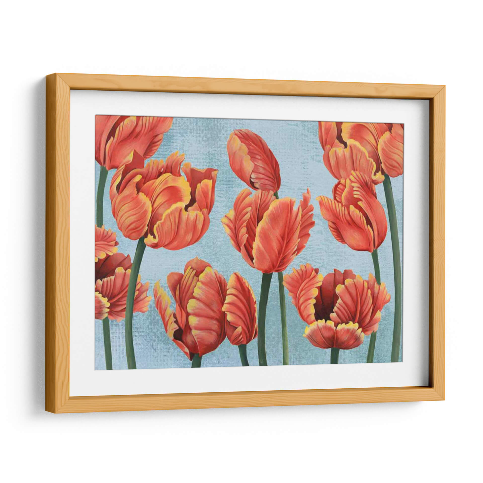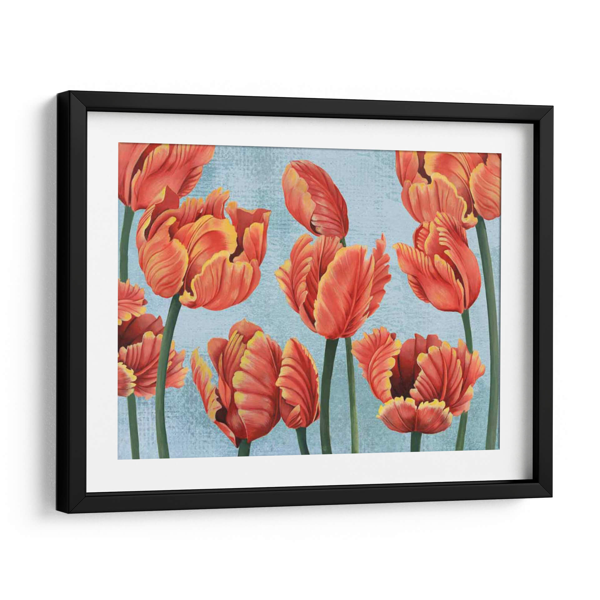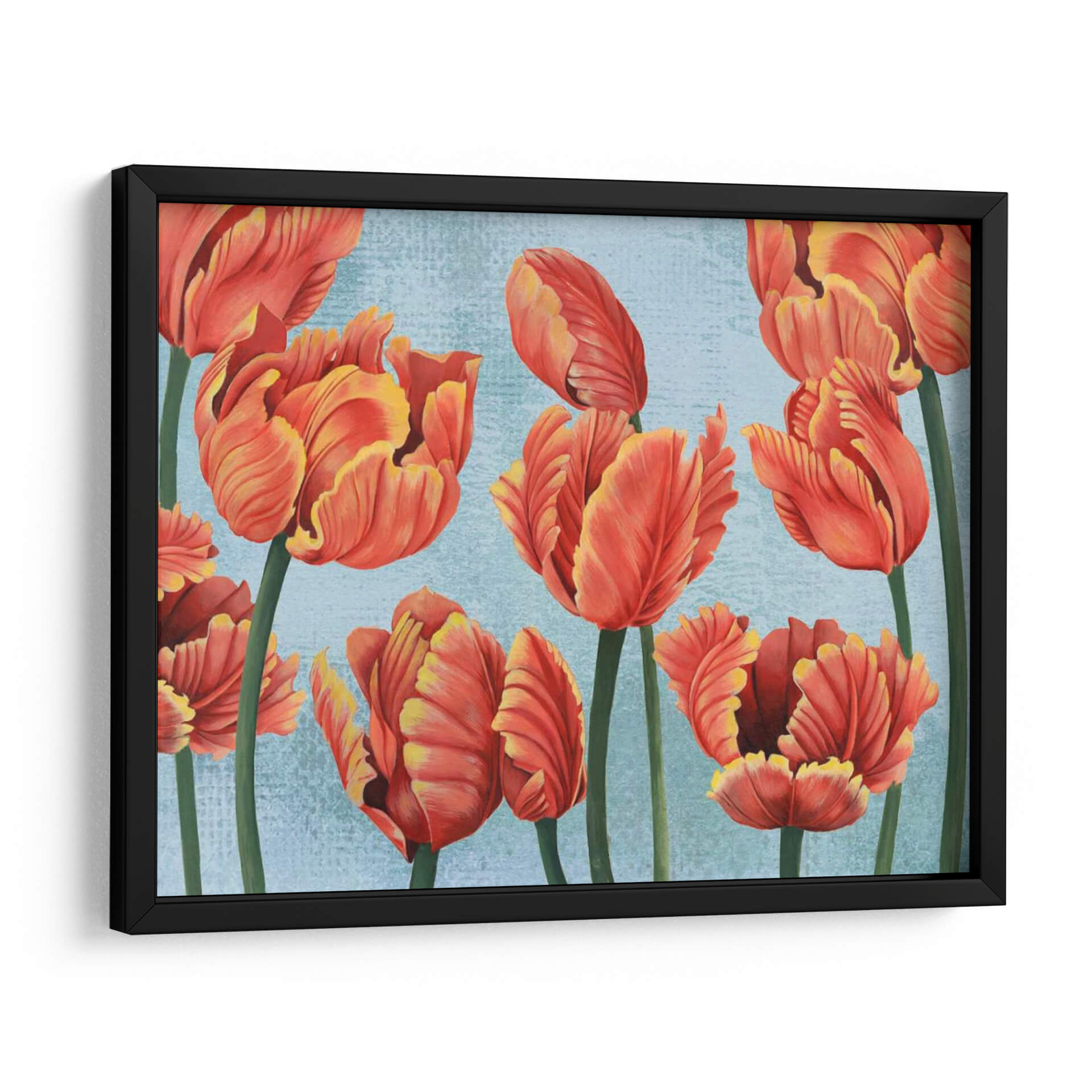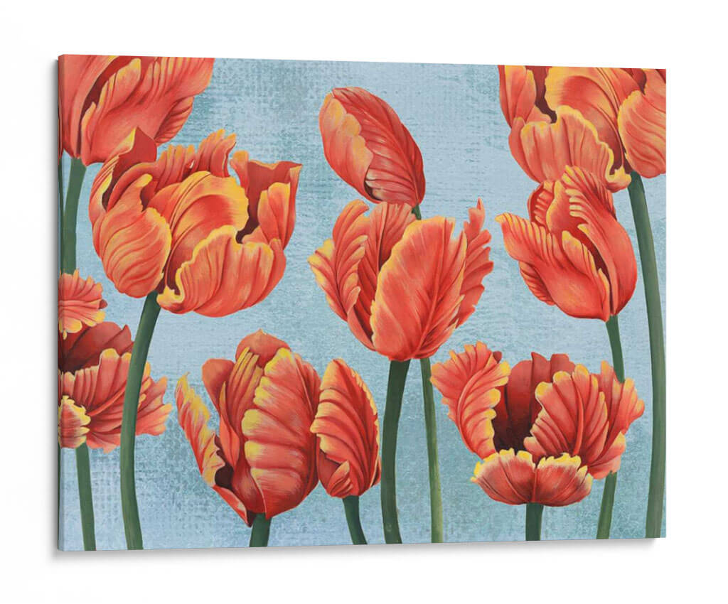 Transforma tu espacio con la vibrante belleza de 'Ruby Tulipanes I', una obra de arte contemporáneo que captura la esencia de estos icónicos capullos florales. Los tulipanes, pintados en ricos tonos de rojo rubí con sutiles destellos de amarillo dorado en sus pétalos, emergen con una gracia cautivadora sobre un delicado fondo azul cielo texturizado. La composición, centrada en un grupo de tulipanes de diferentes etapas de floración, crea una sensación de dinamismo y vitalidad, invitando a la contemplación de la naturaleza en su máxima expresión. El estilo artístico, que combina elementos realistas en el detalle de las flores con un toque impresionista en la aplicación del color y la textura del fondo, resulta en una pieza visualmente atractiva y llena de vida. Esta obra es ideal para añadir un toque de color y elegancia a cualquier habitación, desde una sala de estar moderna hasta un comedor acogedor o una oficina que busque inspiración. 'Ruby Tulipanes I' no es solo una decoración; es una ventana a la alegría y la frescura de la primavera, una pieza que resonará con amantes del arte floral y aquellos que buscan infundir sus hogares con energía positiva y estilo.