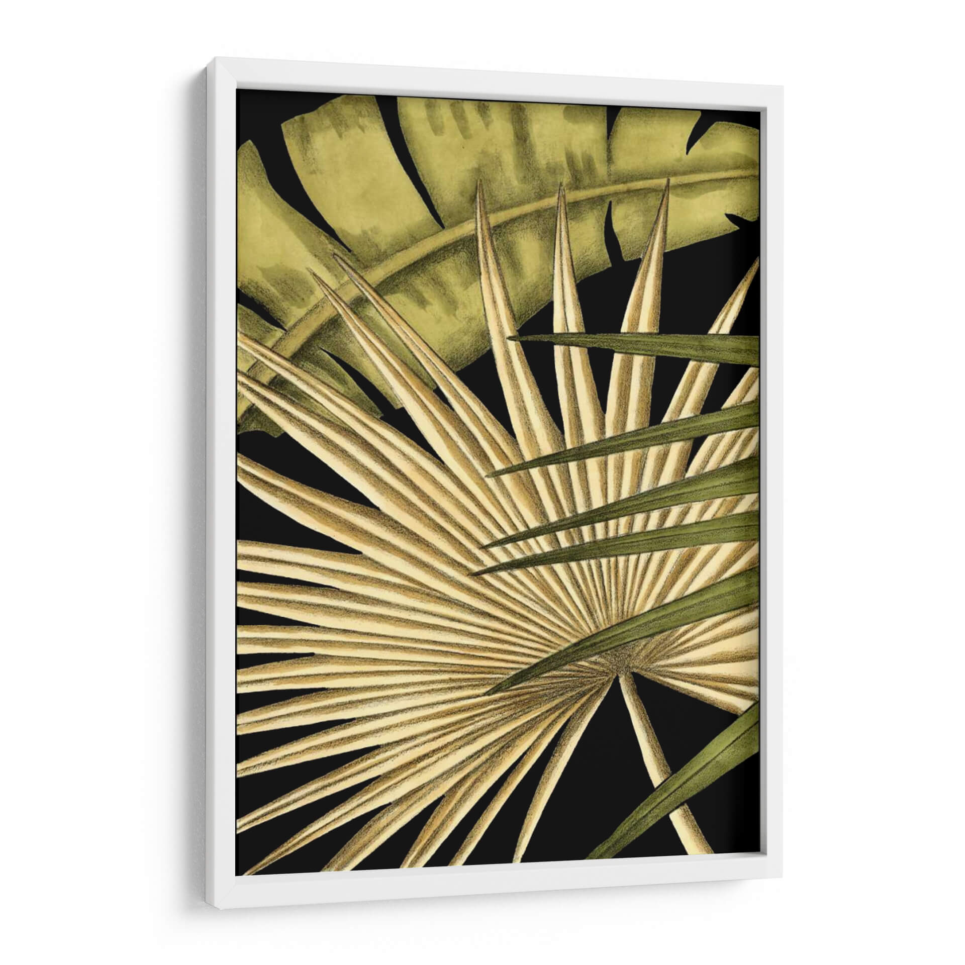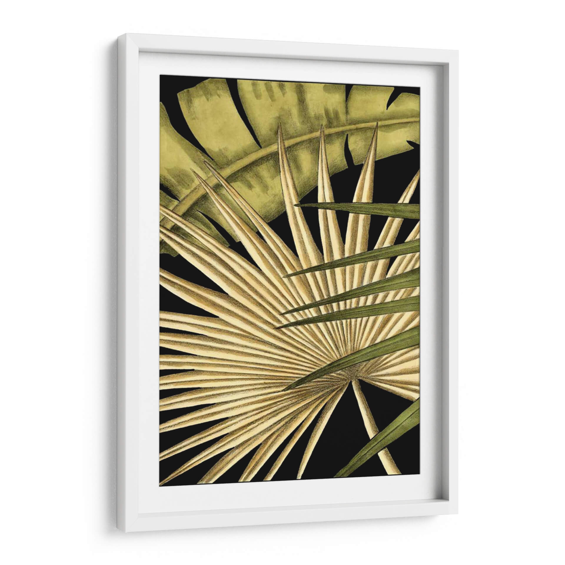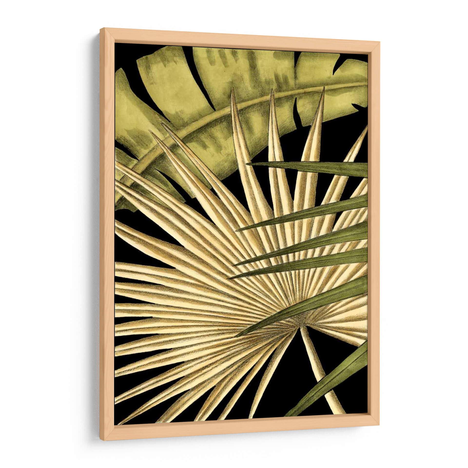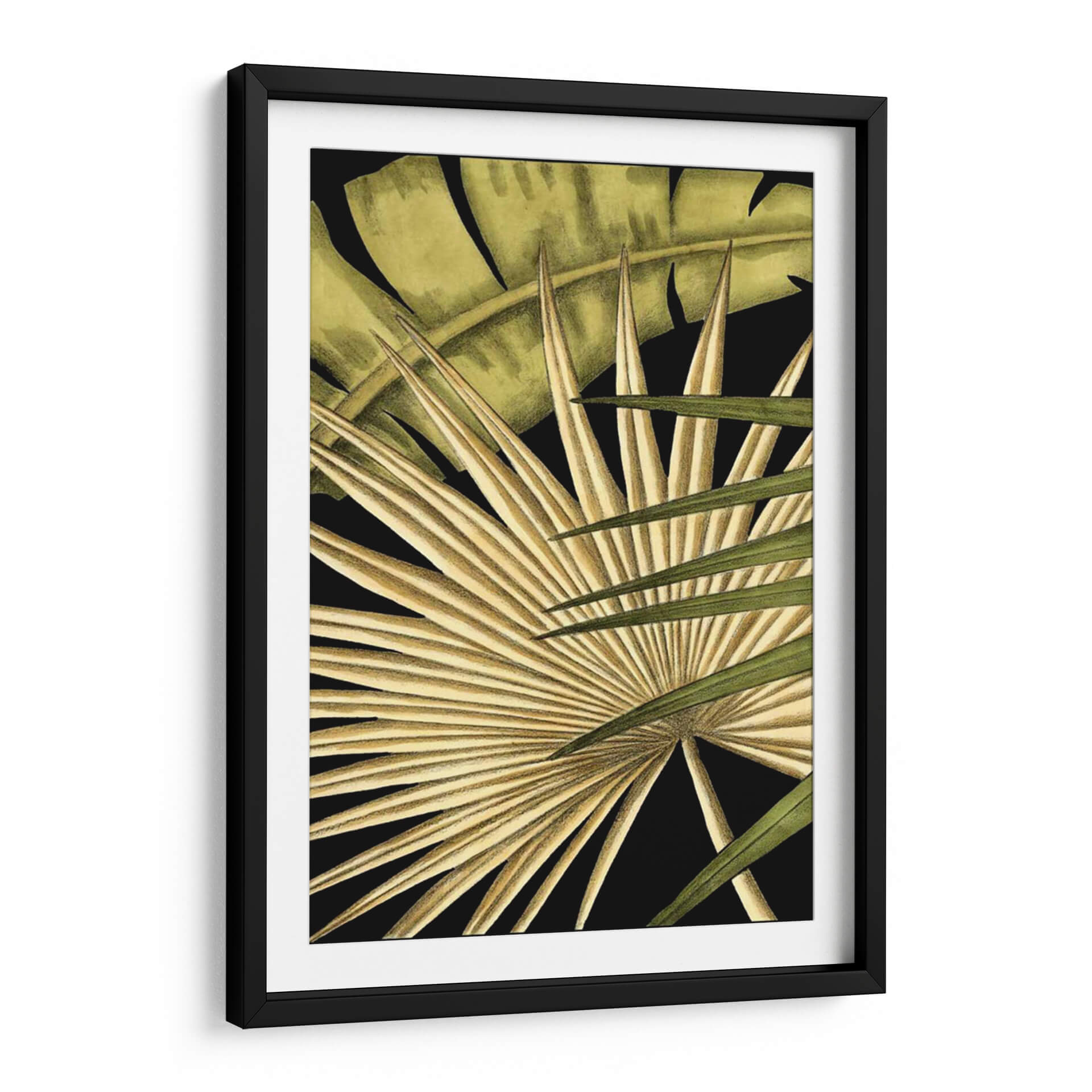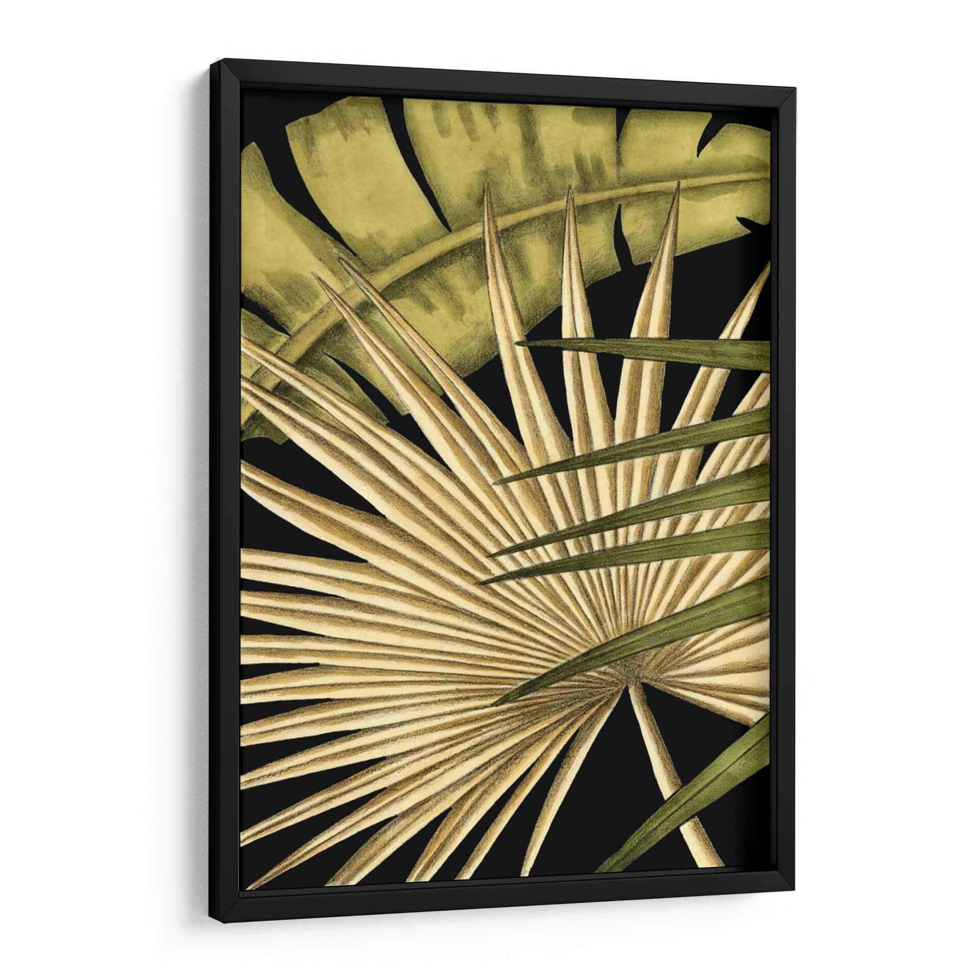 Sumérgete en la exuberancia tropical con "Rústico Tropical Deja I", una obra de arte que captura la esencia de la naturaleza en su máxima expresión. Este cuadro decorativo presenta un primer plano detallado de hojas exóticas, donde las texturas ricas y los tonos tierra se fusionan con verdes profundos, creando un contraste cautivador sobre un fondo negro intenso. La composición, centrada en la intrincada arquitectura de las hojas de palma, evoca una sensación de calma y conexión con el mundo natural. Los trazos finos y la delicada paleta de colores, que van desde ocres dorados hasta verdes vibrantes, insinúan un estilo botánico moderno con un toque rústico. Esta pieza es ideal para quienes buscan infundir serenidad y un aire de sofisticación natural en sus hogares u oficinas, transformando cualquier pared en un oasis de tranquilidad y estilo. Perfecto para salas de estar, dormitorios o espacios de trabajo que necesiten un toque de frescura y elegancia orgánica. Añade una dimensión de naturaleza y diseño a tu decoración con este impresionante cuadro de Ethan Harper.