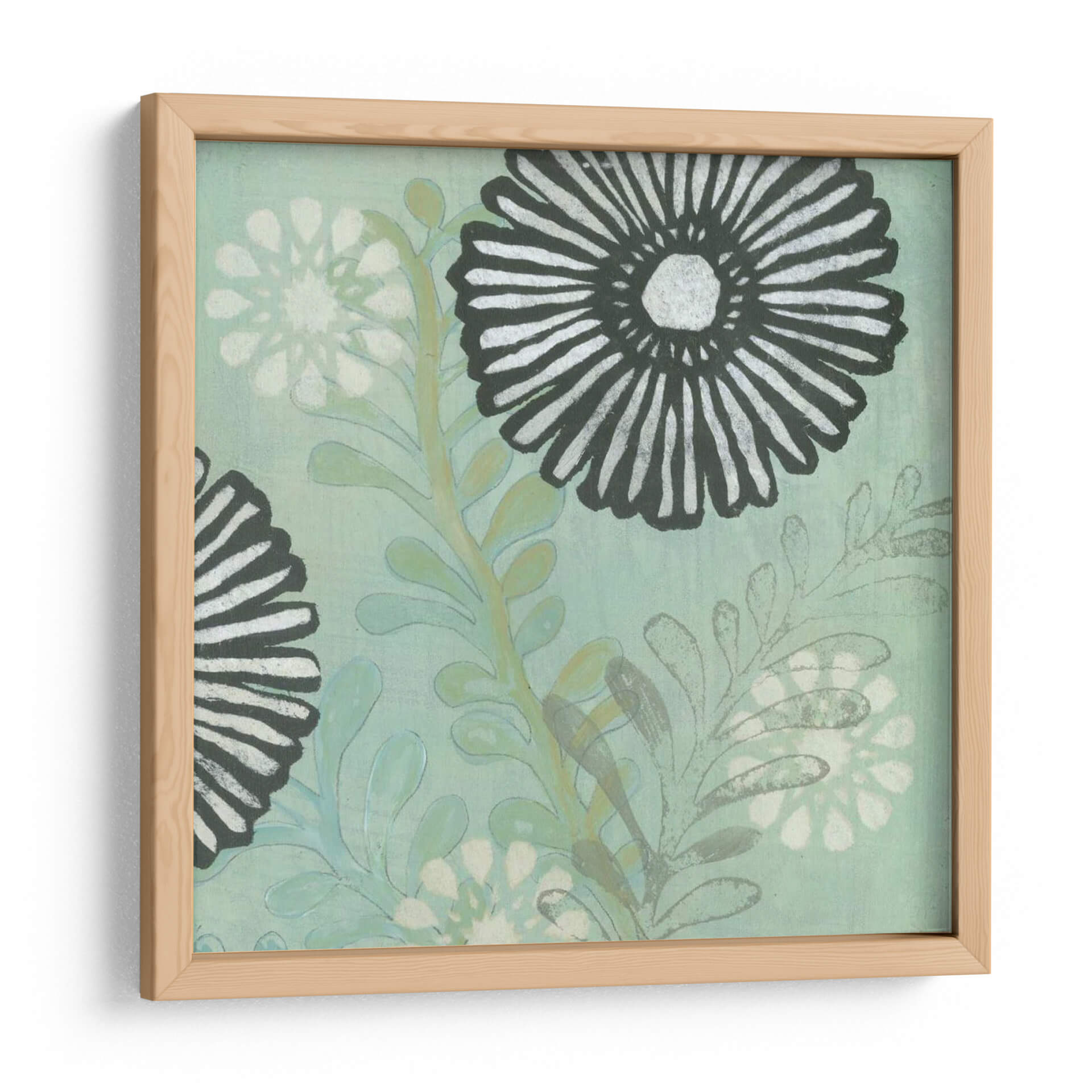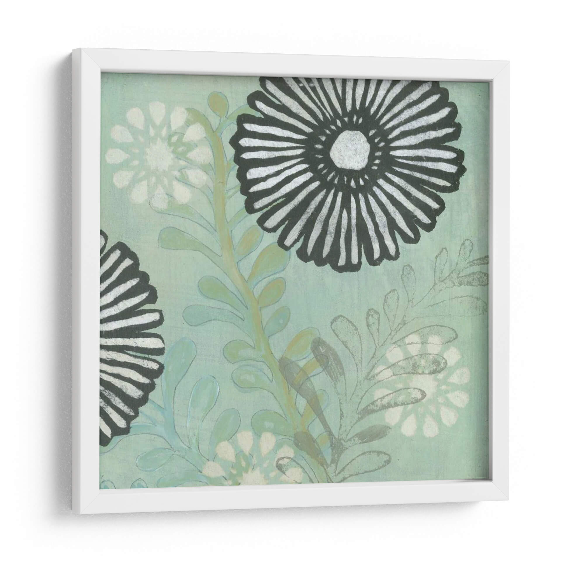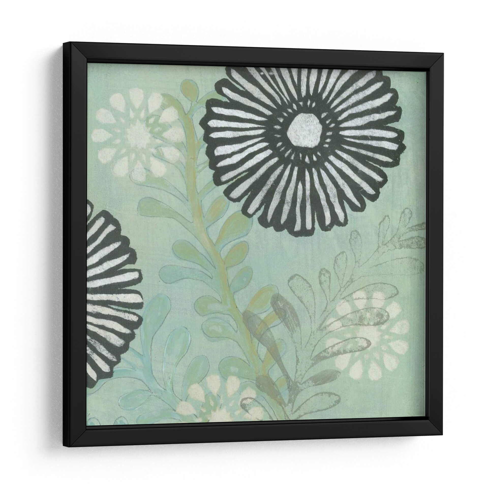 Sumérgete en la serena belleza de "Scape De Mar I", una cautivadora obra de arte de Jodi Fuchs que captura la esencia de la naturaleza con un toque contemporáneo. Este cuadro decorativo presenta un diseño floral estilizado sobre un fondo de tonos azul verdoso empolvado, evocando la tranquilidad de un paisaje marino sereno. Los contrastantes elementos en blanco y negro, especialmente en las flores principales, aportan un dinamismo visual, mientras que las delicadas hojas en tonos verdes y grises añaden profundidad y textura. La composición general es equilibrada y armoniosa, invitando a la contemplación y la calma. Ideal para espacios que buscan un refugio de paz y elegancia, como un dormitorio, un estudio o una sala de estar con influencias nórdicas o costeras. "Scape De Mar I" no es solo una pieza decorativa, es una invitación a la relajación y a conectar con la belleza sutil del mundo natural. Añade un toque de sofisticación botánica a tu hogar con este evocador cuadro, perfecto para quienes aprecian el arte moderno con alma y serenidad.