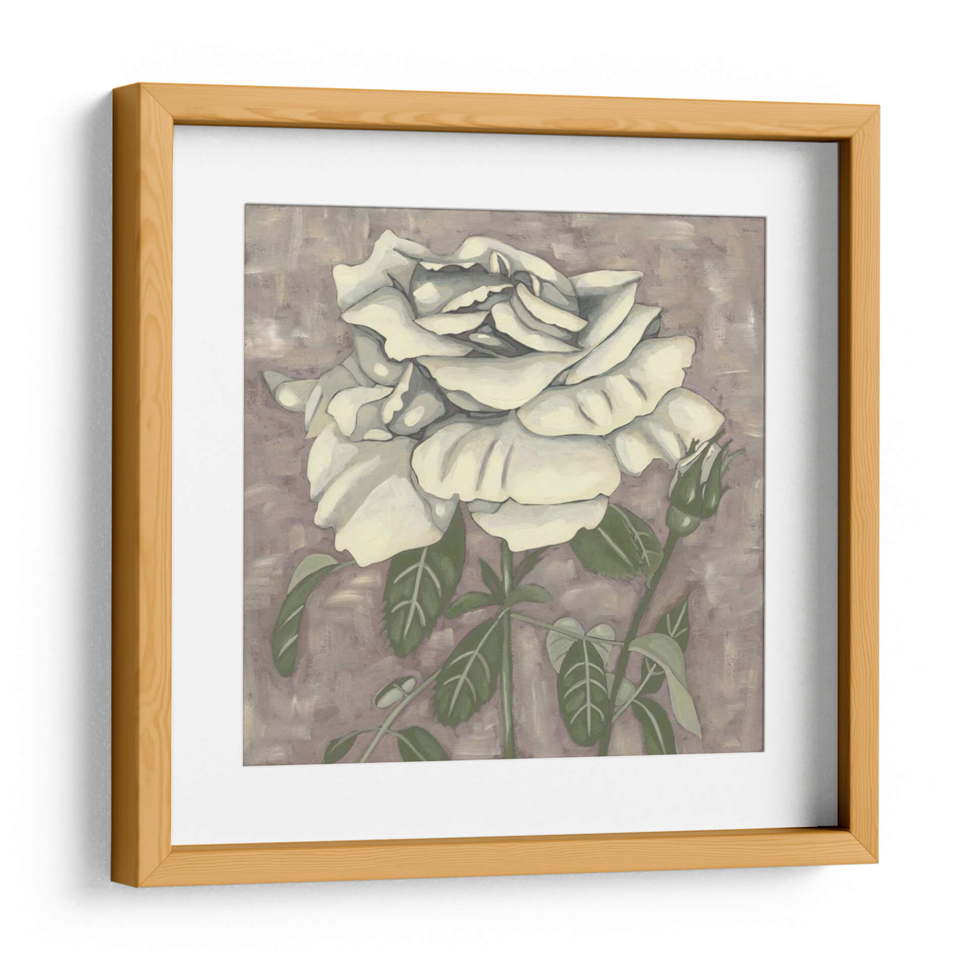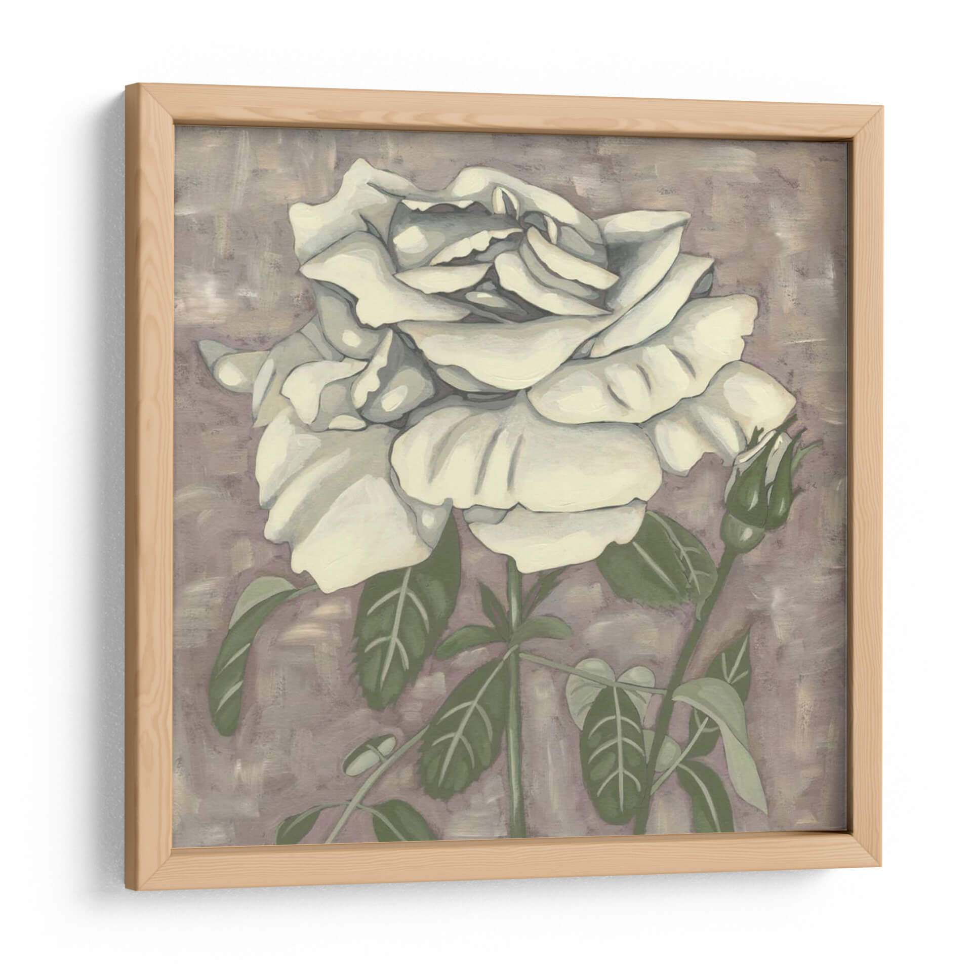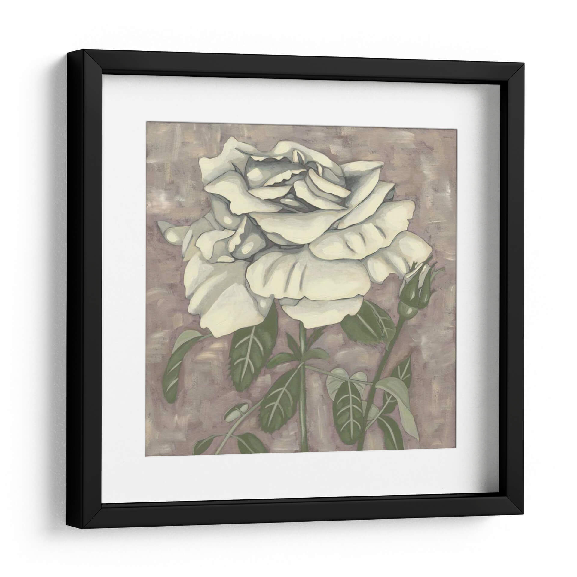 Embellece tu espacio con la delicadeza atemporal de 'Silver Rose I', una obra de arte cautivadora de Chariklia Zarris. Este cuadro decorativo presenta una rosa blanca de pétalos exuberantes y detallados, emergiendo sobre un fondo texturizado en tonos lavanda y tierra. La paleta de colores suave y sofisticada, dominada por blancos cremosos, verdes apacibles y un matiz neutral en el fondo, crea una atmósfera de serenidad y elegancia. La composición, centrada en la flor principal y un capullo en ciernes, evoca la belleza efímera de la naturaleza y el potencial de crecimiento. El estilo artístico, con pinceladas visibles pero controladas, aporta una sensación de arte contemporáneo con un toque clásico. 'Silver Rose I' es una pieza versátil, ideal para añadir un toque de refinamiento a cualquier dormitorio, sala de estar o estudio, transformando tu hogar en un santuario de paz y estilo. Descubre la armonía y la belleza sutil que esta obra puede aportar a tu decoración.