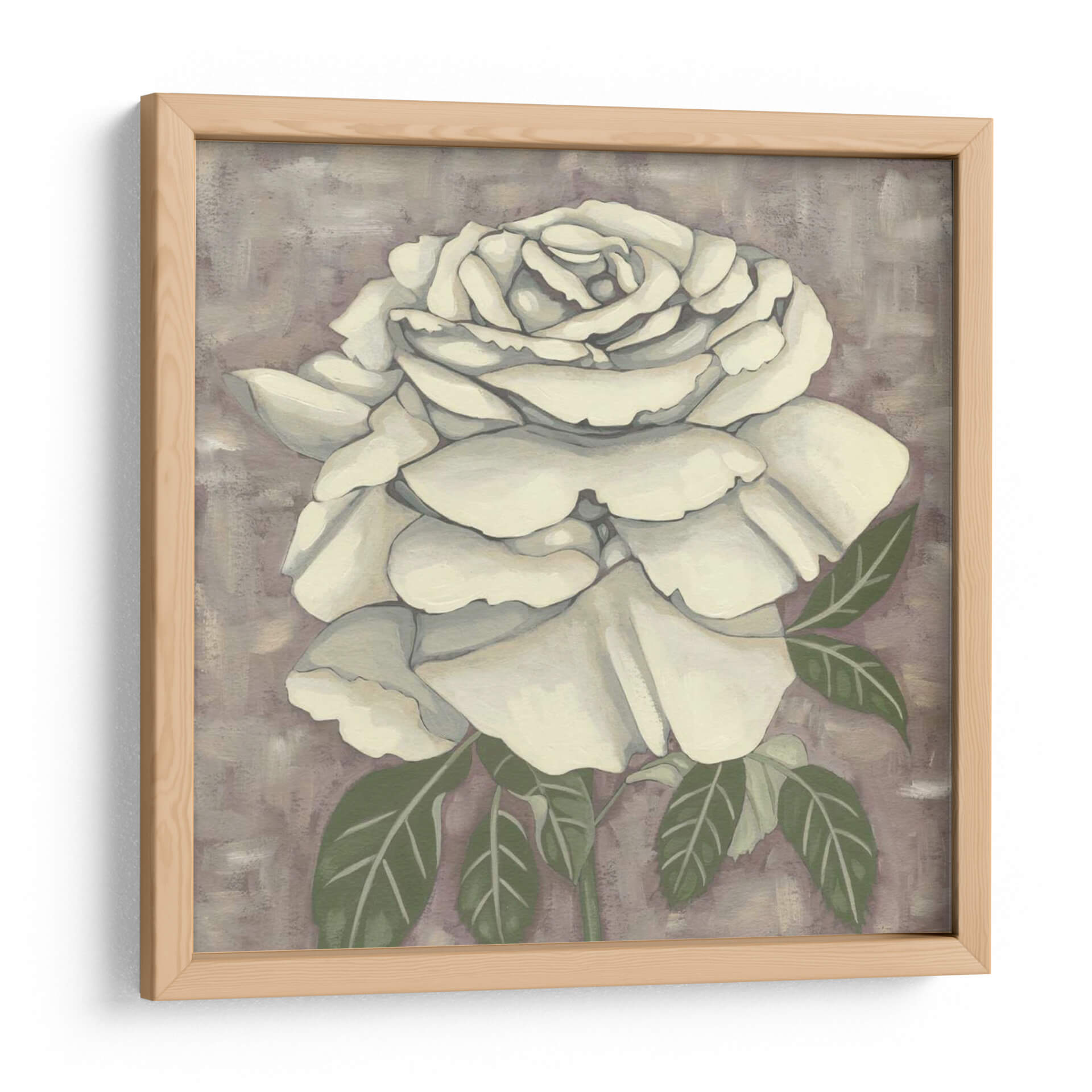 Sumérgete en la delicada belleza de "Silver Rose II", una obra de arte contemporáneo que captura la esencia de una rosa blanca en plena floración. La artista Chariklia Zarris ha creado una pieza que evoca calma y elegancia, perfecta para añadir un toque de sofisticación a cualquier espacio. Los pétalos de la rosa, representados con sutiles matices de blanco y crema, se despliegan con una gracia natural, mientras que el fondo texturizado en tonos lila y gris crea una atmósfera etérea y serena. Las hojas verdes, pintadas con trazos suaves, complementan la flor principal sin restarle protagonismo. Este cuadro decorativo es ideal para quienes buscan infundir serenidad en su dormitorio, un toque de distinción en su sala de estar o una nota de inspiración botánica en su oficina. Su estilo semi-abstracto y su paleta de colores apagados lo convierten en una pieza versátil que armoniza con diversos estilos decorativos, desde el minimalista hasta el clásico moderno. "Silver Rose II" no es solo una imagen, es una invitación a la contemplación y a la apreciación de la belleza efímera, un recordatorio de la elegancia natural que puede transformar un ambiente. Añade esta exquisita pieza a tu colección y deja que su sutil encanto envuelva tu hogar.