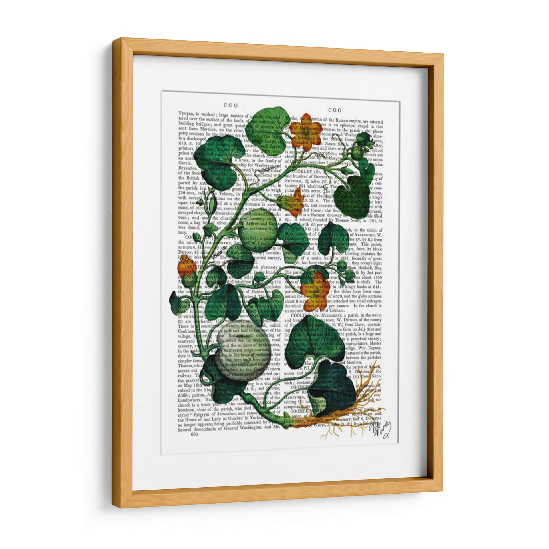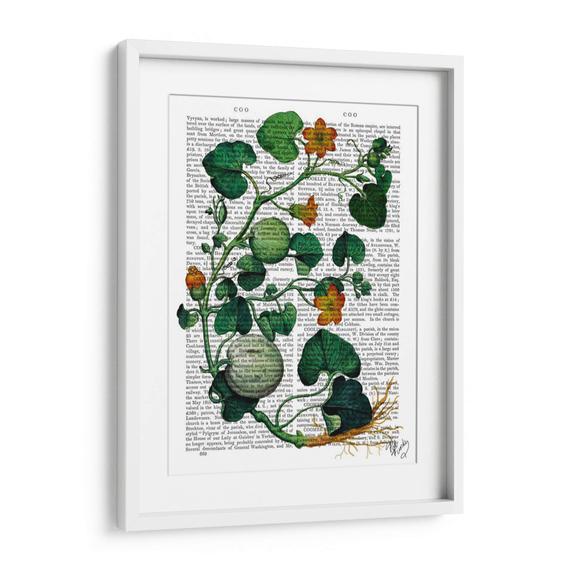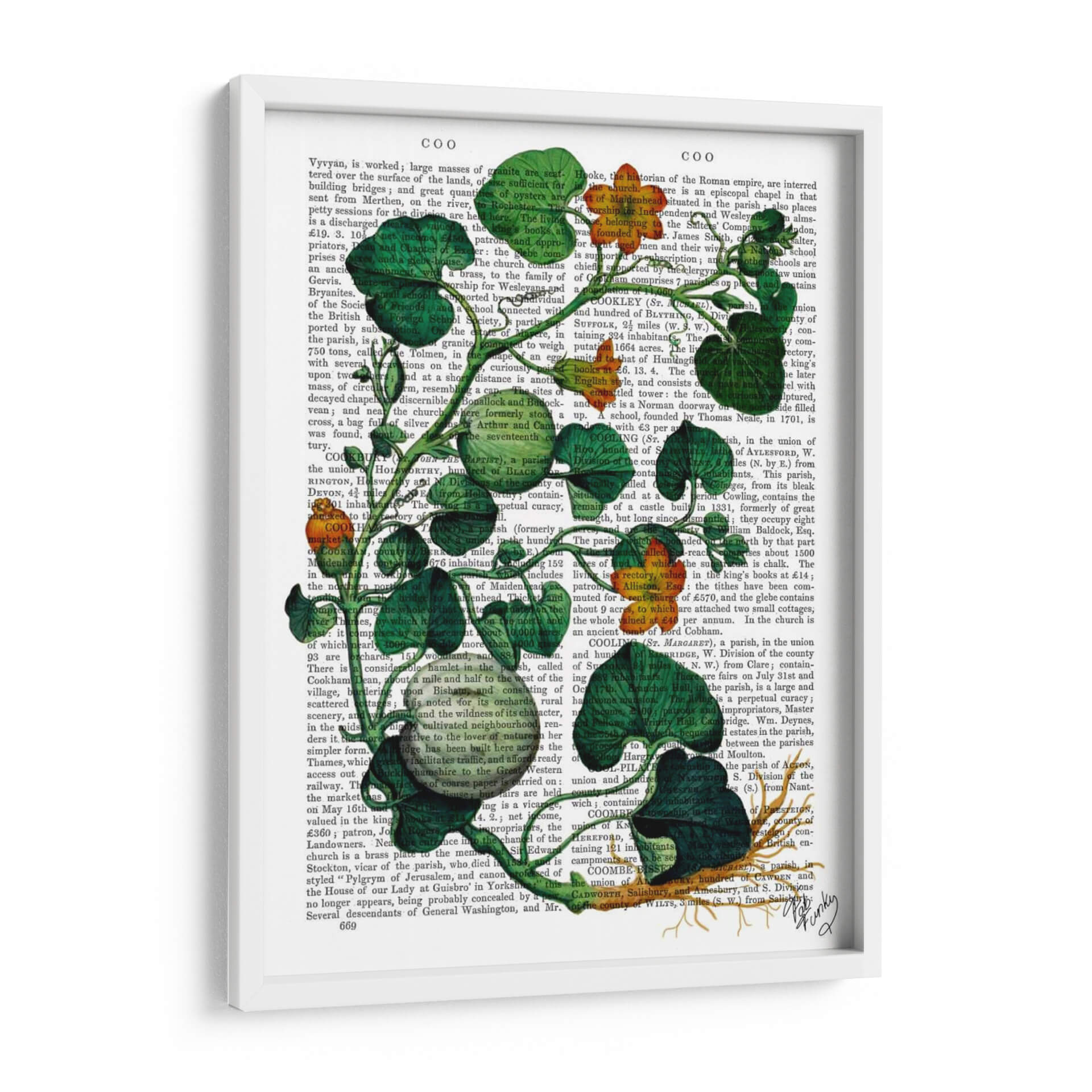 Transforma tu espacio con el vibrante cuadro decorativo 'Squash Vid 2' del artista Fab Funky. Esta obra de arte contemporánea presenta una detallada ilustración botánica de una vid de calabaza, con exuberantes hojas verdes y vibrantes flores anaranjadas que parecen brotar de un fondo de texto antiguo. La composición juega magistralmente con el contraste entre lo orgánico y lo escrito, creando una pieza visualmente intrigante que añade profundidad y carácter a cualquier habitación. Los tonos verdes intensos y los toques de naranja cálido infunden energía y un aire de naturaleza a tu decoración, haciendo de este cuadro una elección perfecta para salas de estar modernas, estudios creativos u oficinas que buscan un toque de originalidad. Su estilo único fusiona lo natural con lo académico, evocando una sensación de descubrimiento y belleza en los detalles. Ideal para quienes aprecian el arte botánico con un giro contemporáneo, 'Squash Vid 2' es más que una simple decoración; es una ventana a la fascinación por el mundo natural y la historia de la ilustración.