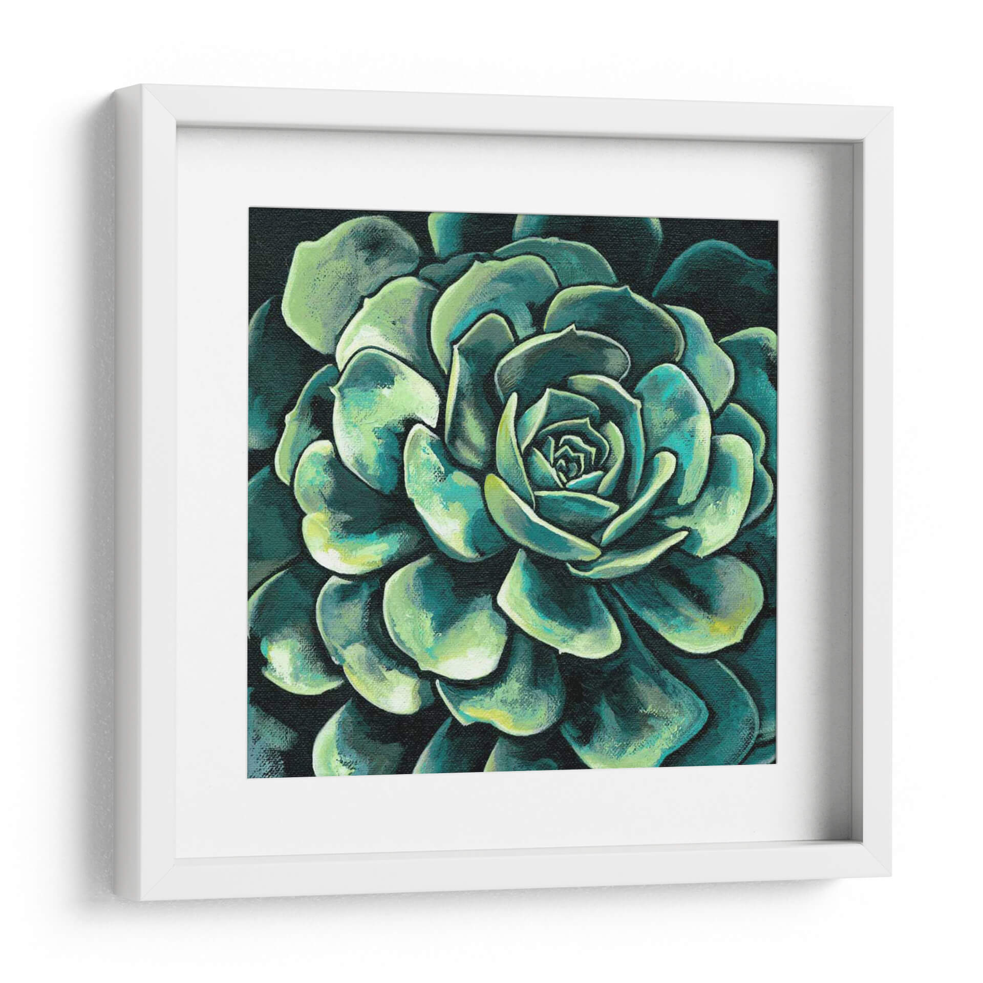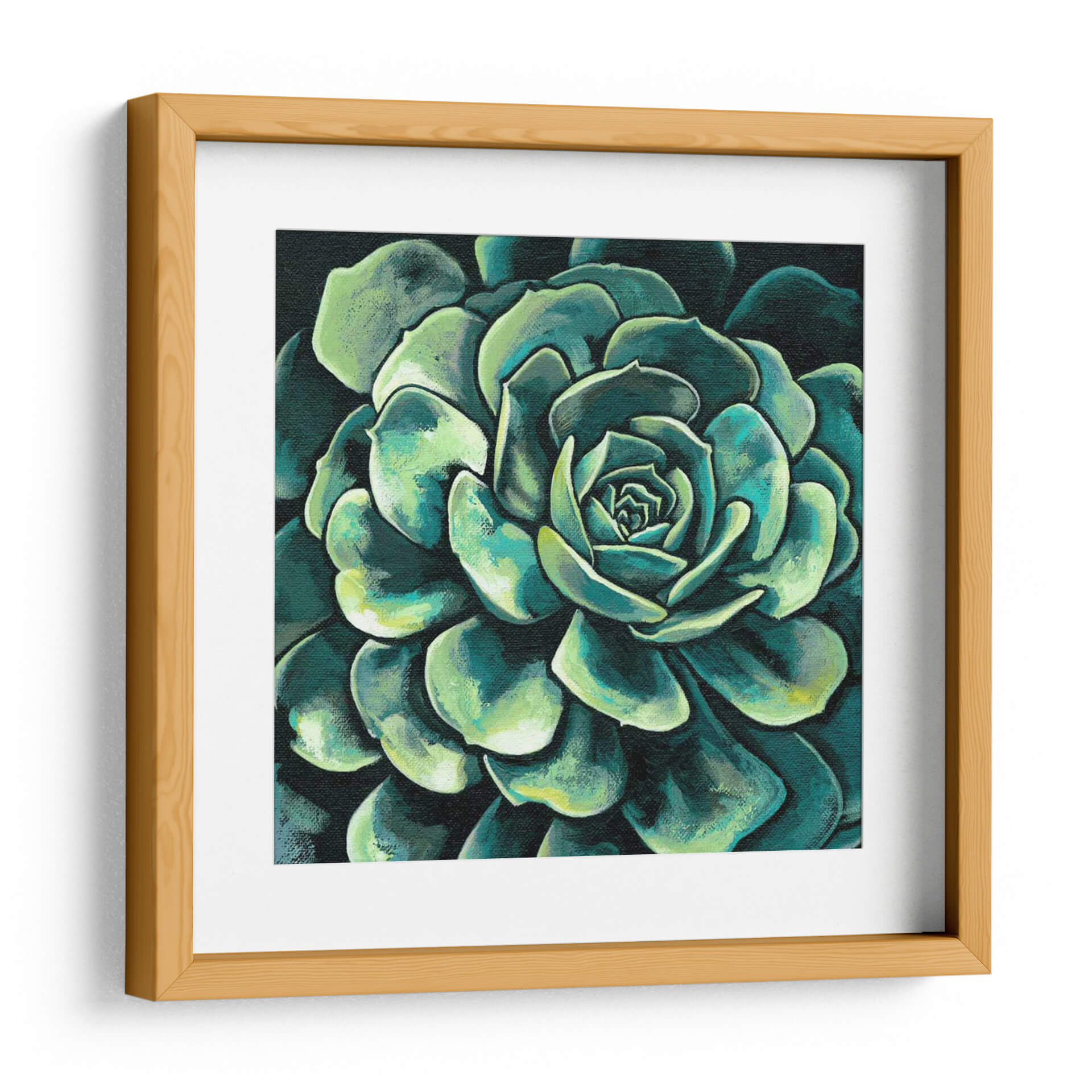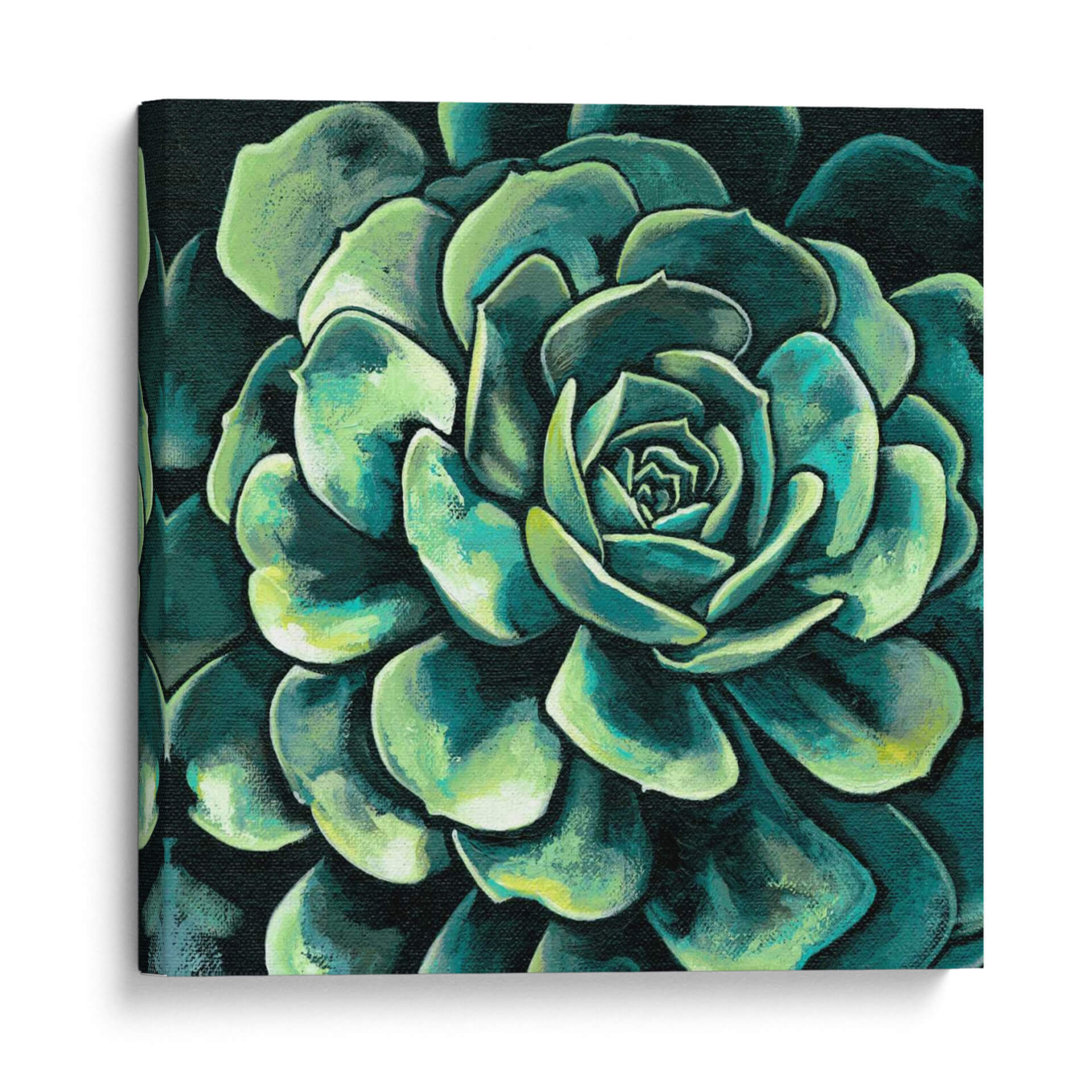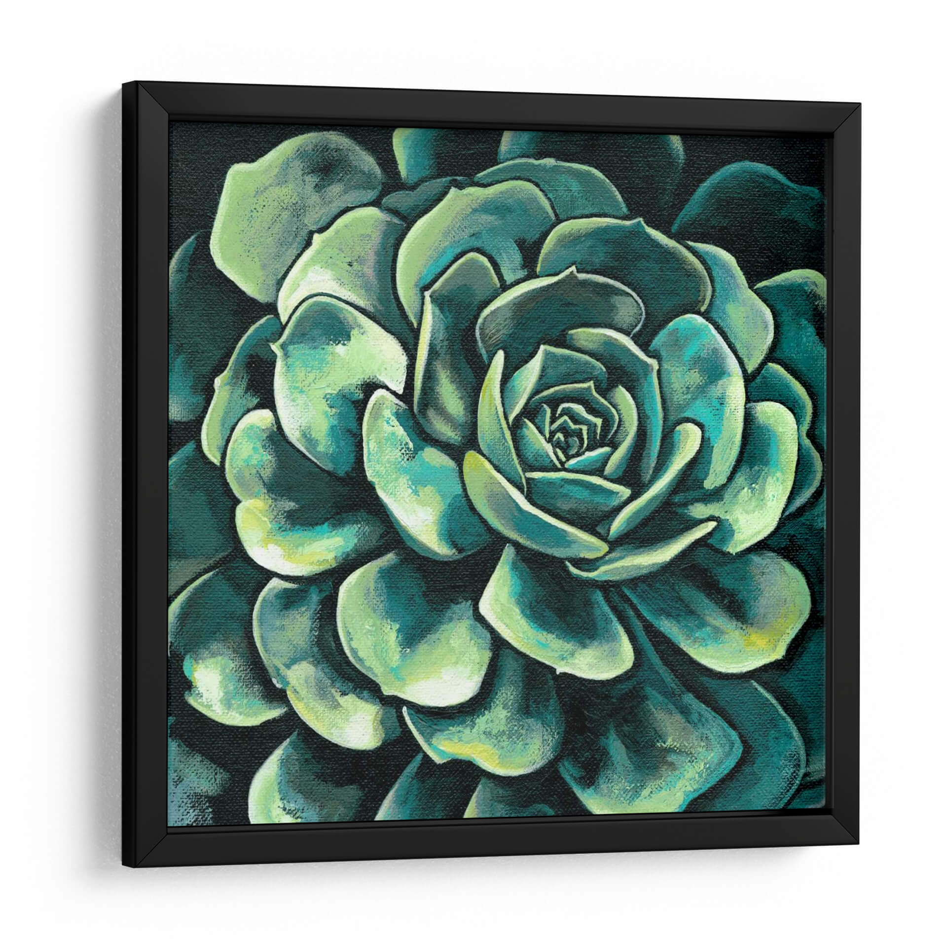 Sumérgete en la belleza orgánica de "Suculenta Bloom II", una obra de arte digital que captura la esencia fascinante de una suculenta en plena floración. Con una paleta de colores vibrantes que van desde el verde esmeralda profundo hasta toques de lima brillante, esta pieza irradia una sensación de frescura y vitalidad natural. La artista Megan Meagher utiliza pinceladas audaces y una composición detallada para resaltar las intrincadas capas y texturas de la planta, creando un efecto casi tridimensional que invita a la contemplación. El fondo oscuro y contrastante realza la luminosidad y el volumen de la flor, convirtiéndola en un punto focal cautivador para cualquier espacio. "Suculenta Bloom II" es ideal para añadir un toque de naturaleza sofisticada y un aire de tranquilidad serena a tu hogar u oficina. Su estilo contemporáneo y su representación detallada la hacen perfecta para interiores modernos, minimalistas o bohemios, complementando tanto esquemas de color neutros como audaces. Este cuadro decorativo no solo embellecerá tus paredes, sino que también aportará una energía calmada y un recordatorio del arte intrincado que se encuentra en el mundo natural, convirtiéndose en una pieza de conversación apreciada por su belleza y su conexión con la botánica.