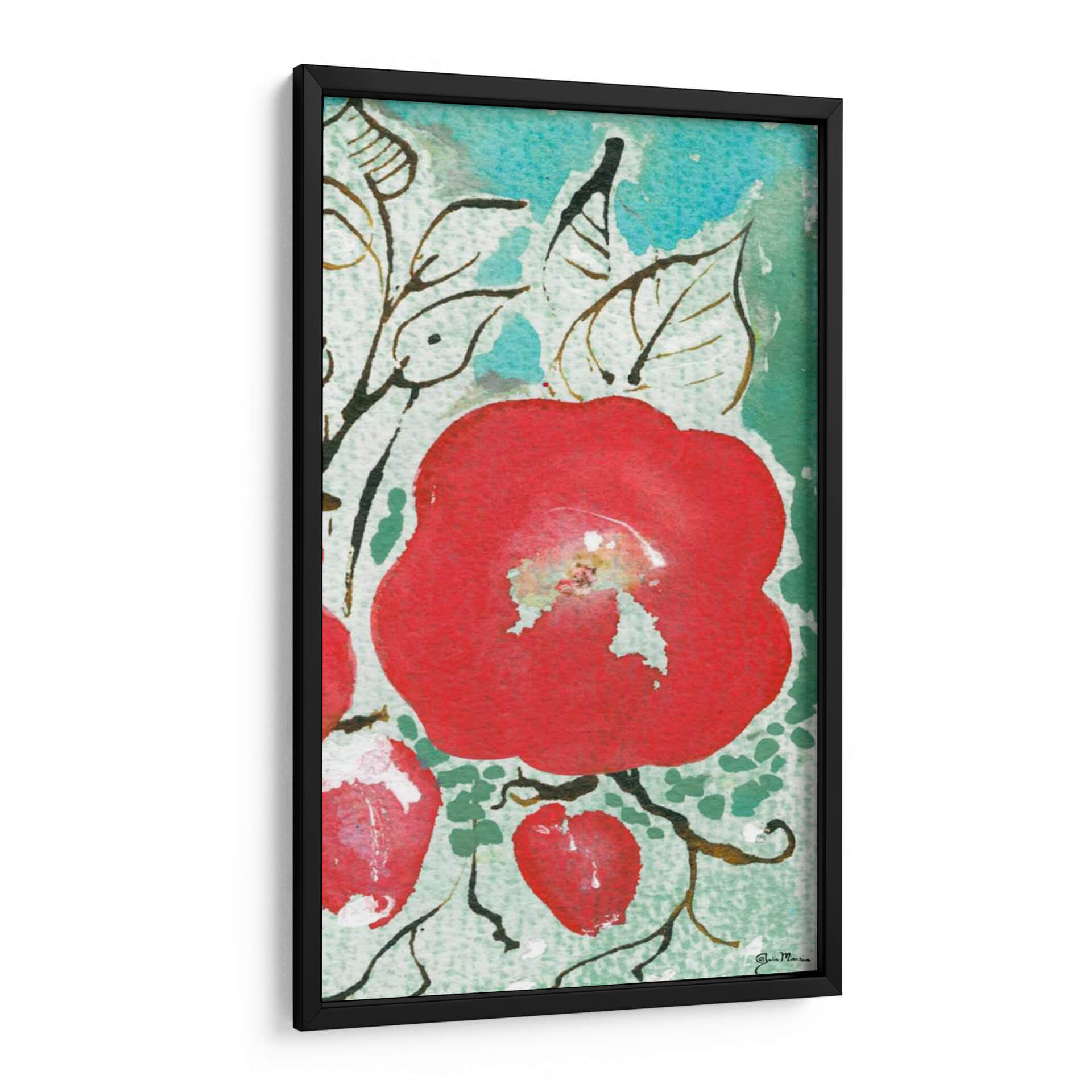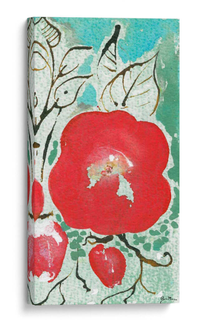 Adéntrate en la vibrante y cautivadora obra de Julia Minasian, "Sussex Garden Iv". Este cuadro decorativo es una explosión de color y vida, con una gran flor roja central que irradia energía y pasión. El estilo artístico, que evoca una acuarela moderna con trazos sueltos y texturas sutiles, transporta al espectador a un jardín exuberante y lleno de vitalidad. Los detalles de las hojas y las ramas, representados con líneas orgánicas en tonos tierra y negro, contrastan armoniosamente con los vibrantes verdes azulados del fondo, creando una composición dinámica y cautivadora. La paleta de colores, dominada por el intenso rojo de la flor principal y los tonos frescos del fondo, genera una atmósfera alegre y estimulante, perfecta para infundir vida en cualquier espacio. Este lienzo es ideal para quienes buscan un punto focal audaz y un toque de naturaleza estilizada en su decoración. Colócalo en tu sala de estar para crear un ambiente acogedor y lleno de personalidad, o en tu dormitorio para añadir un toque de alegría y frescura. "Sussex Garden Iv" no es solo una pieza de arte, es una invitación a la contemplación y a la celebración de la belleza natural con un enfoque contemporáneo y artístico. Descubre la magia de esta obra y transforma tu hogar en una galería personal.
