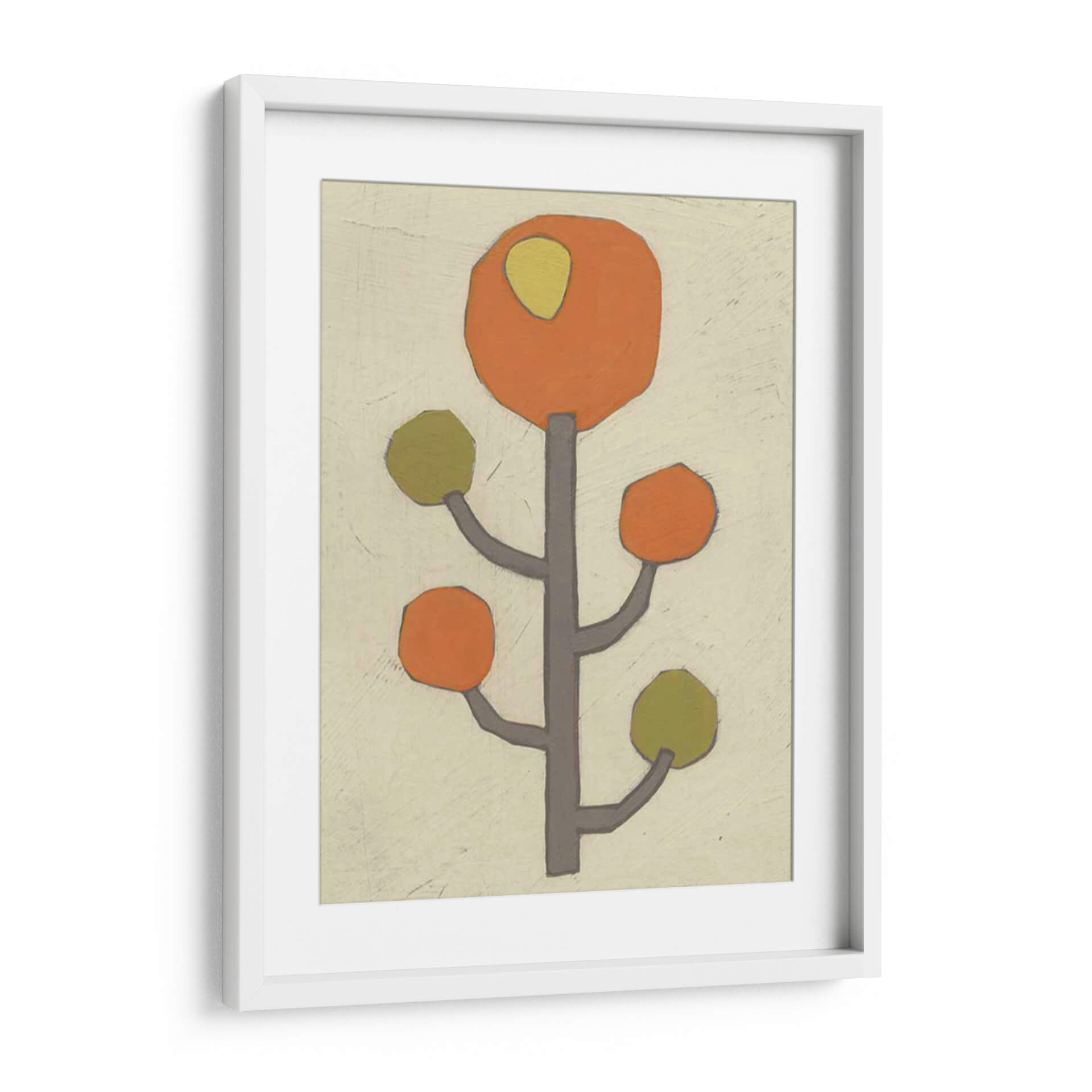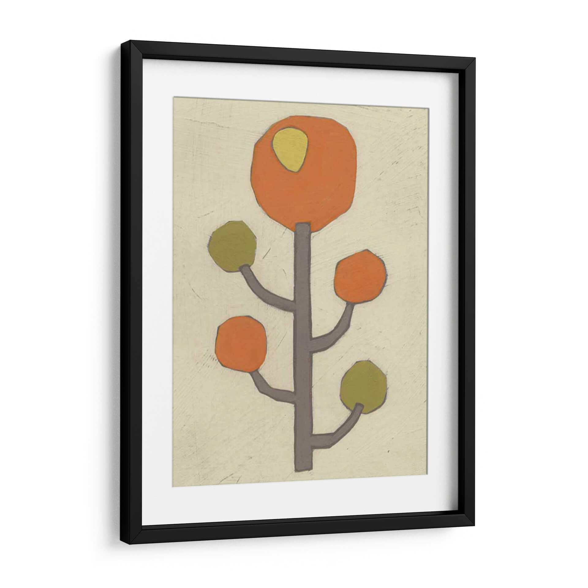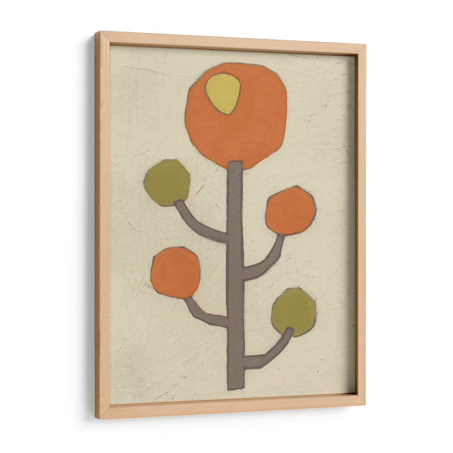 Sumérgete en la serenidad y el encanto de "Tallos Simples Ix", una cautivadora obra de arte contemporáneo de June Erica Vess. Este cuadro decorativo presenta una estilizada representación de una planta, con un tronco grisáceo que se ramifica en delicados tallos que sostienen orbes de colores vibrantes. La paleta de colores, dominada por cálidos tonos naranjas y suaves verdes, se complementa con un discreto toque de amarillo en la flor superior, todo sobre un fondo texturizado de color crema. El estilo minimalista y las formas orgánicas de esta pieza evocan una sensación de calma y equilibrio, perfecta para añadir un toque de naturaleza y arte moderno a cualquier espacio. Su composición limpia y su paleta de colores terrosos la convierten en una adición versátil para salones, dormitorios u oficinas, aportando una atmósfera de tranquilidad y sofisticación.